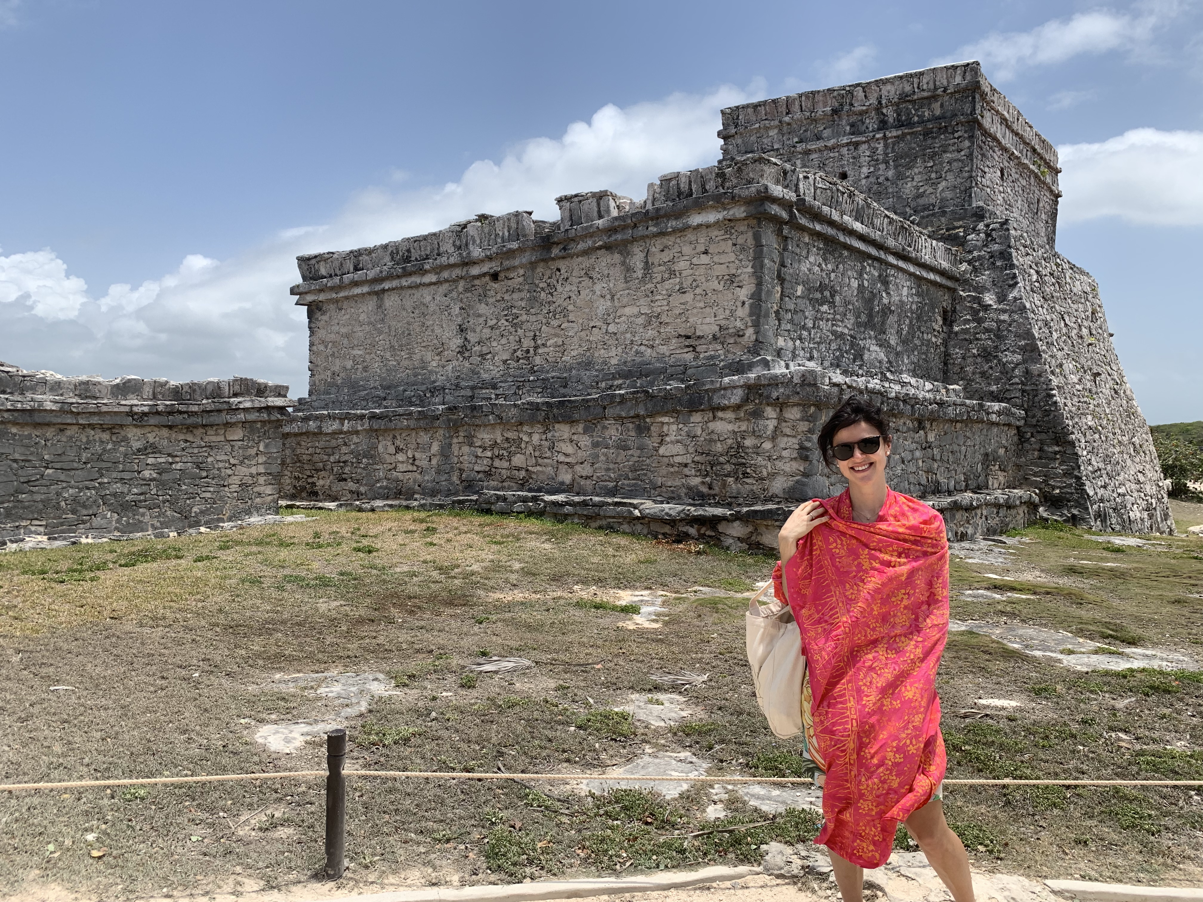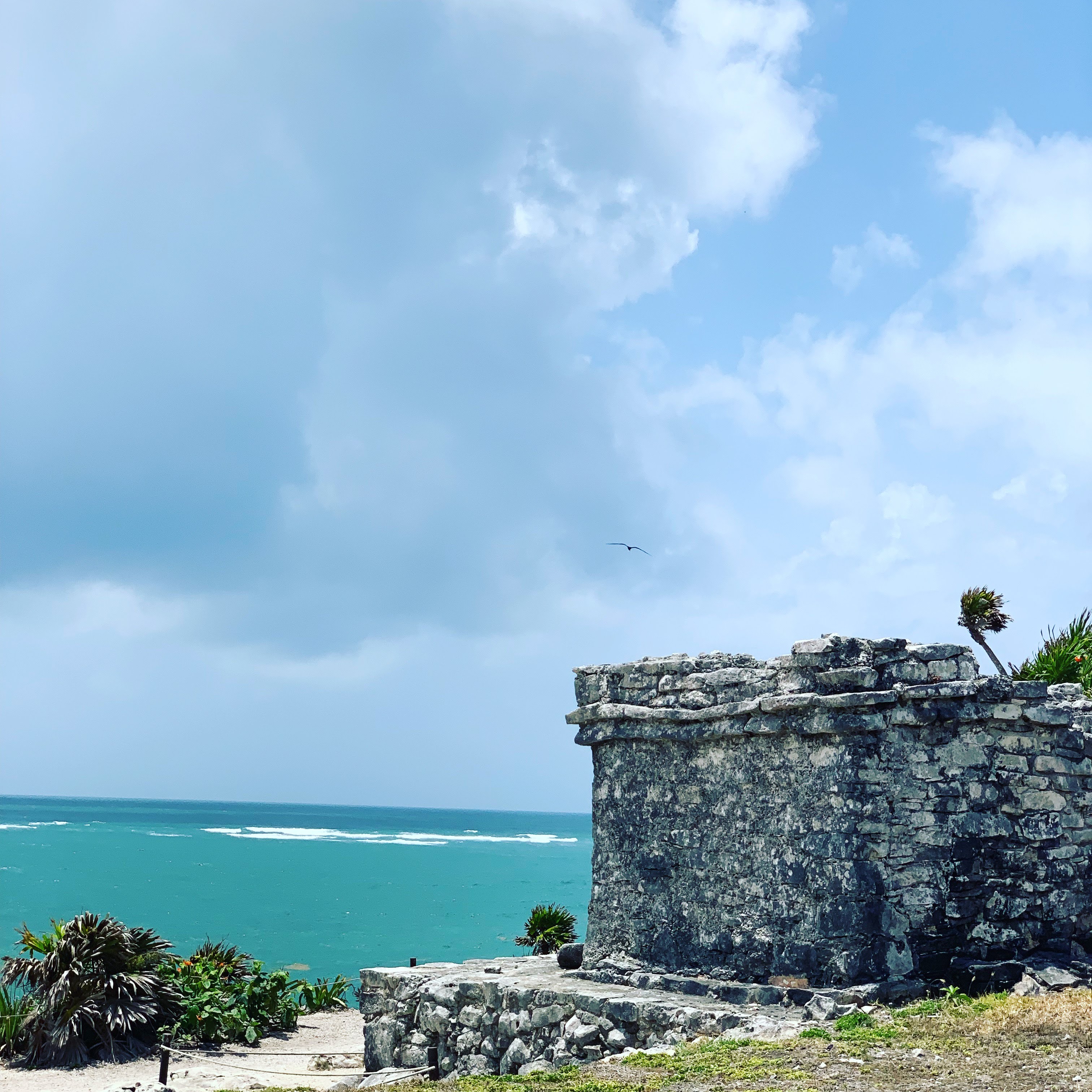 Seguimos em caravana no terceiro dia para visitar as famosas ruínas de Tulum, que são especiais por serem as únicas ruínas Maias à beira-mar. A paisagem é linda, mas chegamos por lá já perto do meio dia e o calor era tanto que nossa visita foi bem rápida. Fica aí uma dica importante pra quem está planejando esse passeio: tente chegar cedo ou deixe o passeio mais pro fim do dia, que com certeza vai ser bem mais agradável.