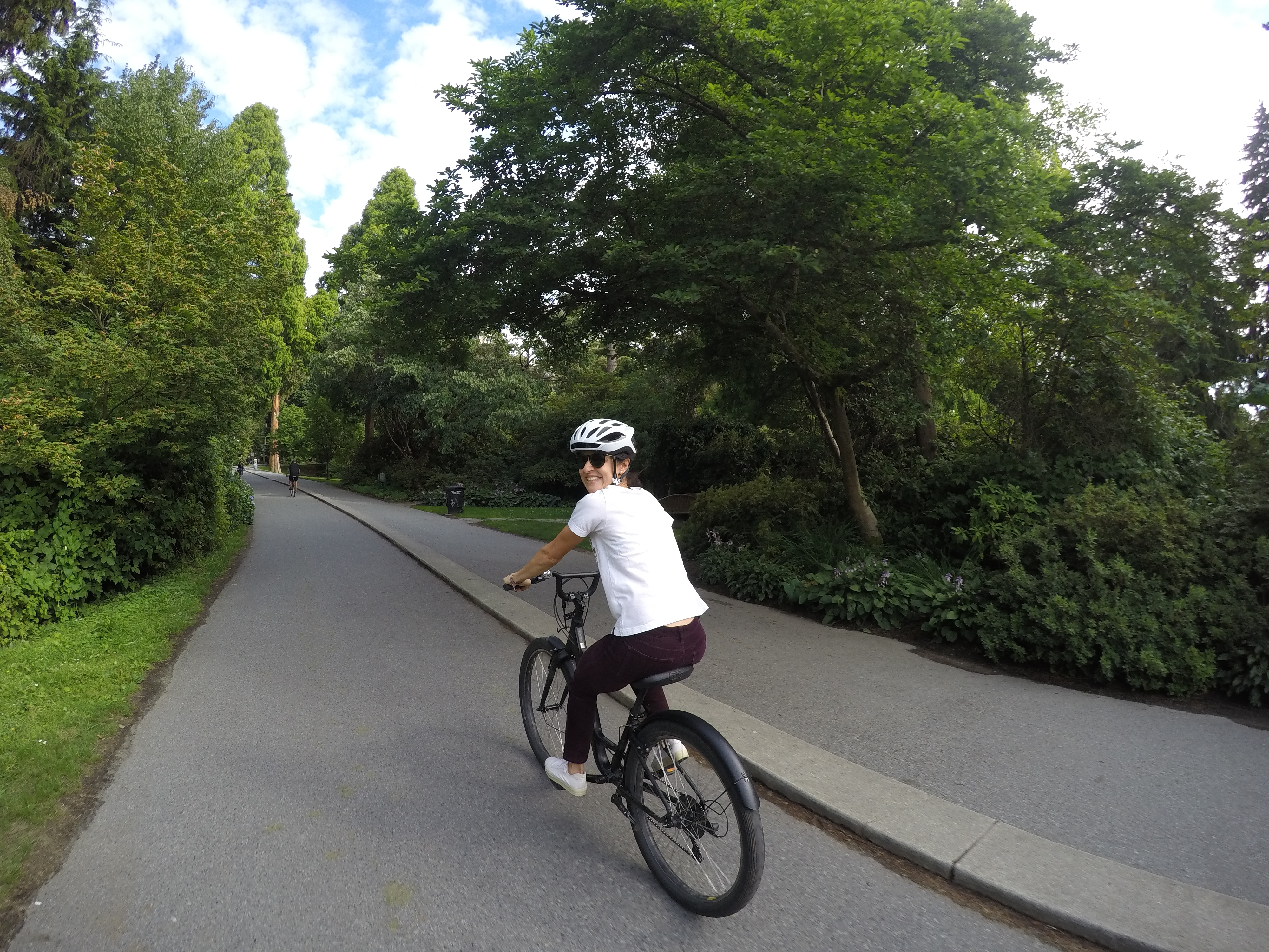 Quarta foi mais um dia pra ficar em casa e colocar as coisas em ordem. Já na quinta teve um passeio bem legal! Pegamos um barquinho e fomos até Grandville Island. Almoçamos no “mercado público” da ilha e depois fomos até a English Bay. Por fim, fizemos o passeio clássico de bicicleta no Stanley Park. Muito lindo!