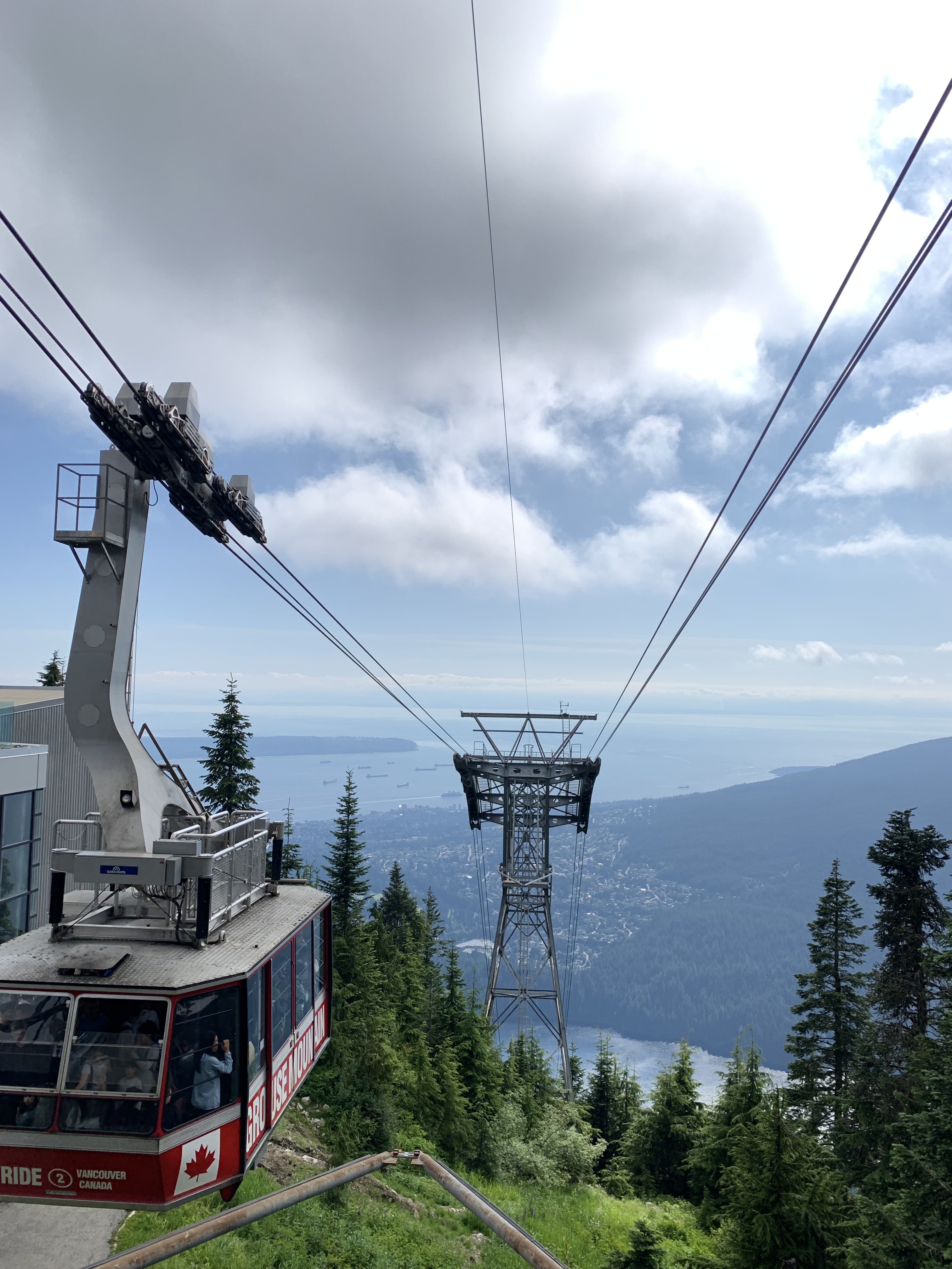 Para subir a montanha, ao invés de de pegar a gôndola, fizemos o Grouse Grind. Uma trilha curta, de 3km, mas com um ganho de elevação de 853 metros, equivalente a 2830 degraus. A trilha é toda por uma floresta de pinheiros bem densa, muito legal!!! Passeamos lá em cima da montanha, vimos os dois ursos grizzly que vivem lá em cativeiro por não terem se readaptado a natureza, apreciamos a vista da cidade e pegamos a gôndola para descer, já que é proibido descer pela trilha, e também pra fazer um passeio diferente.