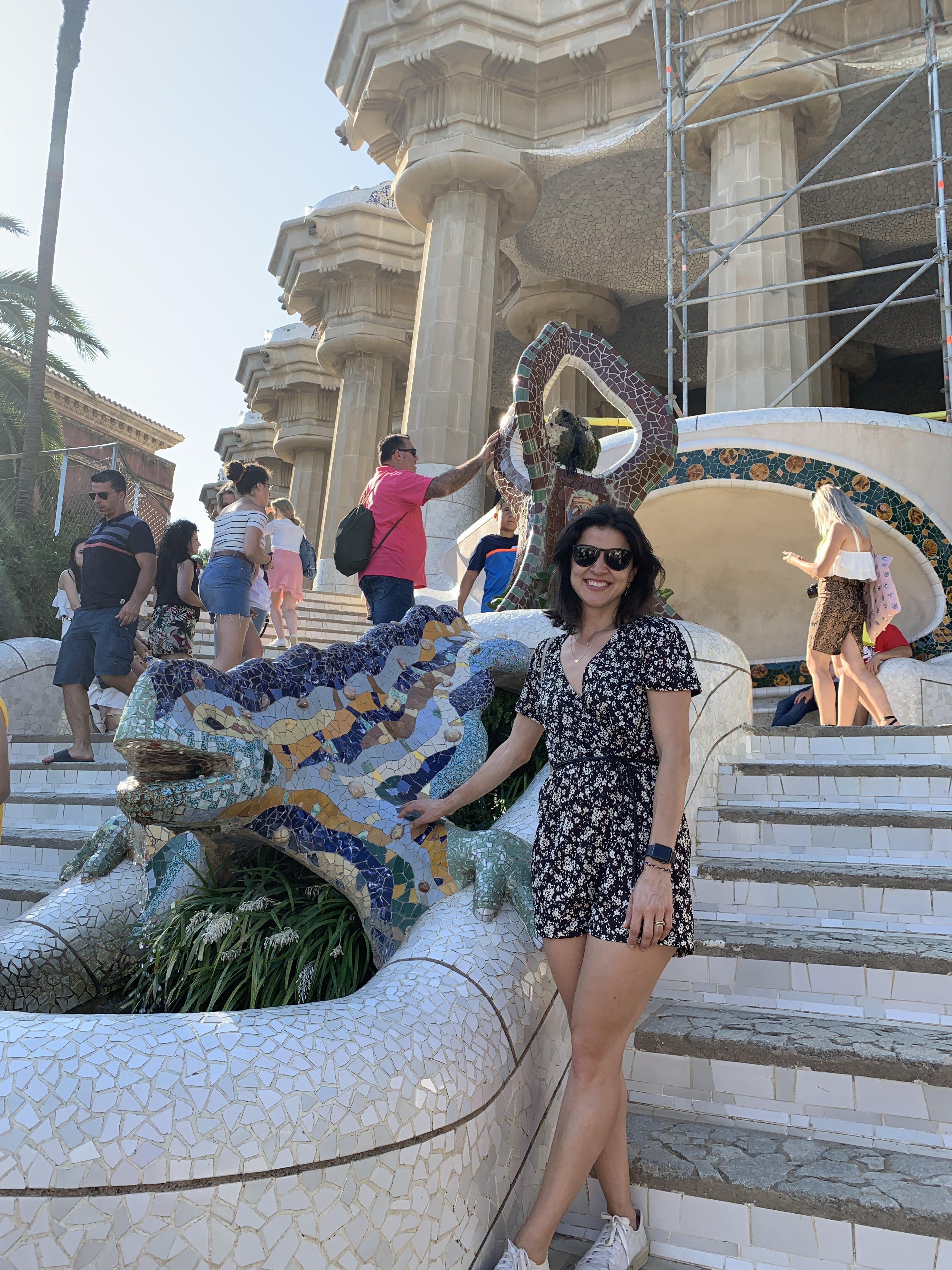 Depois de uma pausa rápida para um lanche, fomos caminhando em direção a mais uma linda atração de Gaudí, o Parc Guel. Além de todos os mosaicos, formas e cores que sempre impressionam quando trata-se da arte de Gaudí, o parque, por estar localizado num ponto mais alto da cidade, também nos presenteia com uma linda vista da cidade. Barcelona é realmente linda!!! 😍