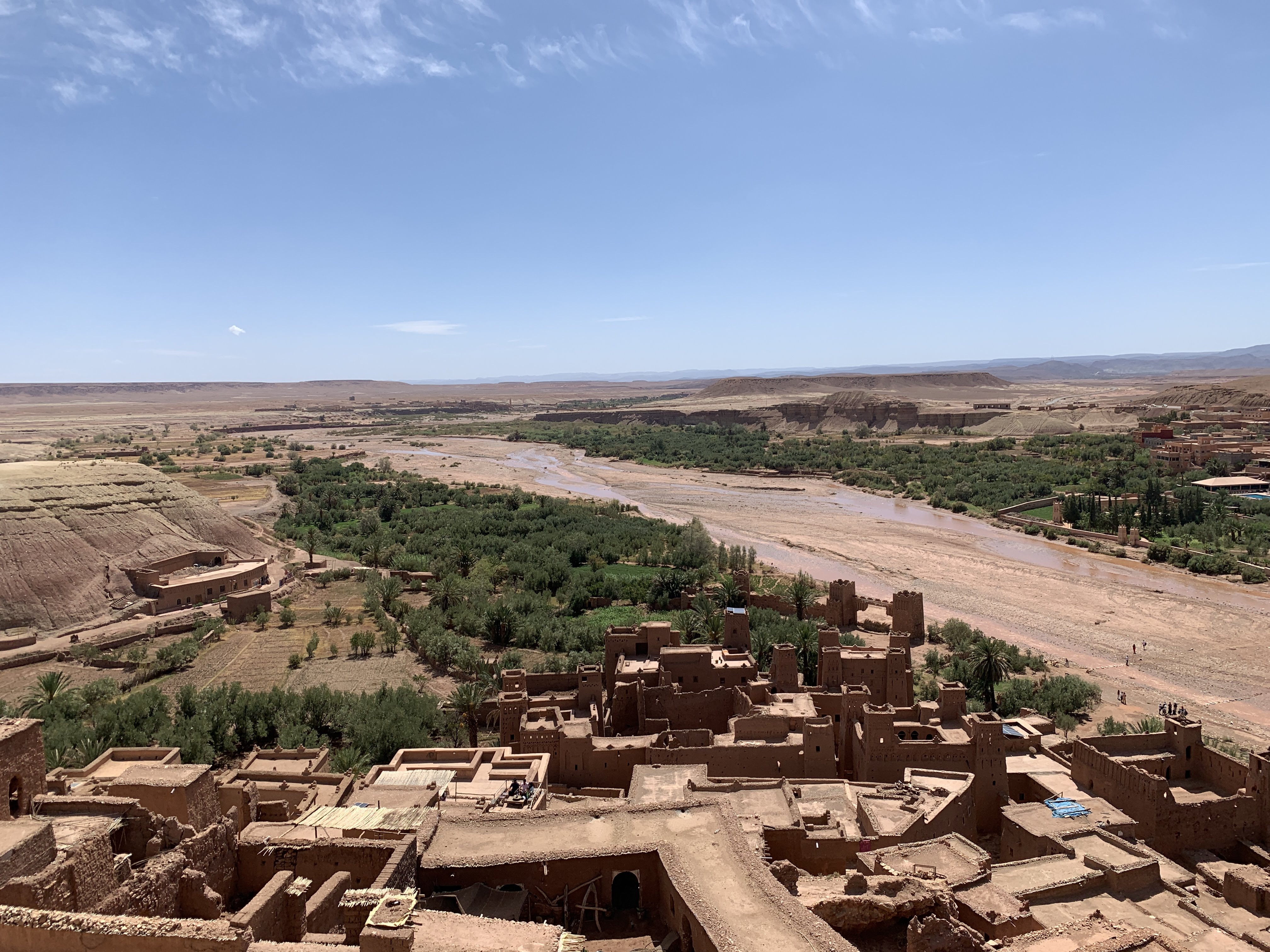 Mais um pouco de estrada e, por volta do meio-dia, chegamos a Aït-Ben-Haddou. A cidade fortificada, ou ksar como é chamada por aqui, é a mais bem preservada do país, reconhecida pela Unesco como patrimônio mundial da humanidade. No passado, o local teve um importante papel na rota comercial que saía de camelo da África subsaariana em direção à Marrekech levando mercadorias. Atualmente esse aglomerado de casas amontoadas datado do século XVII, é muito conhecido por ser o set de filmagem de muitos filmes e séries, como os famosos Gladiador, A Múmia e Game os Thrones.
