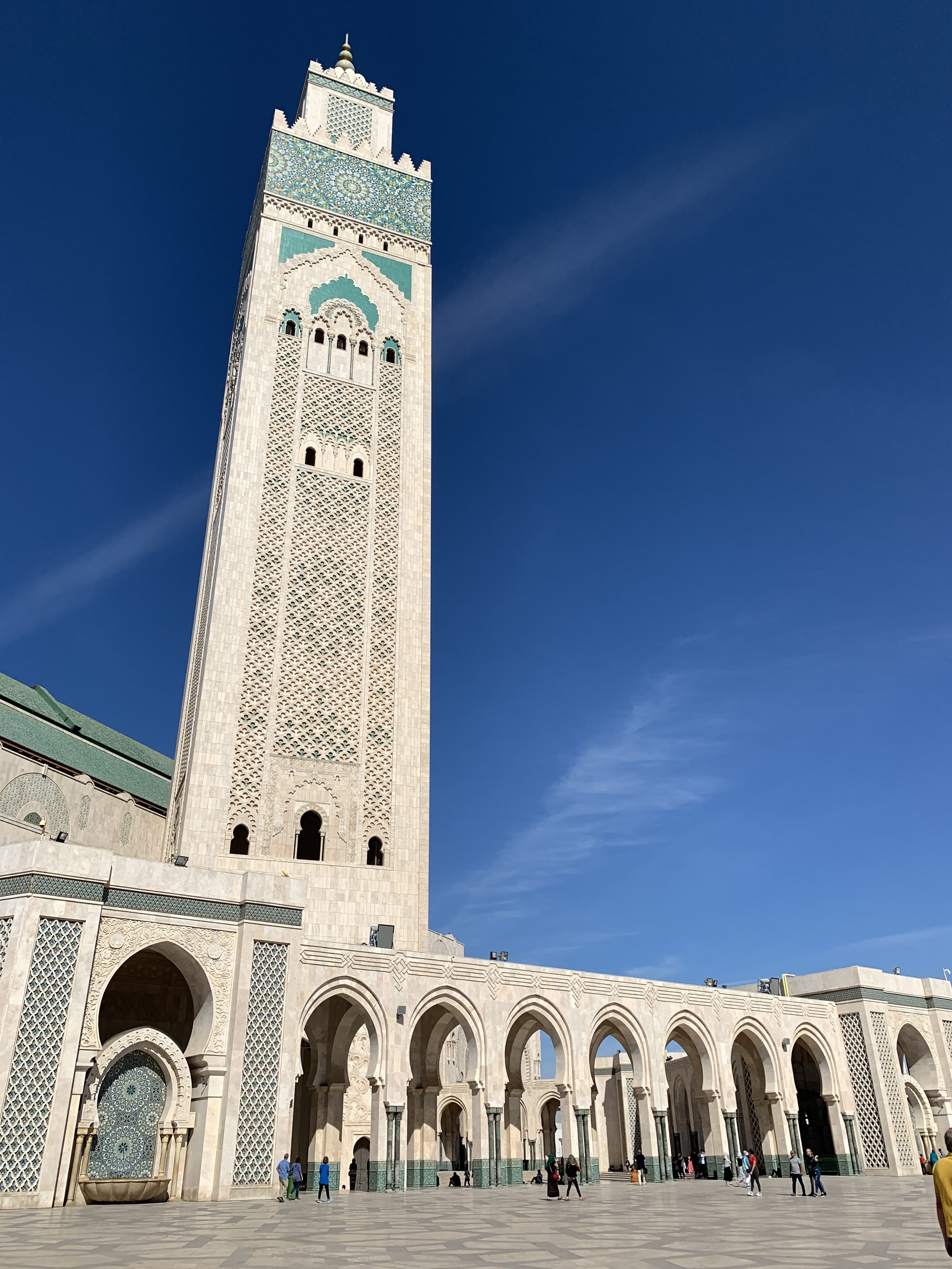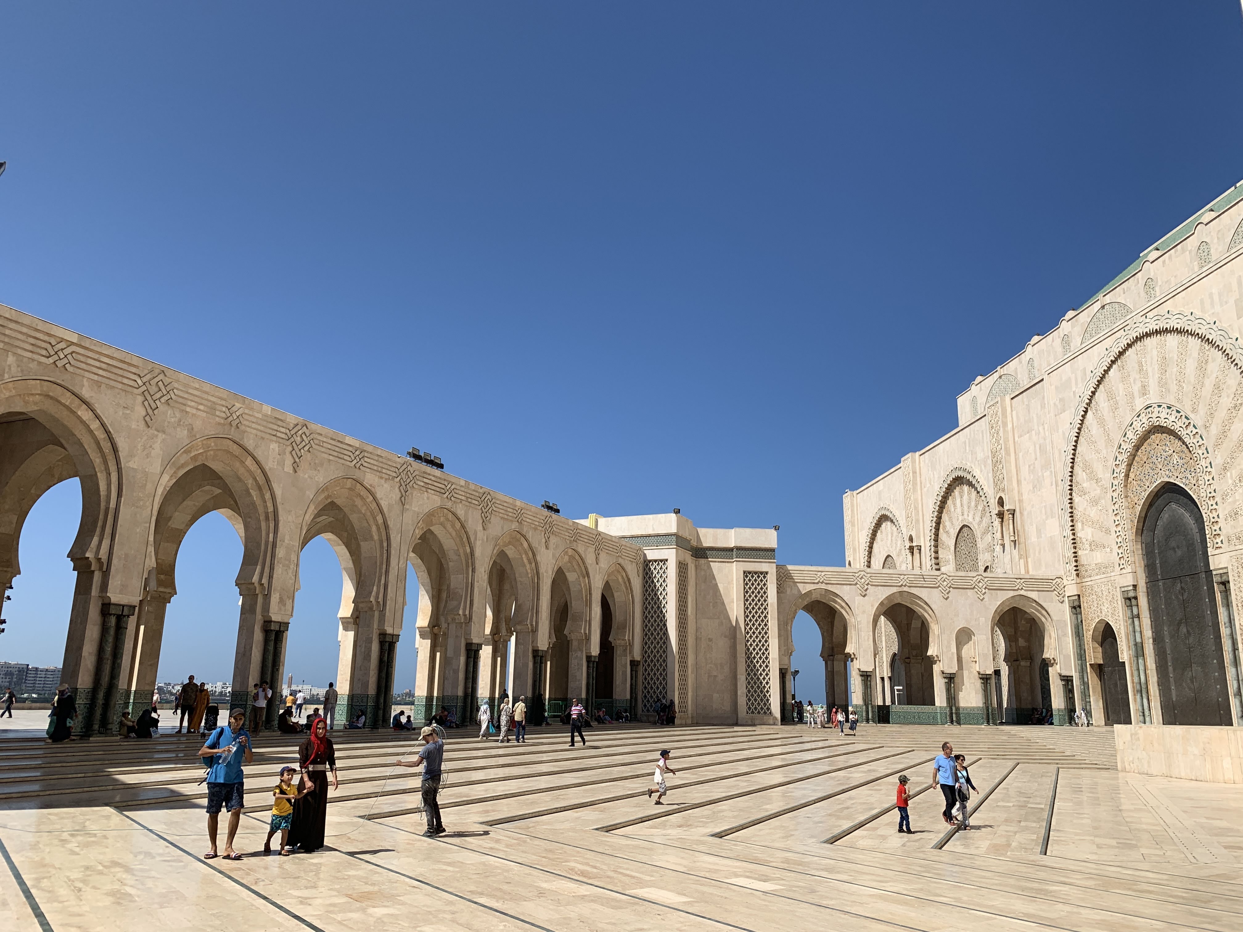 Aproveitamos tanta disposição e saímos para comer um brunch marroquino. Depois, passamos para conhecer brevemente a Mesquita Hassan II, uma das maiores do mundo! Por conta do horário, não conseguimos visitá-la por dentro e então já programamos de passar lá novamente no semana seguinte, quando retornaríamos para Casablanca para pegar o voo com destino à Alemanha.