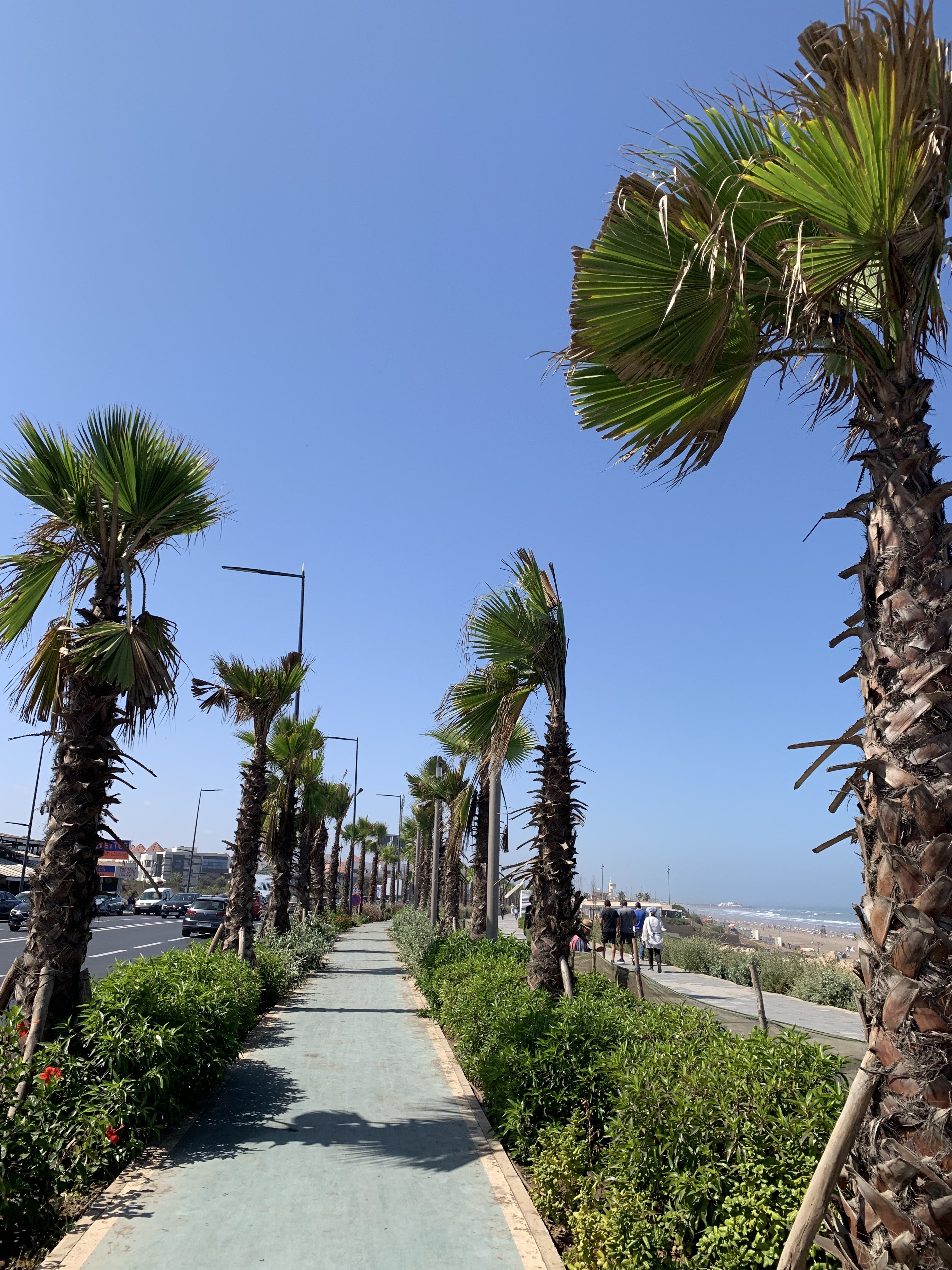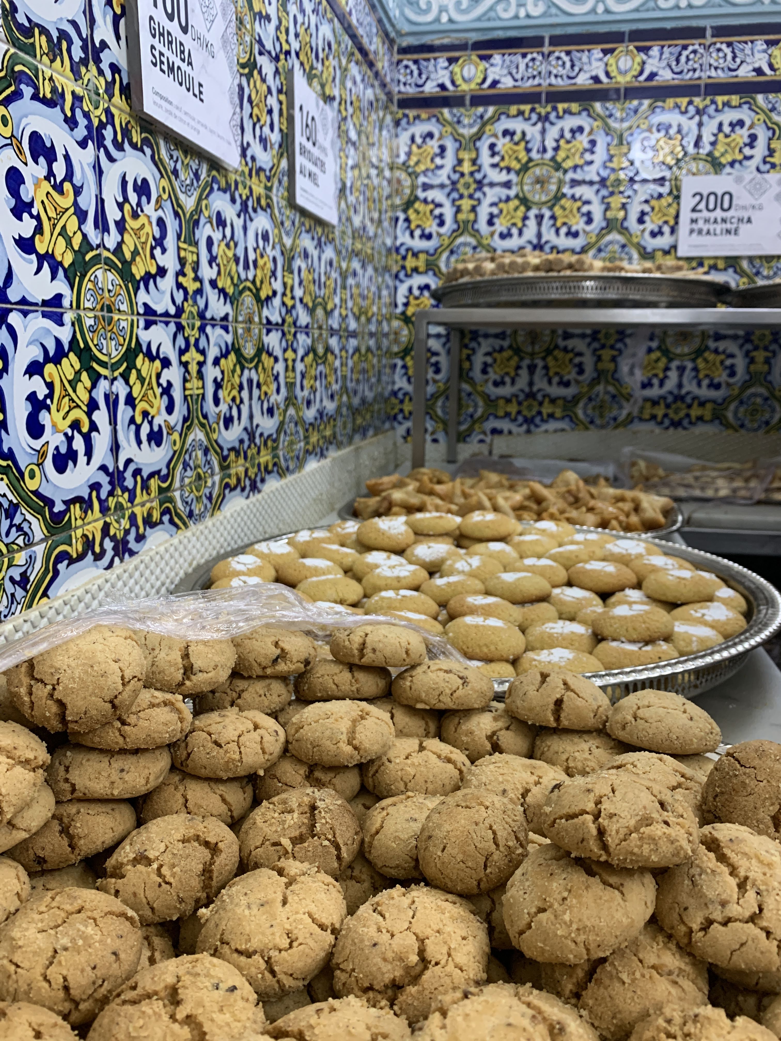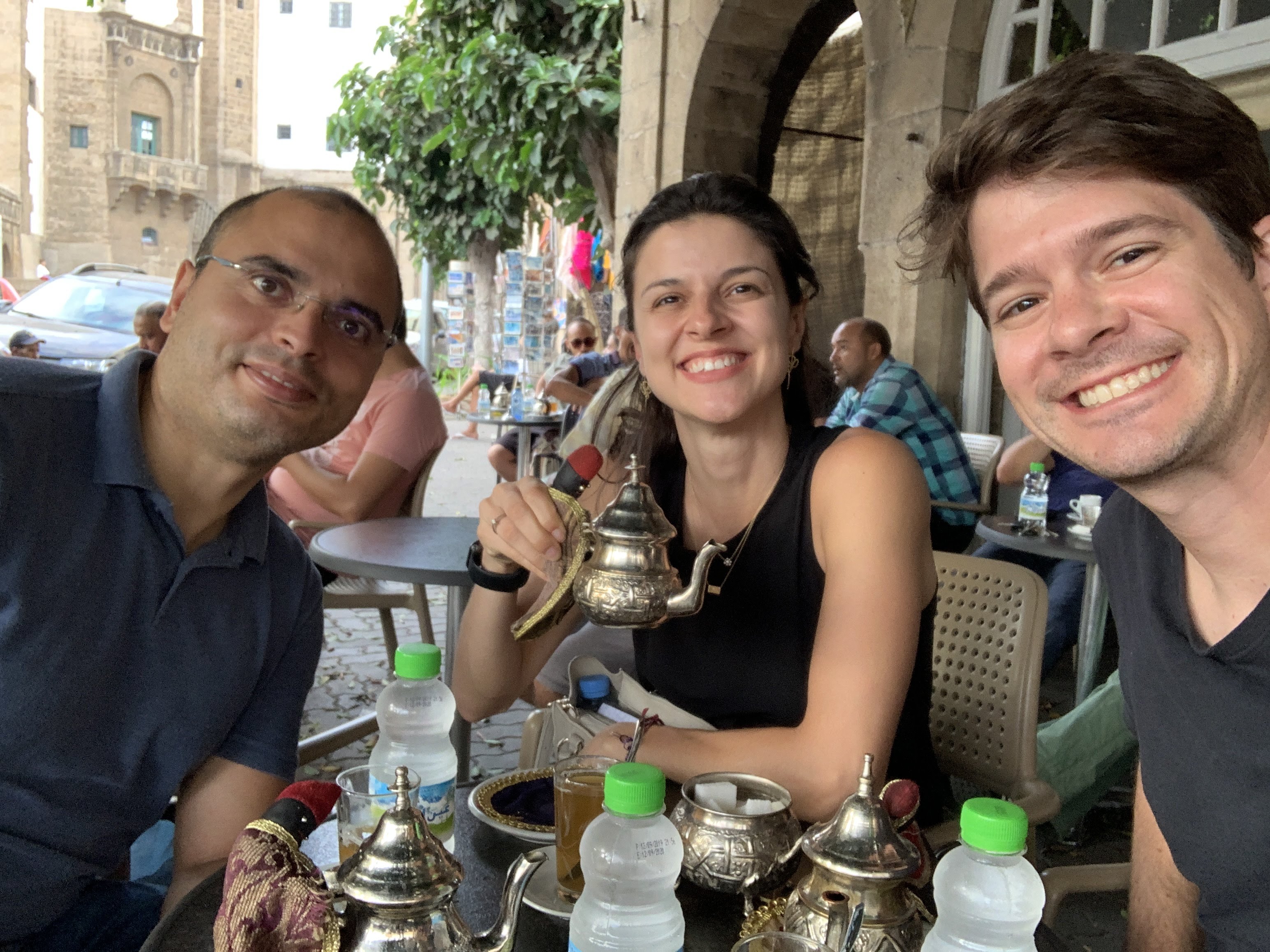 No sábado, o Sami acordou com febre e muita tosse. Então, depois do café saímos para caminhar por El Corniche, o calçadão à beira-mar de Casablanca, enquanto eles ficavam em casa para ele descansar. Voltamos para almoçarmos juntos e durante a tarde saímos com o Mehdi para conhecer a Medina da cidade. Nada como ir com um morador da cidade a esses lugares! Ele nos levou a uma loja de doces de amêndoas super tradicional, mas bem escondida. Abastecidos, paramos num café, sentamos na sombra de uma árvore linda e por lá ficamos conversando, tomando um tradicional chá de menta e provando nossos doces de amêndoa.