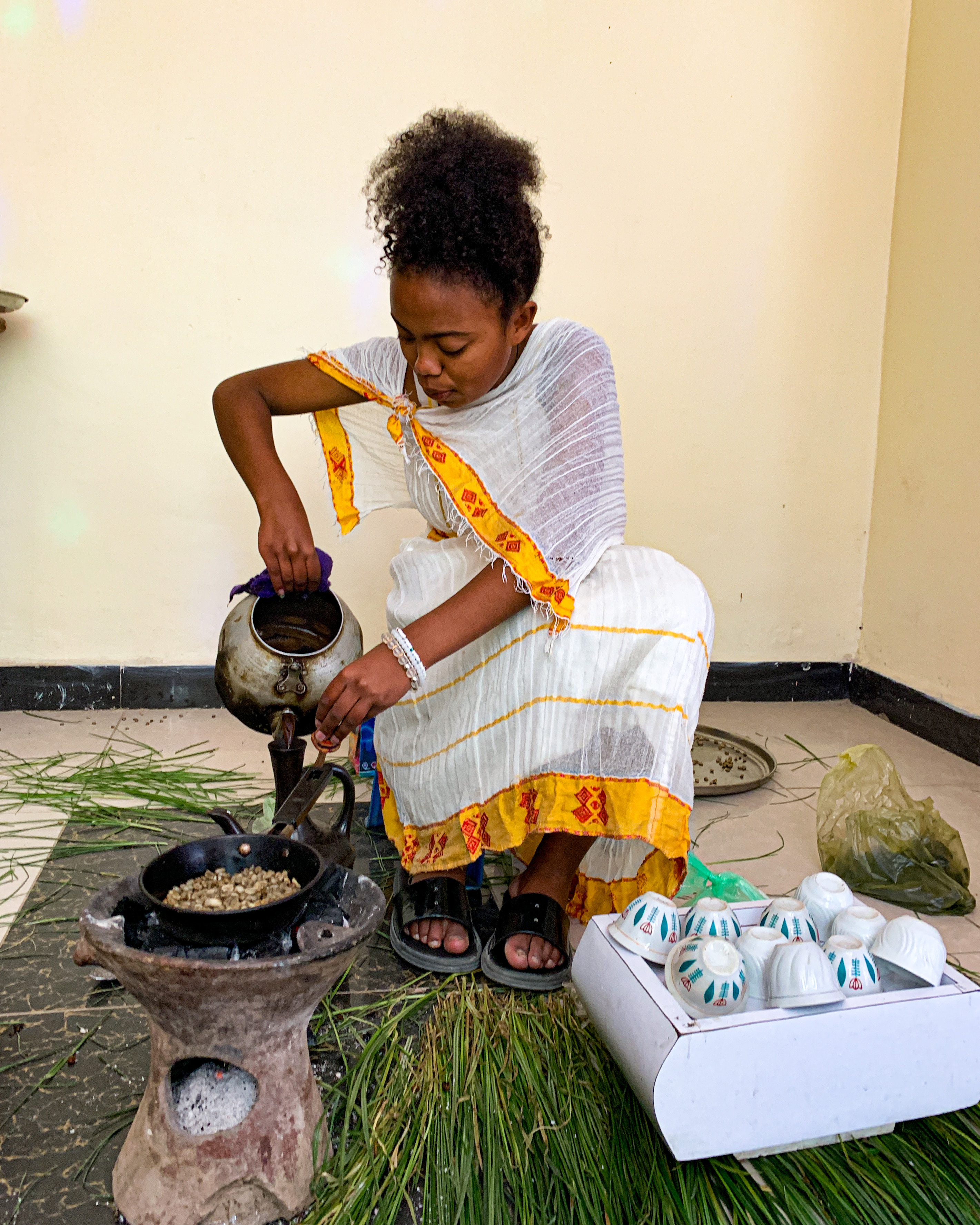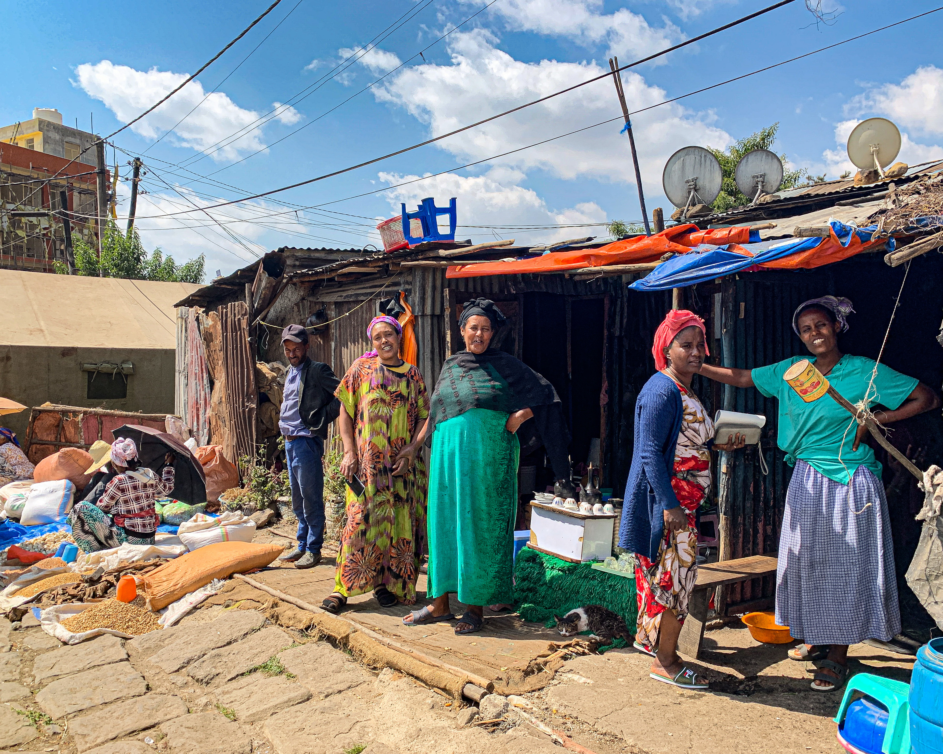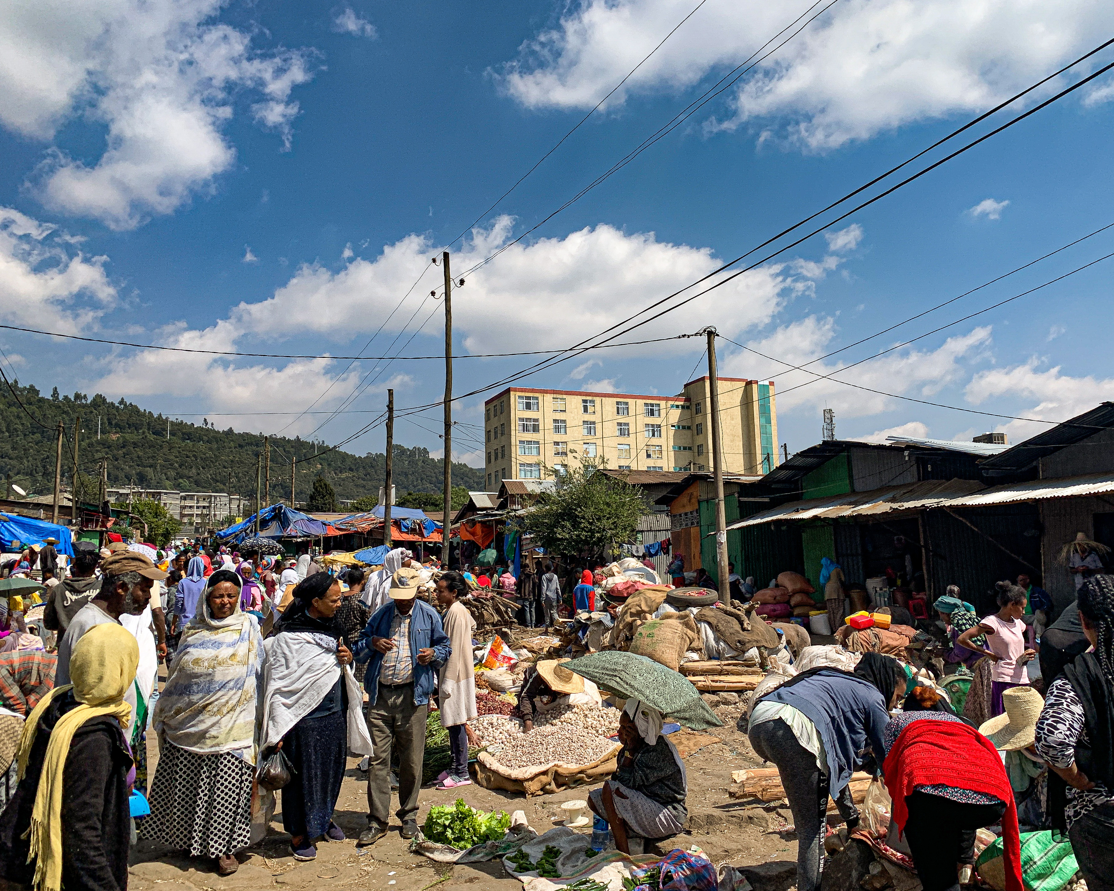 Entre um dia e outro de voluntariado, decidimos conhecer durante uma de nossas manhãs o Merkato de Addis, considerado o maior mercado a céu aberto da África. Passeamos pelas ruas entupidas de gente e ainda acabamos presenciando uma grande multidão de muçulmanos durante uma reza coletiva (tradicional às sextas-feiras)… Almoçamos ali por perto e depois fomos tomar café no Tomoca Café, tido como um dos melhores cafés da cidade.