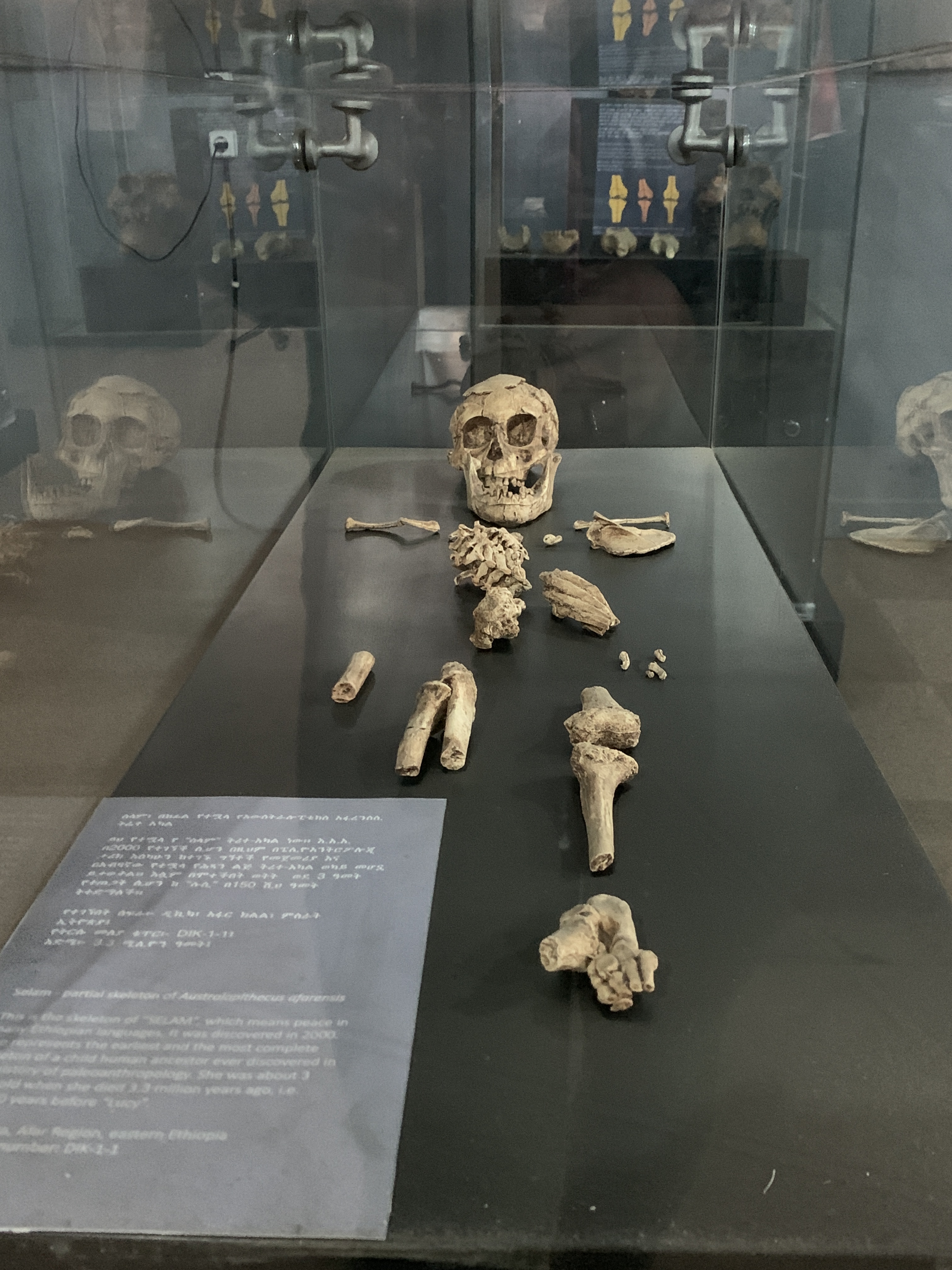 No domingo, aproveitamos nosso dia livre para, junto com a Alice, conhecer o Museu Nacional da Etiópia. O Museu é famoso por abrigar a ossada de Lucy, nosso antepassado bípede mais antigo com cerca de 3,2 milhões de anos, e tem uma área bem interessante sobre evolução humana. Entretanto, naquele dia, a imagem da Lucy foi parcialmente ofuscada por um encontro inesperado. Logo que chegamos no museu, demos de cara com Angelina Jolie e 4 dos seus 6 filhos. 😱 Não tivemos muita reação e nem sequer conseguimos fazer uma foto por respeito à família, mas mesmo assim virou história para contar. 😅