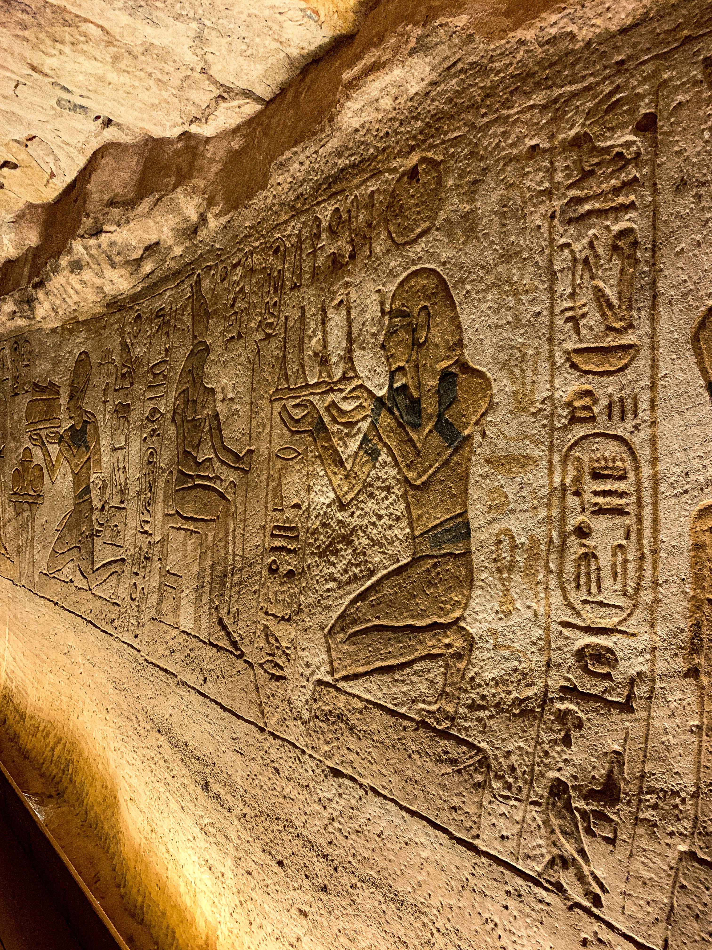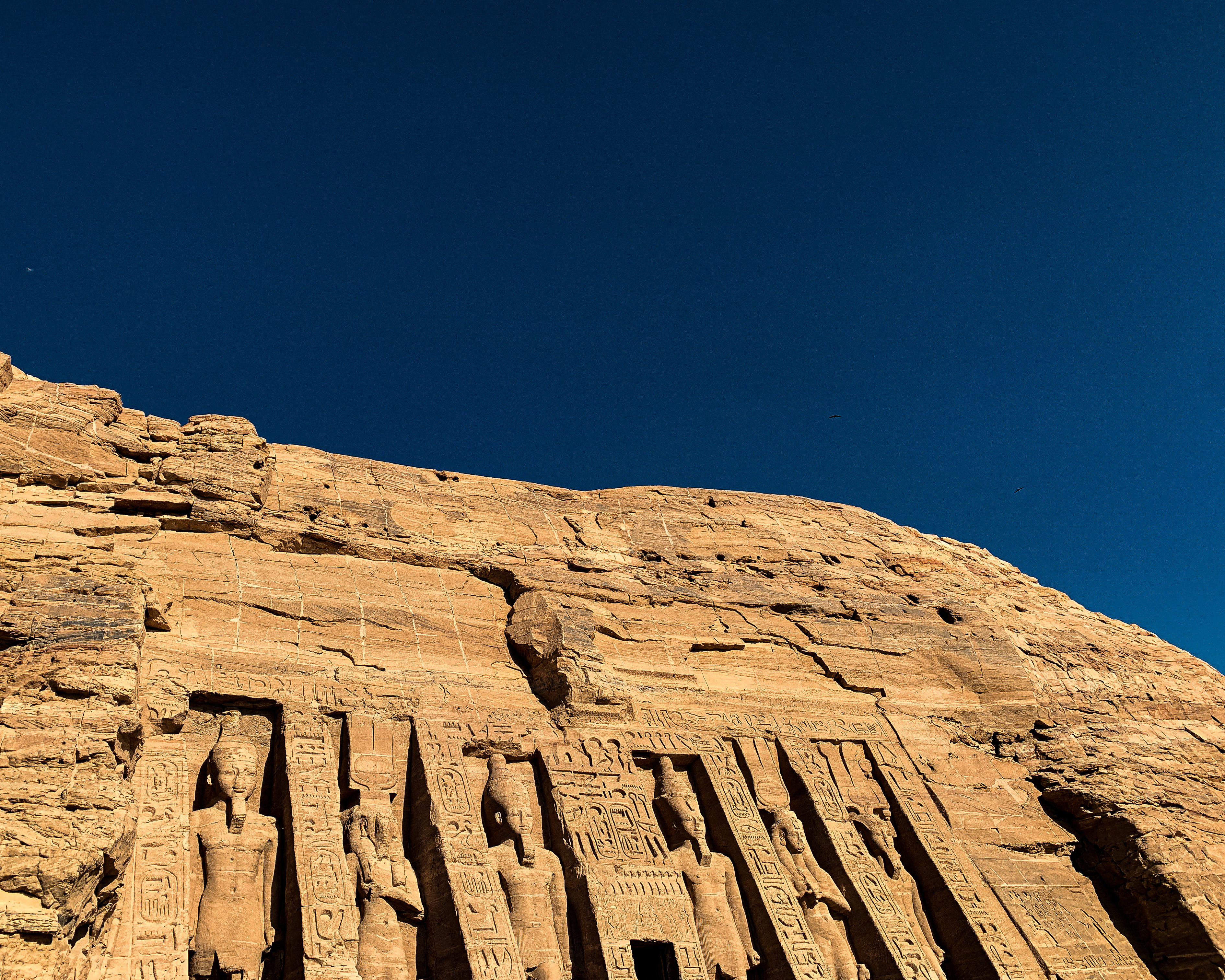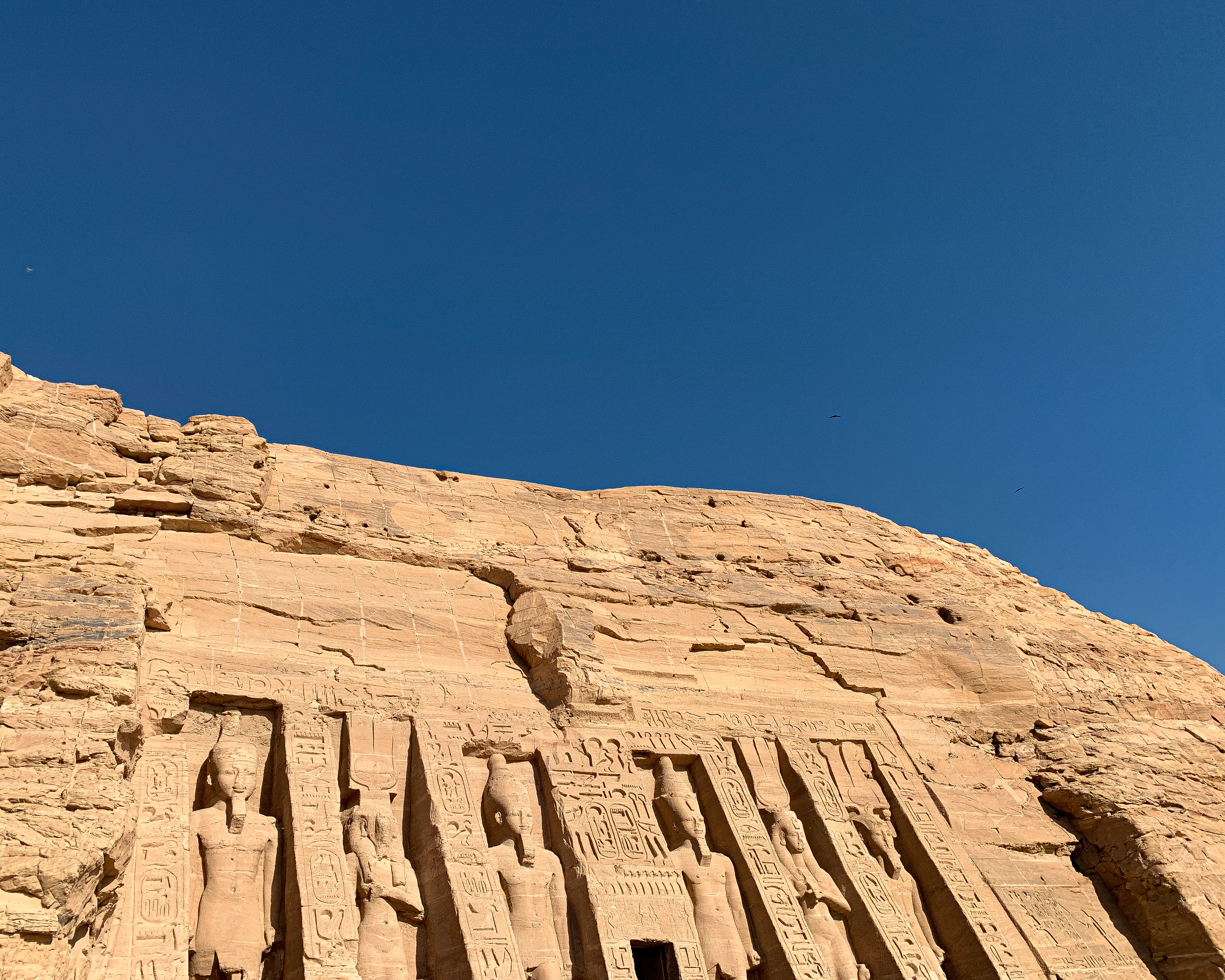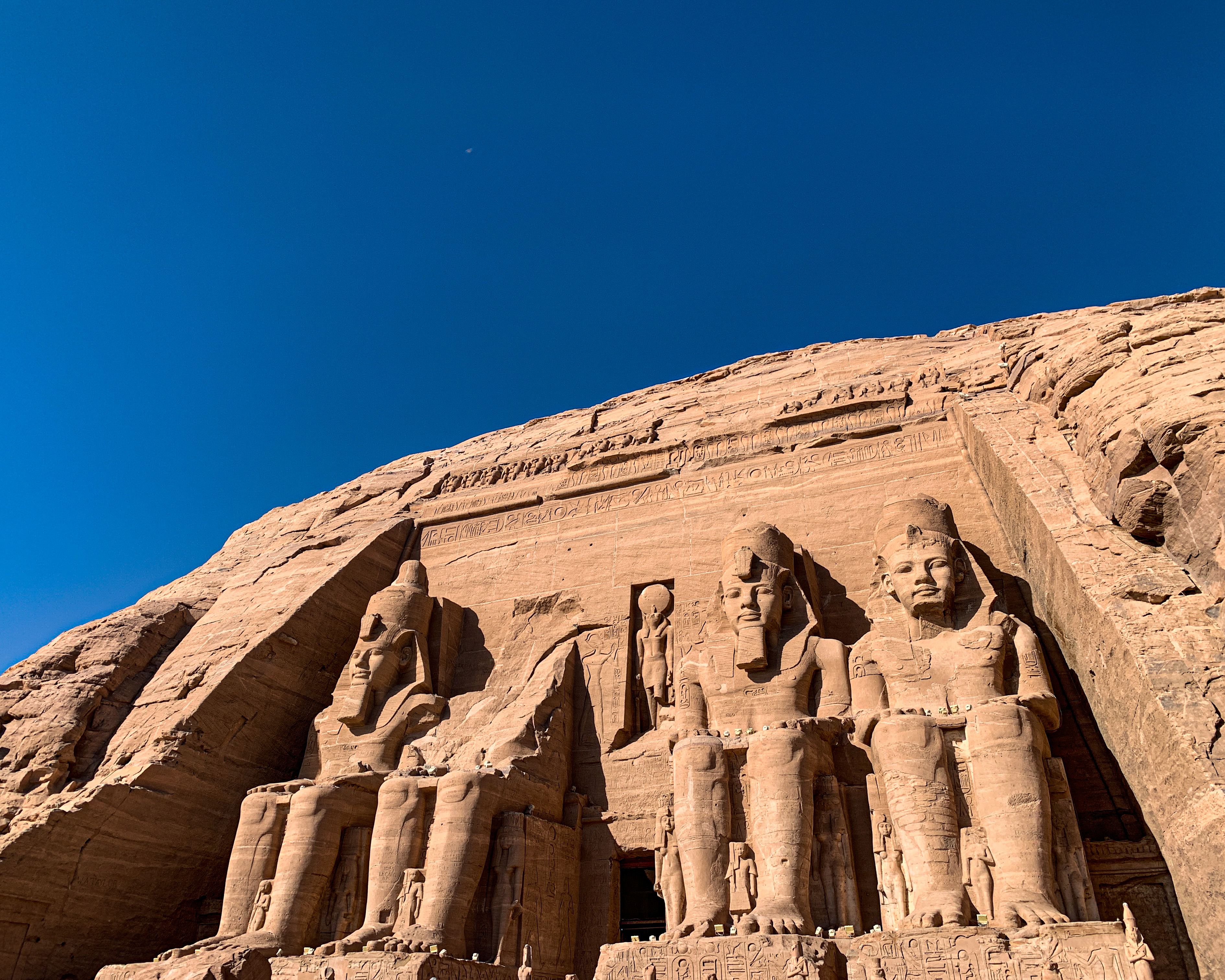 É intrigrante pensar como essas duas gigantes obras foram esculpidas em pedra há mais de 3 mil anos. Outro fato que desperta curiosidade é saber que esses templos foram na verdade construídos em outro local. Por conta da construção da barragem de Aswan, uma complexa operação liderada pela UNESCO, foi realizada entre os anos de 1964-68, afim de garantir que o templo não ficasse submerso. O templo teve que ser “recortado” em mais de 1000 partes e remontado posteriormente. Hoje ele está cerca de 65m acima e 200m distantes do local original. Vale a pena checar umas fotos da operação online. É impressionante! Ainda bem que deu tudo certo. 😅