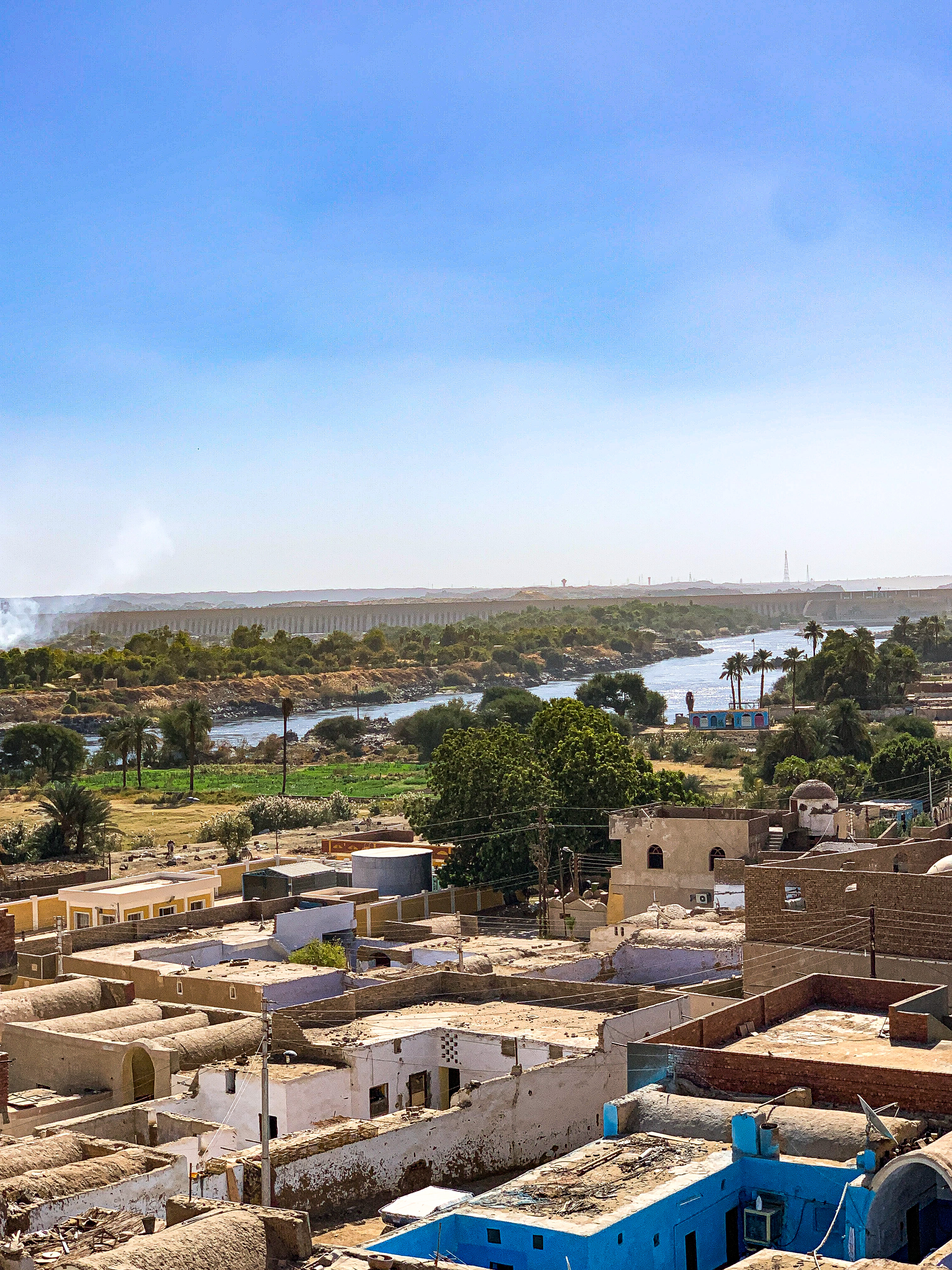 Depois de uma noite sobre trilhos, a maior parte do tempo margeando o rio Nilo, por volta das 11h da manhã chegamos em Aswan. Saímos do trem e na frente da estação, um senhor contratado pela pousada já nos aguardava e nos levou até lá. Nossa hospedagem ficava um pouco afastada do centro da cidade, em uma vila núbia. Os núbios são um povo nativo que vive ao longo do Nilo na região entre o sul do Egito e o norte do Sudão e que habitam a região desde os tempos farônicos, há mais de 3 mil anos.