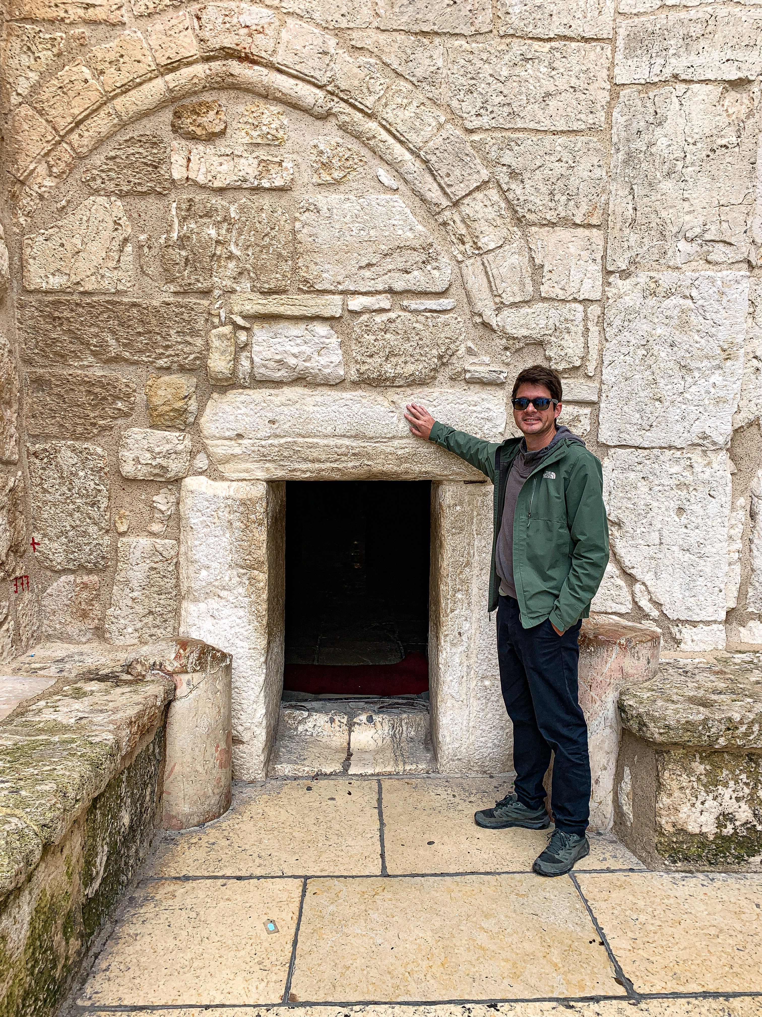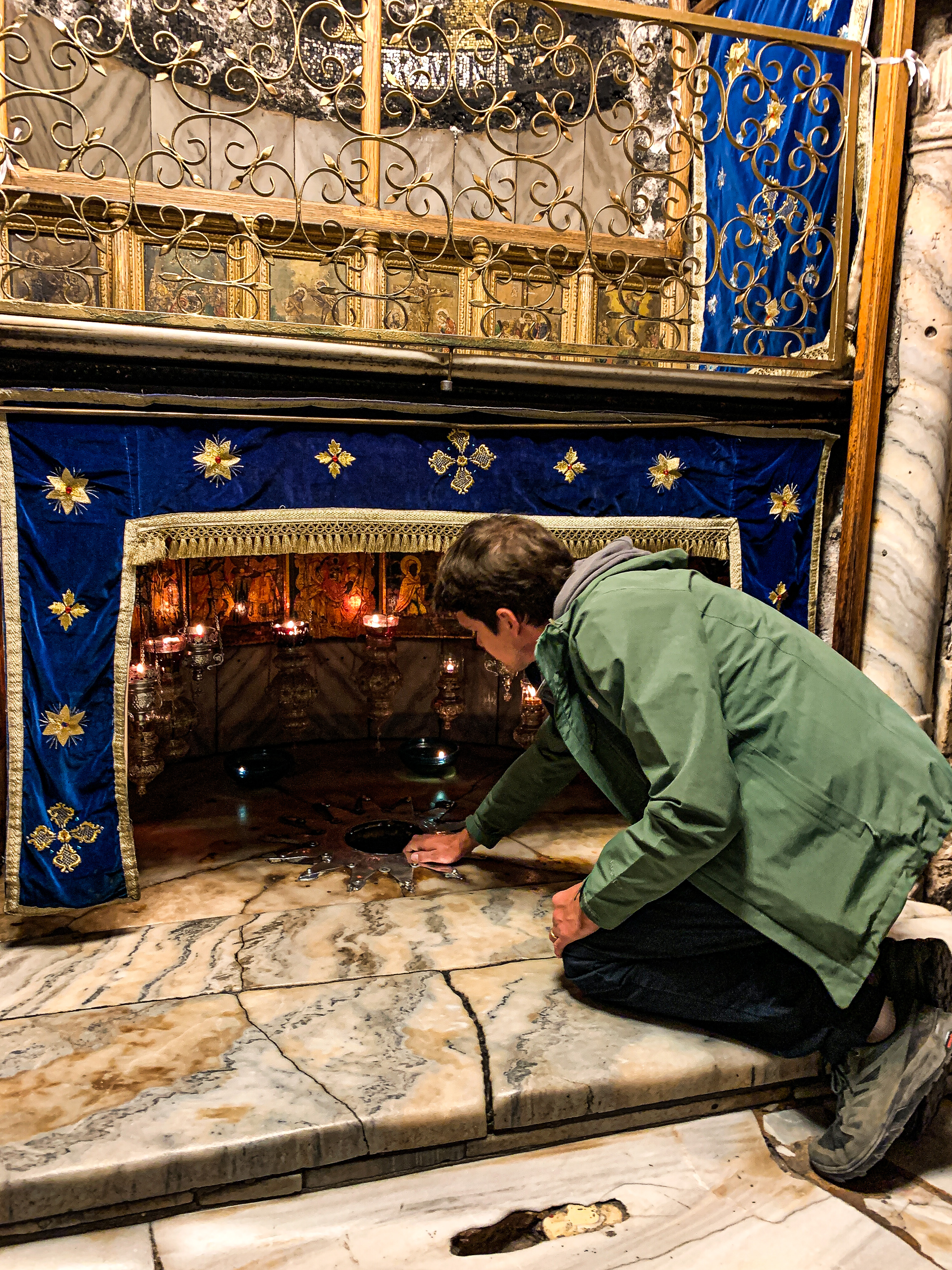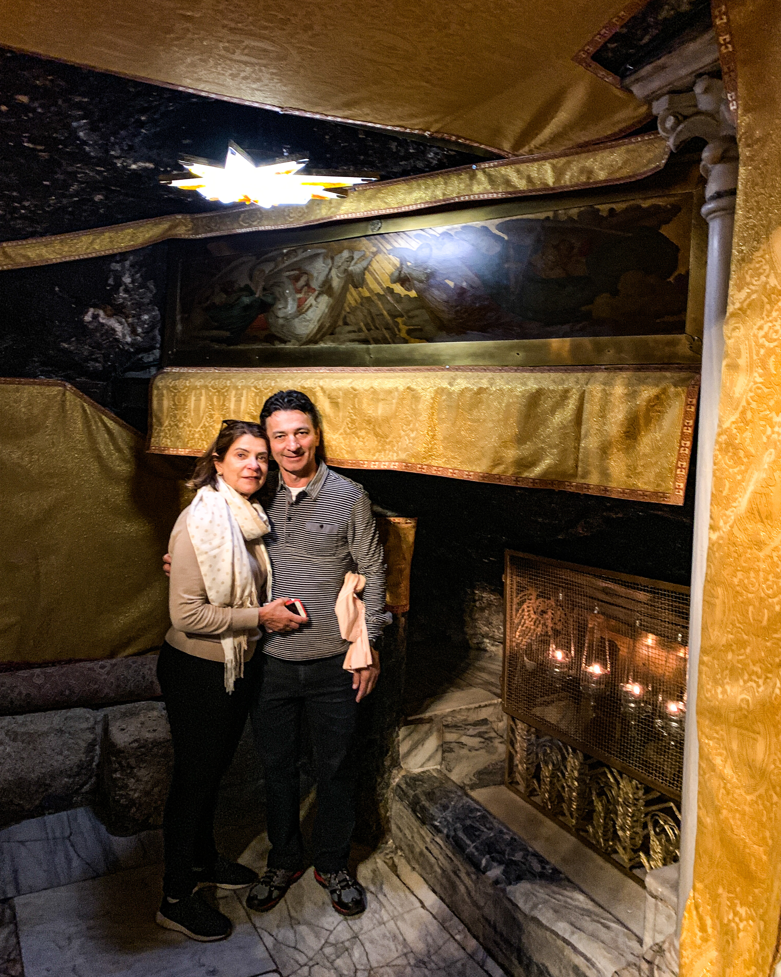 Saímos na última parada da linha e de lá caminhamos direto para a Igreja da Natividade, onde está a gruta em que Jesus teria nascido. Chegamos lá por volta das 12h e pudemos visitar o local com bastante calma, praticamente uma visita privada. Essa foi outra vantagem de irmos por conta própria – nesse horário, a maioria dos tours estão saindo ou voltando a Jerusalém.