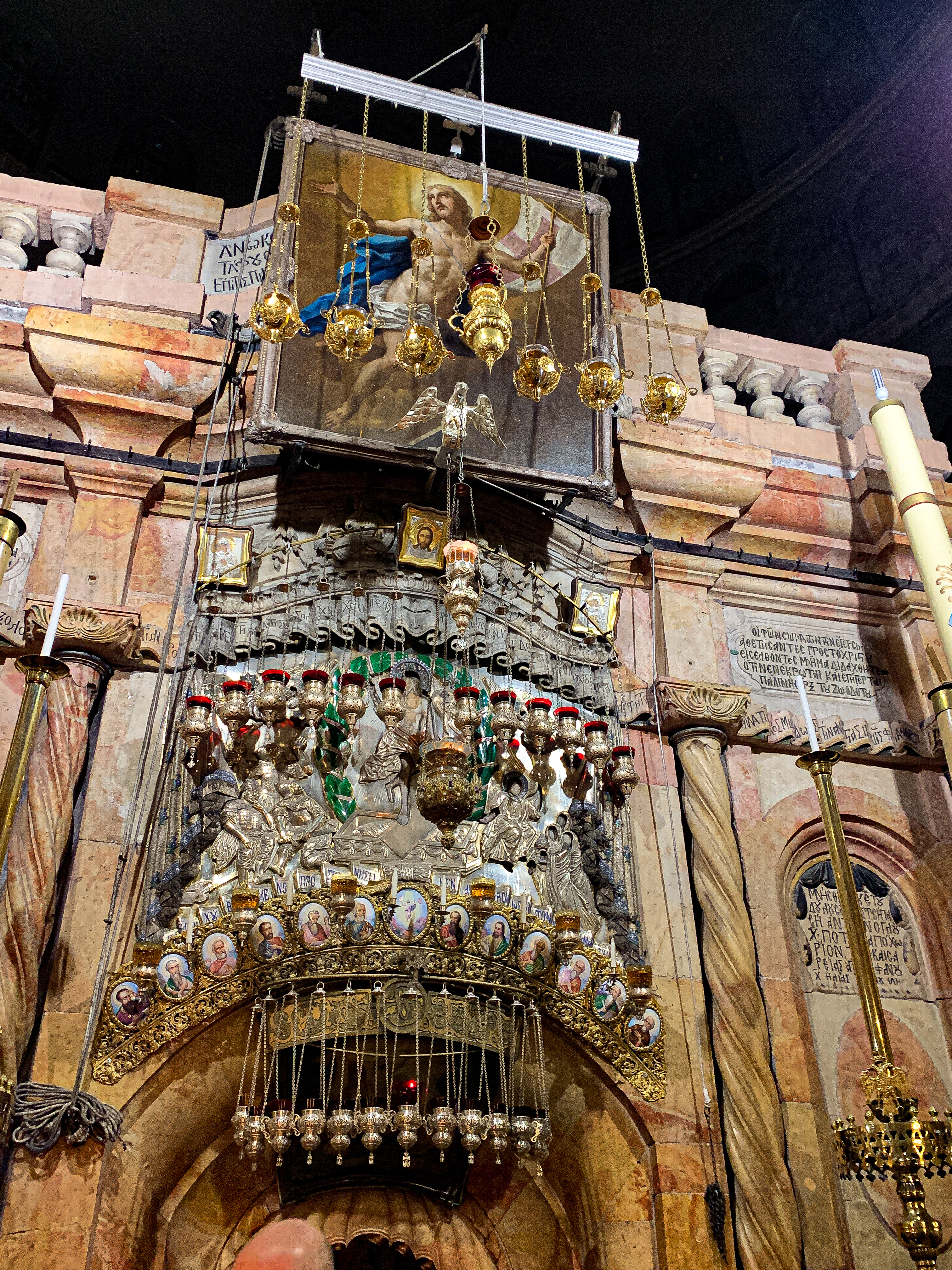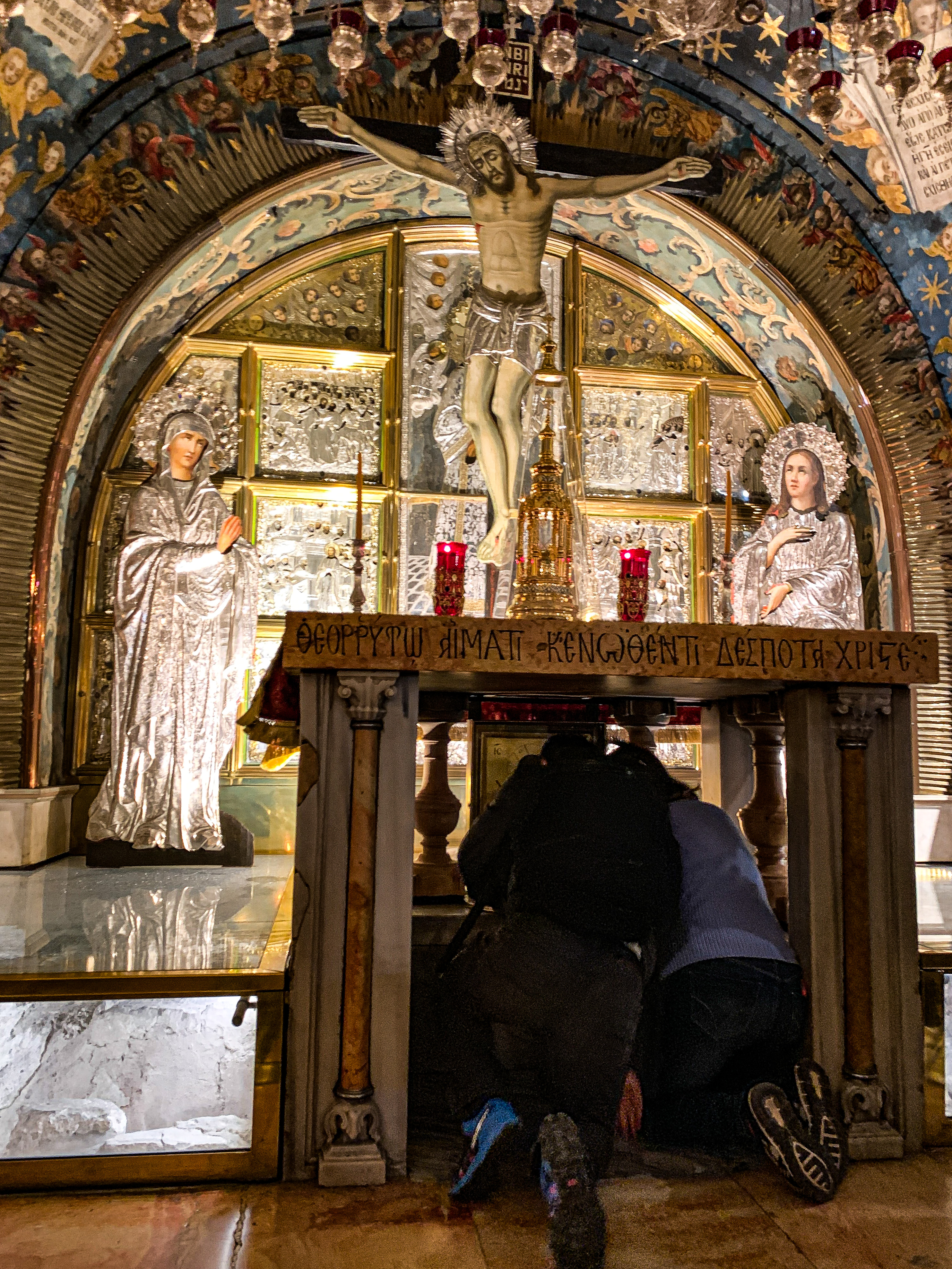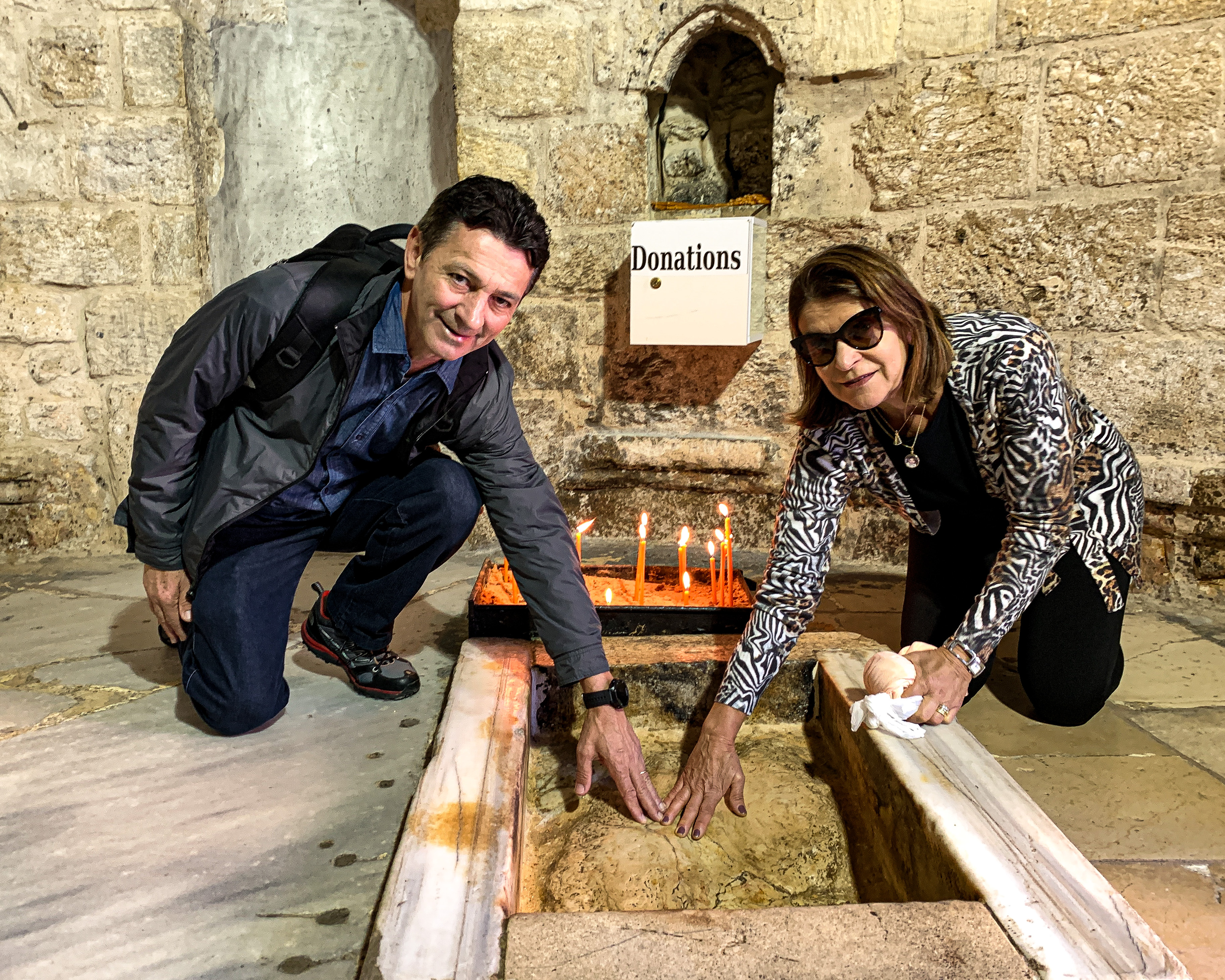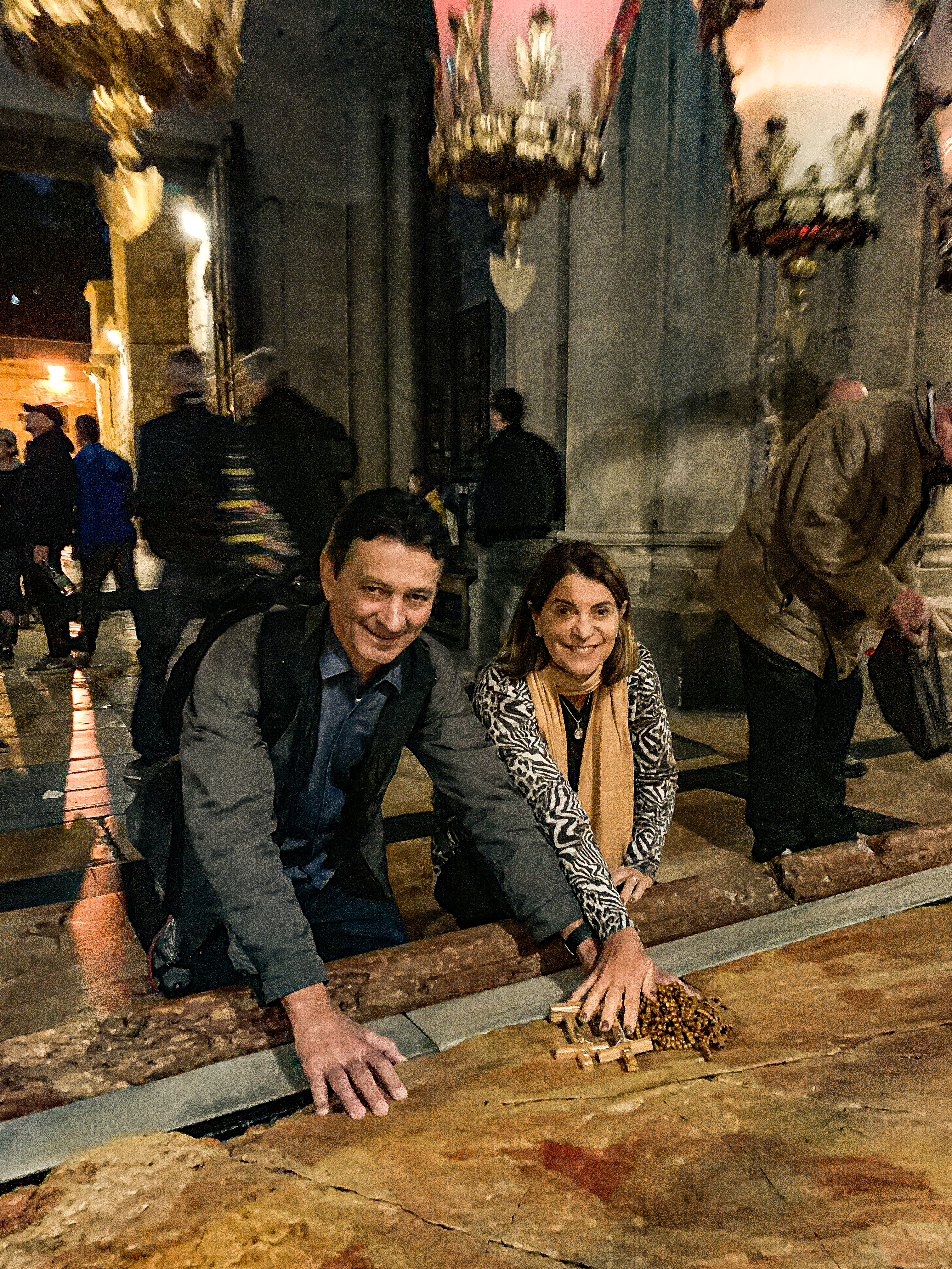 Conforme a tradição cristã, qualquer objeto que tocou o corpo de Cristo é considerado uma relíquia de “1o grau” (caso da rocha onde Jesus foi colocado após ser retirado da cruz) e qualquer objeto que toca uma relíquia de 1o grau passa a ser considerado uma relíquia de “2o grau”. Assim, aproveitamos para abençoar algumas lembranças que seriam enviadas ao Brasil. 😊