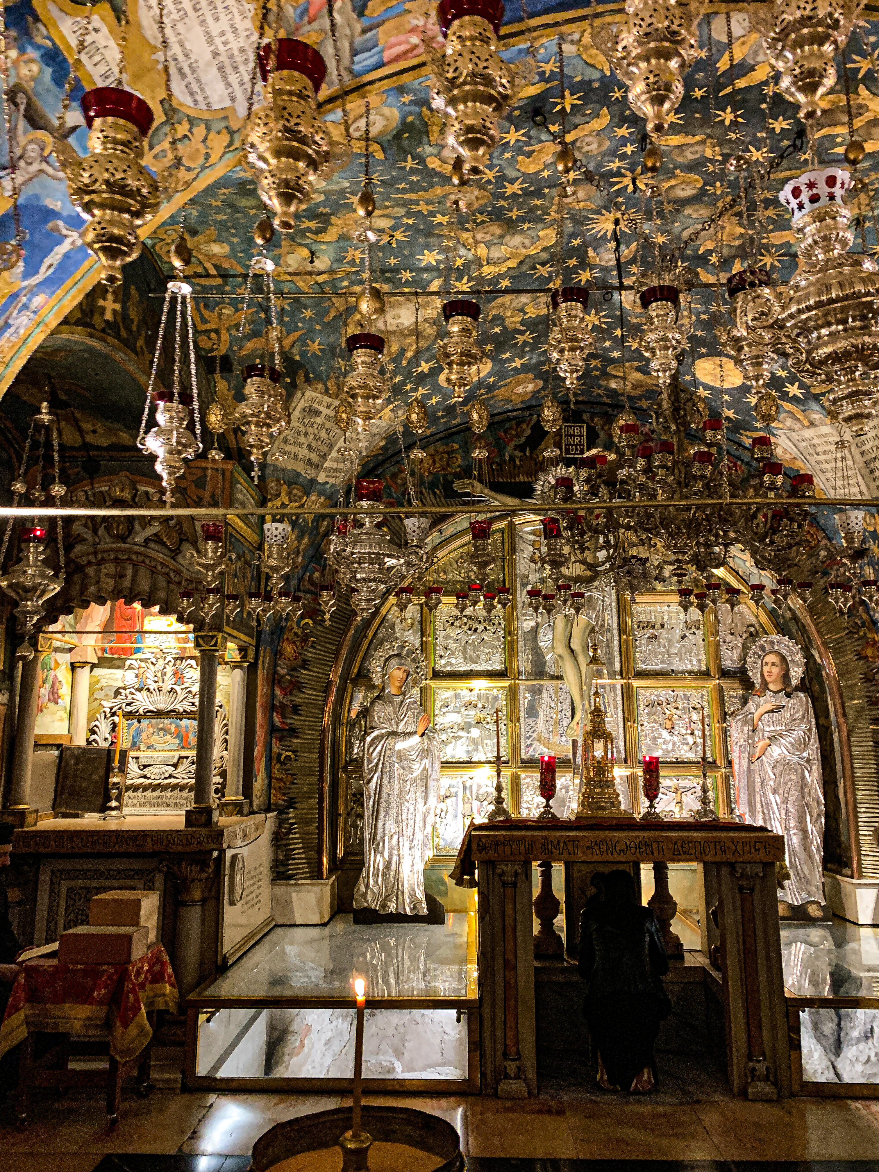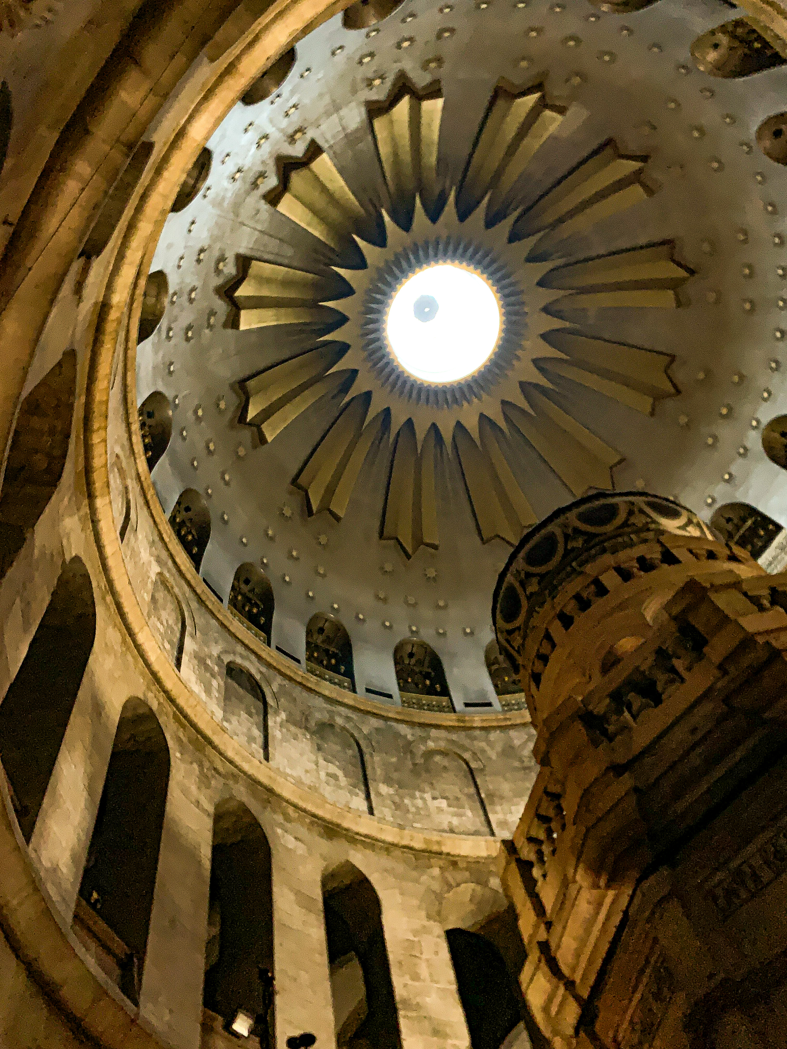 A tarde, voltamos para a cidade antiga e aproveitamos o pouco movimento para ir direto à Igreja do Santo Sepulcro, local que incorpora as 5 estações finais da Via Sacra (paradas 10 a 14). Ficamos algumas horas por lá conhecendo todos os principais pontos, entre eles o local onde Jesus teria sido pregado a cruz (11a estação), a rocha do Calvário, onde a cruz teria sido erguida e que pode ser tocada através de um altar (12a estação), o local onde o corpo de Jesus teria sido retirado da cruz (13a estação) e a tumba onde Jesus foi enterrado e teria ressuscitado (14a estação).