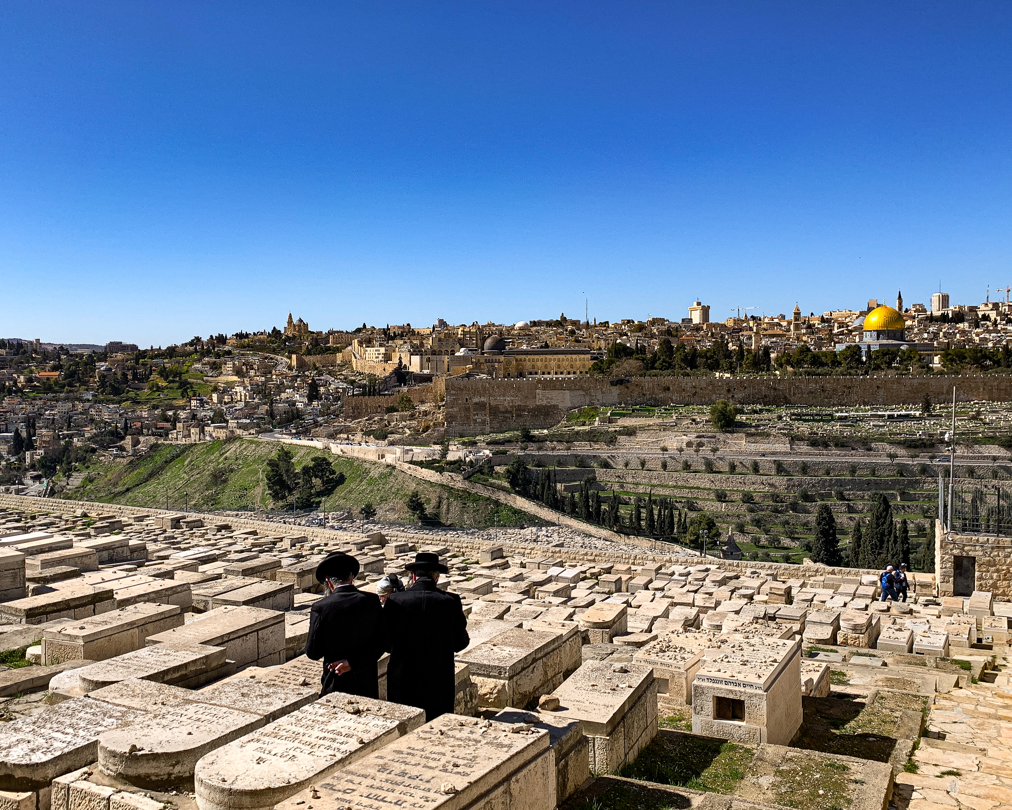 Na sequência, passamos pelo famoso mirante do Monte com vista para o cemitério judeu e a cidade murada de Jerusalém (com destaque para a vista da cúpula dourada).