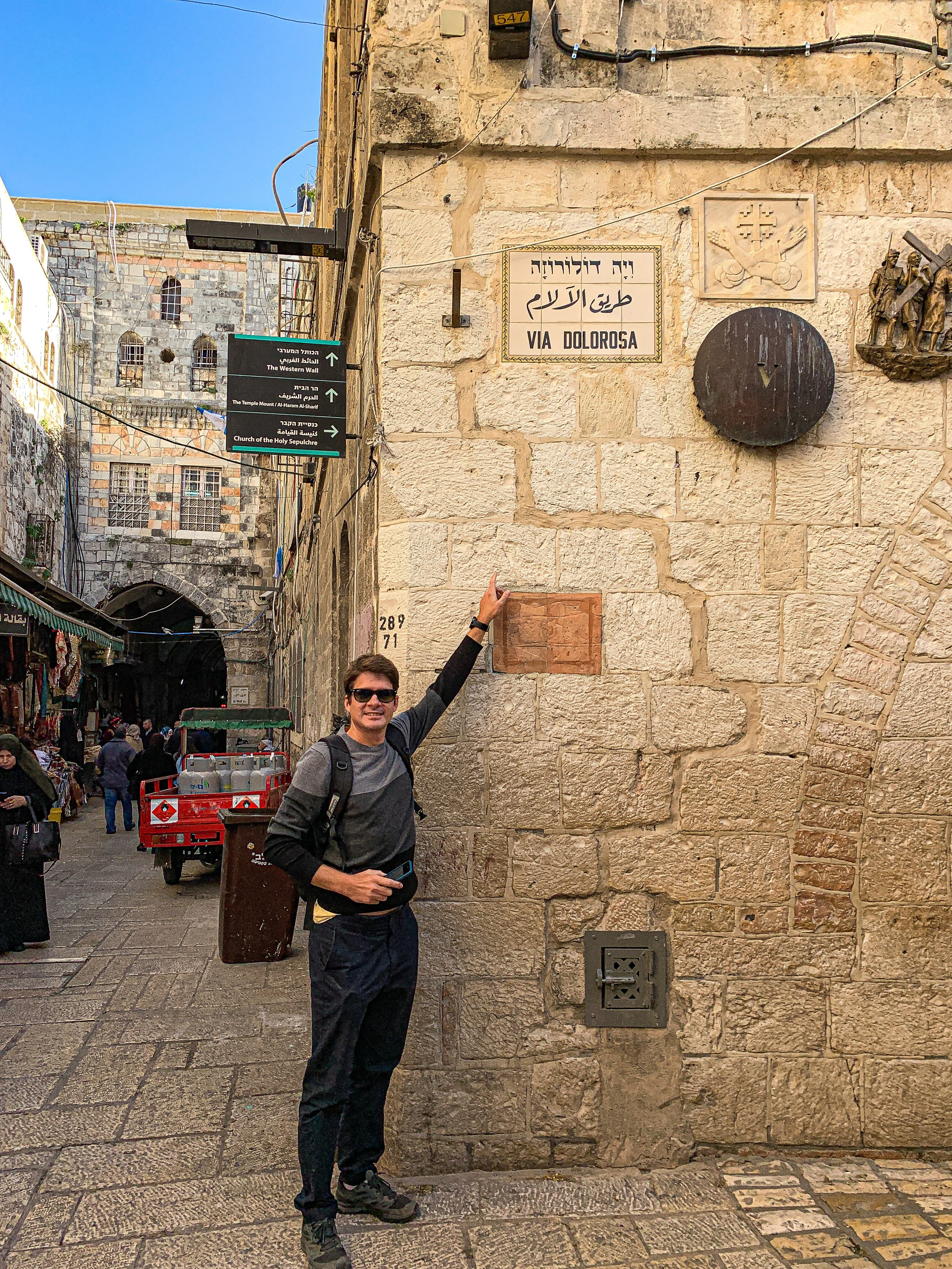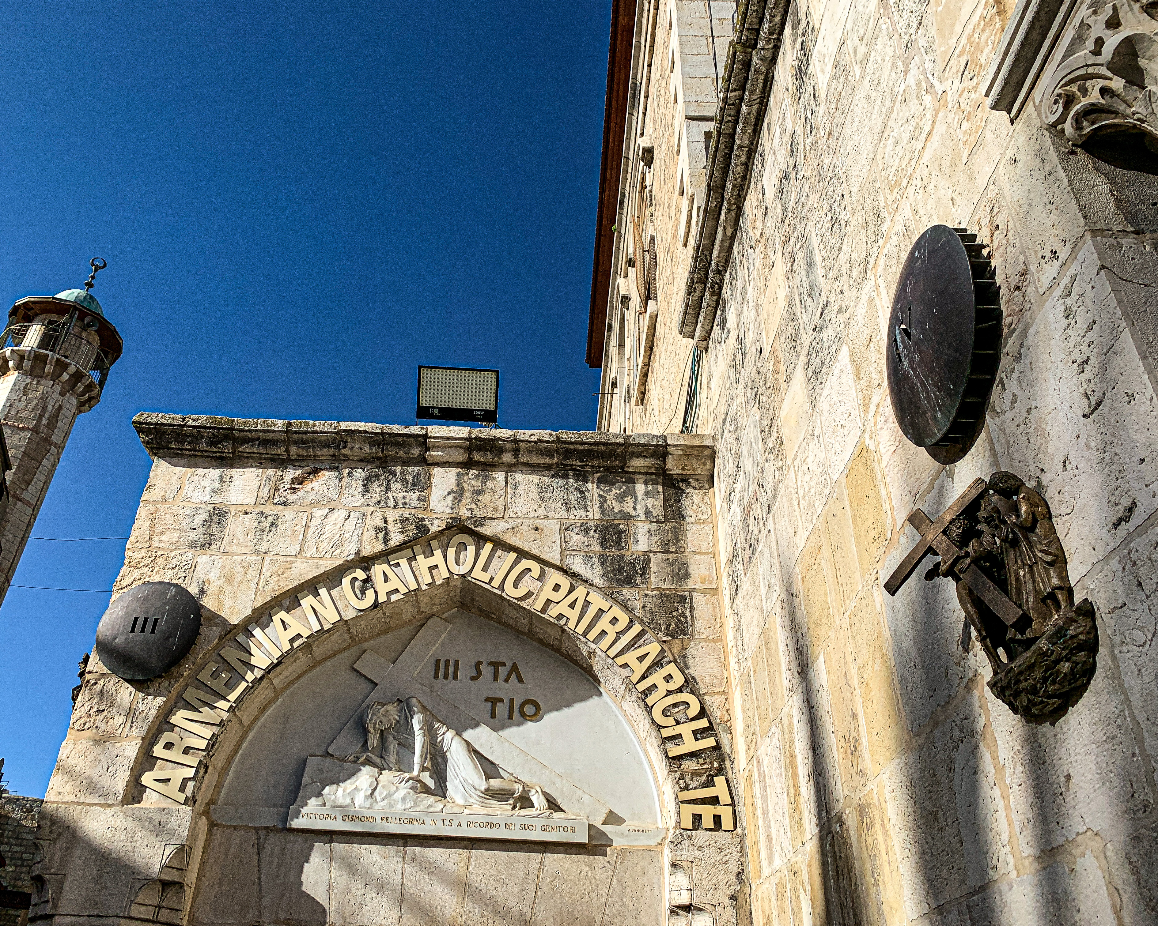 Para fazer a digestão, decidimos caminhar pelas estações da Via Dolorosa, como é conhecida a via Sacra por lá. Fizemos o caminho inverso e saímos da Igreja do Santo Sepulcro, onde estão as estações 10-14, e fomos caminhando até as primeiras estações, tentando relembrar todos os passos descritos na Bíblia de trás pra frente.