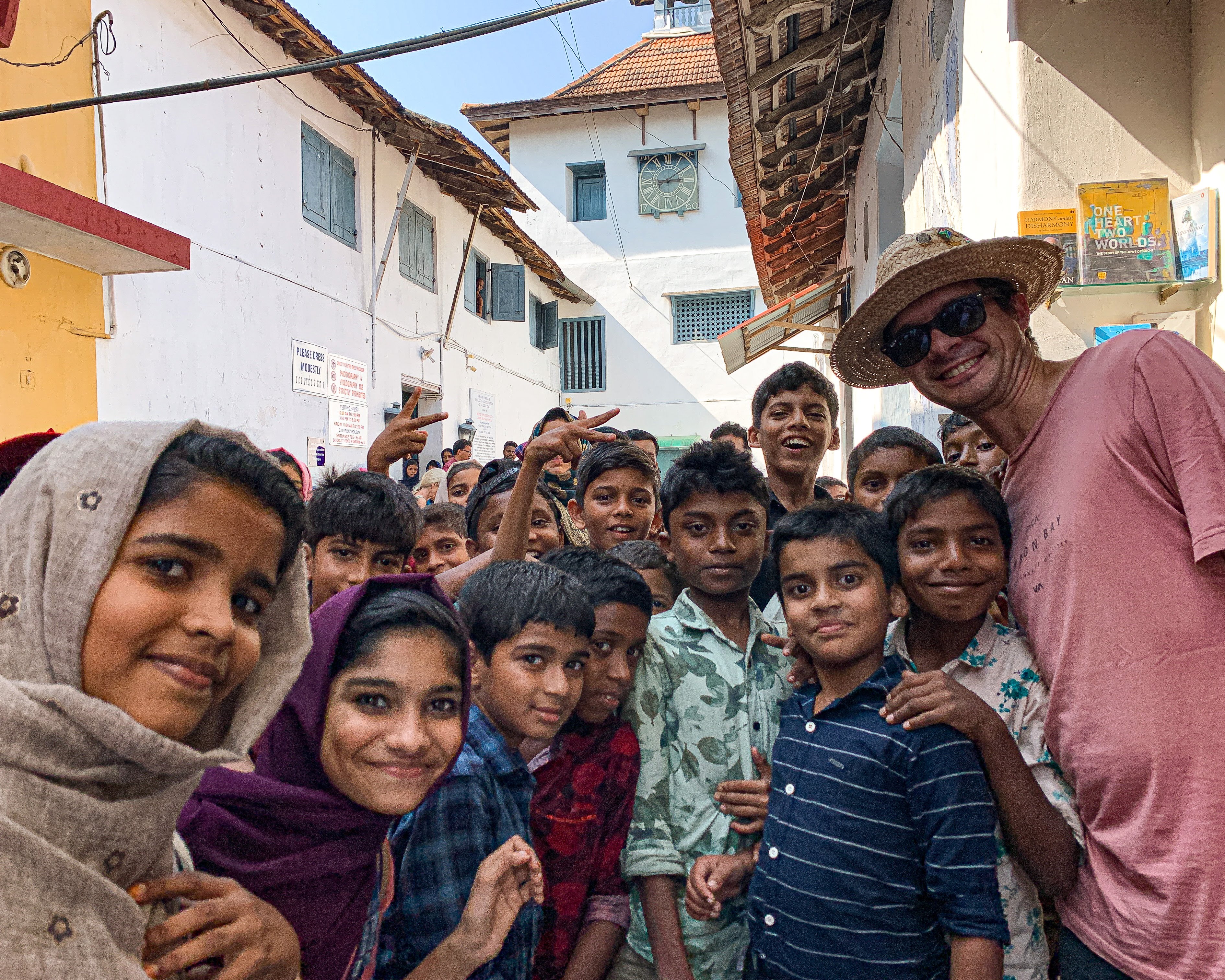 Depois de uma rápida pausa para um lanche e um lassi (bebida típica indiana a base de iogurte e frutas), fomos conhecer o bairro judeu e sua emblemática Sinagoga. Judeus estão presentes na região há séculos e a partir da inquisição espanhola no fim do século 15, muitos deles migraram definitivamente para a região. Assim, a primeira sinagoga do local foi construída em 1568 e, com o auxílio de algumas reformas e restaurações, segue de pé há 450 anos, sendo um importante ponto turístico… Hoje em dia, poucos judeus ainda habitam a região, mas a Sinagoga segue sendo uma das principais atrações locais. No caminho, ainda fizemos a alegria das crianças com algumas fotos. 😅