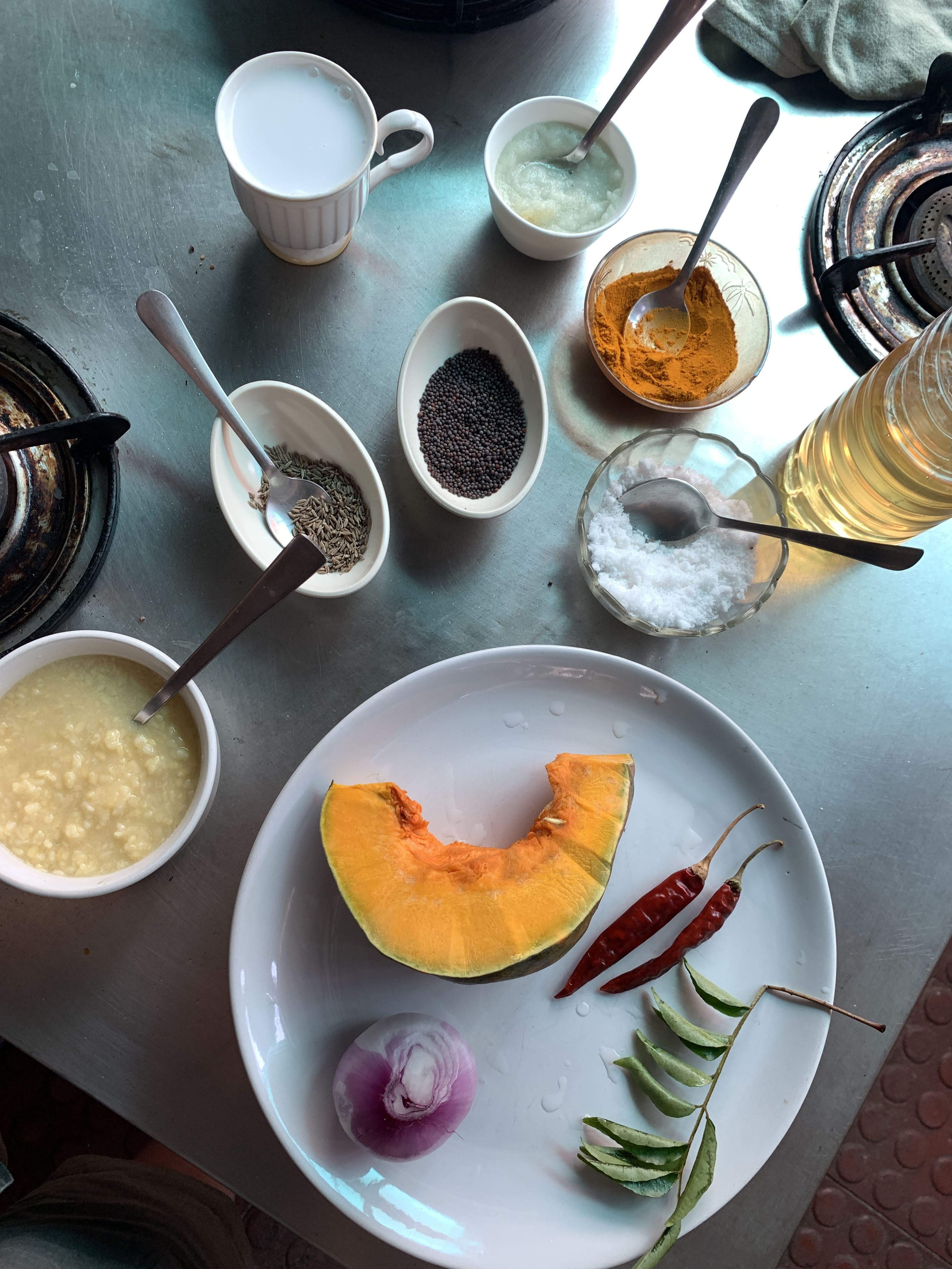 O último dia em Kochi foi dedicado às experiências. Tomamos um café da manhã rápido e logo já fomos para o Mary’s Kitchen, restaurante que almoçamos no nosso primeiro dia, fazer uma aula de culinária indiana. 😃 A Mary, que dá nome ao restaurante, nos ensinou, com muita paciência, a fazer cinco tradicionais pratos da região de Kerala: fish mango curry (curry de manga com peixe), prawn masala (camarões em molho de tomate com várias especiarias), tomato curry (curry de tomate), pumpkin curry (curry de abóbora) e chapati (um pão chato indiano que lembra um pão pita, muito consumido na Índia e na África). A aula durou cerca de uma hora e meia e depois tivemos a melhor parte, é claro, provar a nossa comida. Por sinal, ficou uma delícia!!! 😋