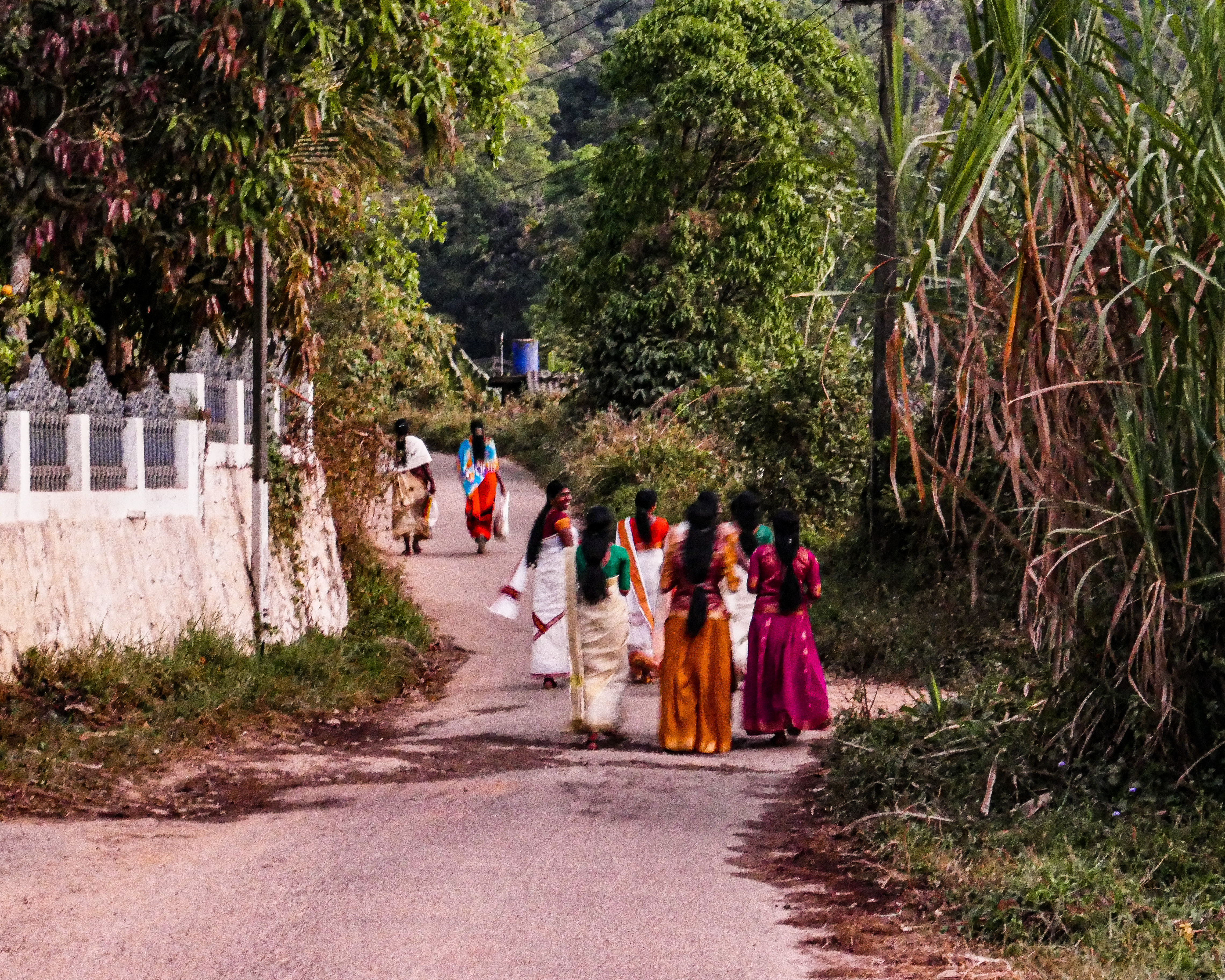Energias recarregadas, começamos a descida. Dessa vez, pelo outro lado da montanha, em uma floresta um pouco mais densa. Já aos pés da montanha, vimos as plantações de café e cardamomo, outras especialidades da região. Passamos por mais algumas plantações de chá e observamos o trabalho incansável das mulheres colhendo e carregando bolsas cheias de folhas de chá. Impressionante!