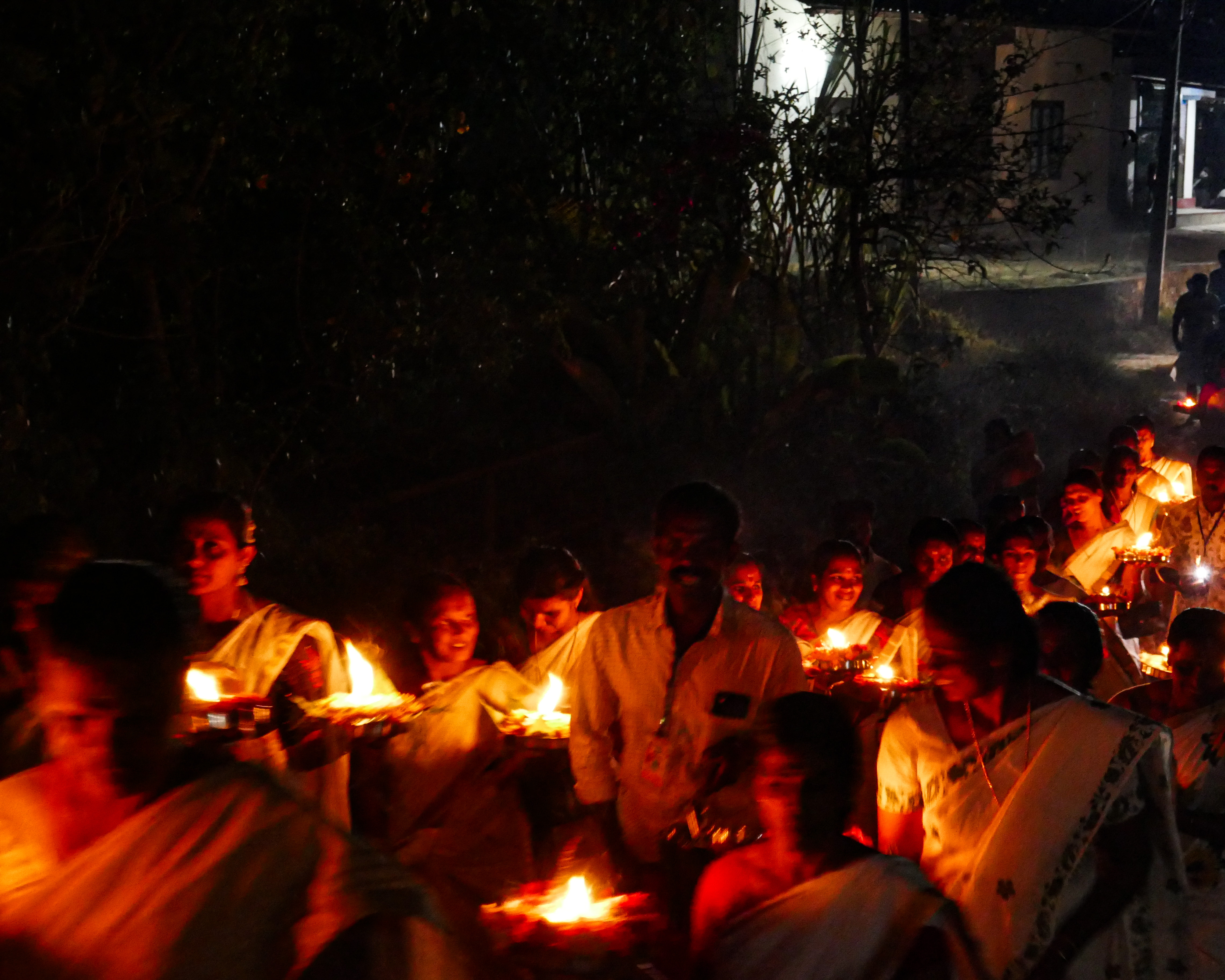 Logo que chegamos, por recomendação dos donos da pousada, subimos até uma monte próximo para ver o pôr do sol que estava espetacular! Mais tarde, para nossa surpresa, acompanhamos uma procissão (Shivaratri) em homenagem a Shiva, um dos deuses hindus mais importantes. Foi interessante observar a celebração de uma forma bem autêntica e local. Aliás, por ser um pouco afastada do centro, a região onde ficamos quase não tinha turistas estrangeiros. A comunicação inclusive era um desafio, mas só deixou a experiência mais divertida… 😅 Jantamos ali na pousada mesmo e fomos dormir cedo, pois o dia seguinte prometia.