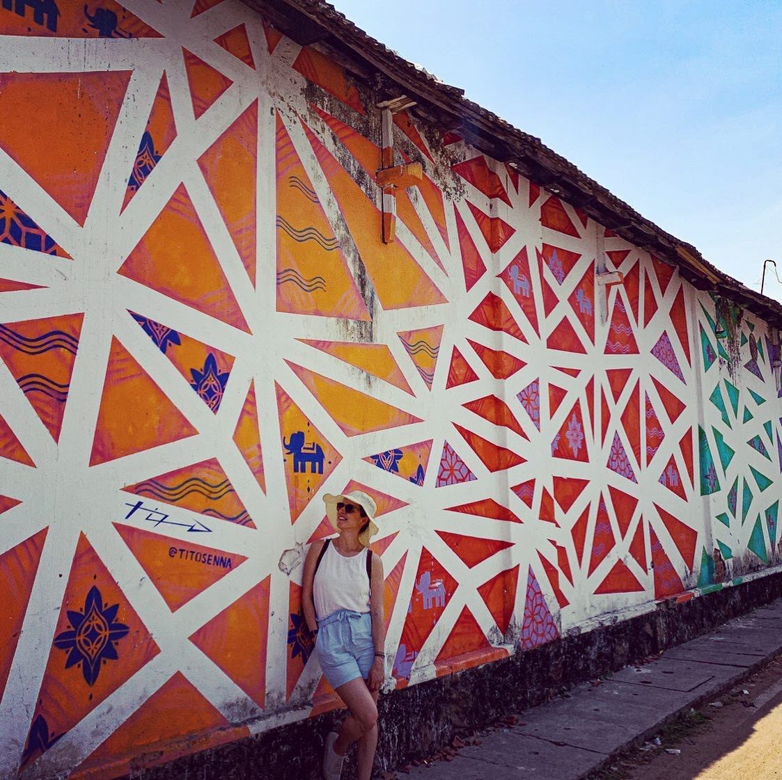 Kochi tem muita história, a qual inclui colônias portuguesas e holandesas, mesquitas e sinagogas e vestígios do domínio inglês no país. A parte mais interessante para nós foi conhecer sobre a ocupação portuguesa na cidade que remonta ao século 16. Kochi foi a primeira colônia do país na região (posteriormente substituída por Goa) e importante centro comercial entre a Europa e as “Índias”. Pedro Álvares Cabral inclusive esteve por lá em 1500, conforme descobrimos ali mesmo. 😳 Não foi mesmo acaso que durante a caminhada pela parte histórica de Kochi passamos em frente a várias igrejas católicas, mas poucos templos hindus. Aliás, encontramos lindos grafites e quando fomos procurar, um deles tinha sido feito por um artista brasileiro (Tito Senna). 😃