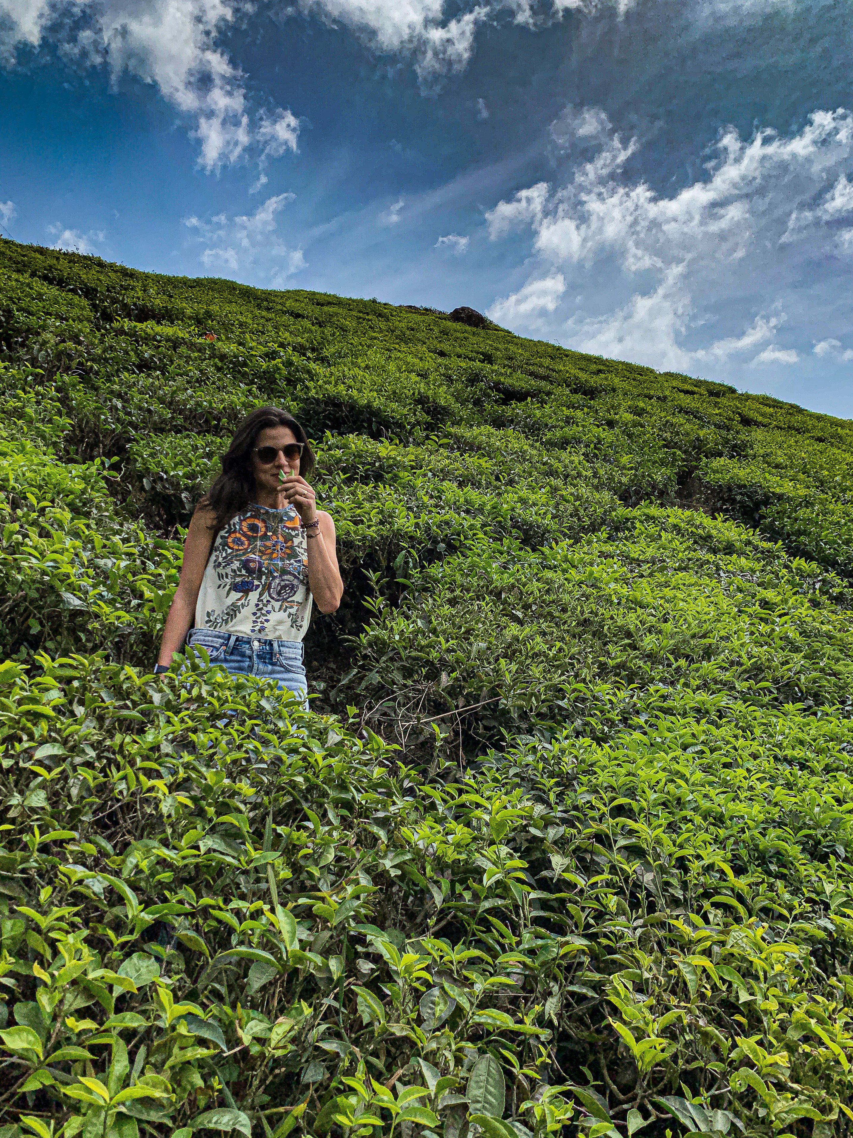 Pelo o que lemos, a Lockhart oferece uma visita mais completa, além de permitir fotos nas suas plantações de chá que são bem bonitas… mas vai ter que ficar pra próxima! 😐 Pra compensar, o motorista levou a gente em algumas outras plantações próximas e a Gabi aproveitou para fazer mais uma sessão de fotos em meio ao verde. 😁