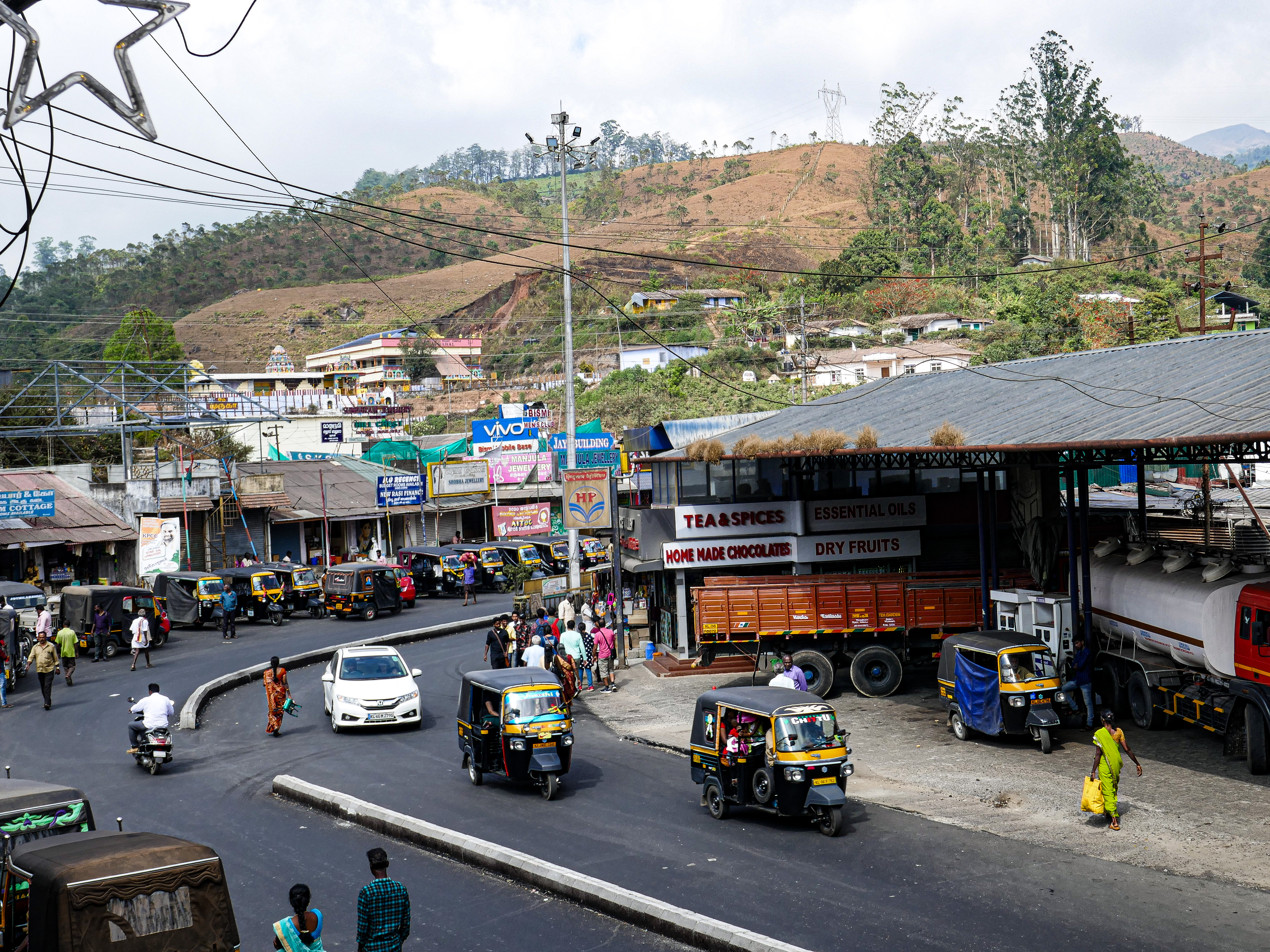 O ônibus era super simples, sem AC e estava lotado (bancos de 2 pessoas acabam acomodando 3 ou 4, e alguns iam em pé). Colocaram a gente em um banco exclusivo (privilégios de turistas 🙄) e lá fomos nós. O calor acabou nem sendo problema, pois as janelas ficavam constantemente abertas, e a vista ia ficando cada vez mais bonita conforme subíamos a serra em direção a Munnar. O que nos atraiu até essa cidade pouco conhecida são as infinitas plantações de chá que cobrem as montanhas e resultam em um visual incrível (as fotos explicam melhor). 😃