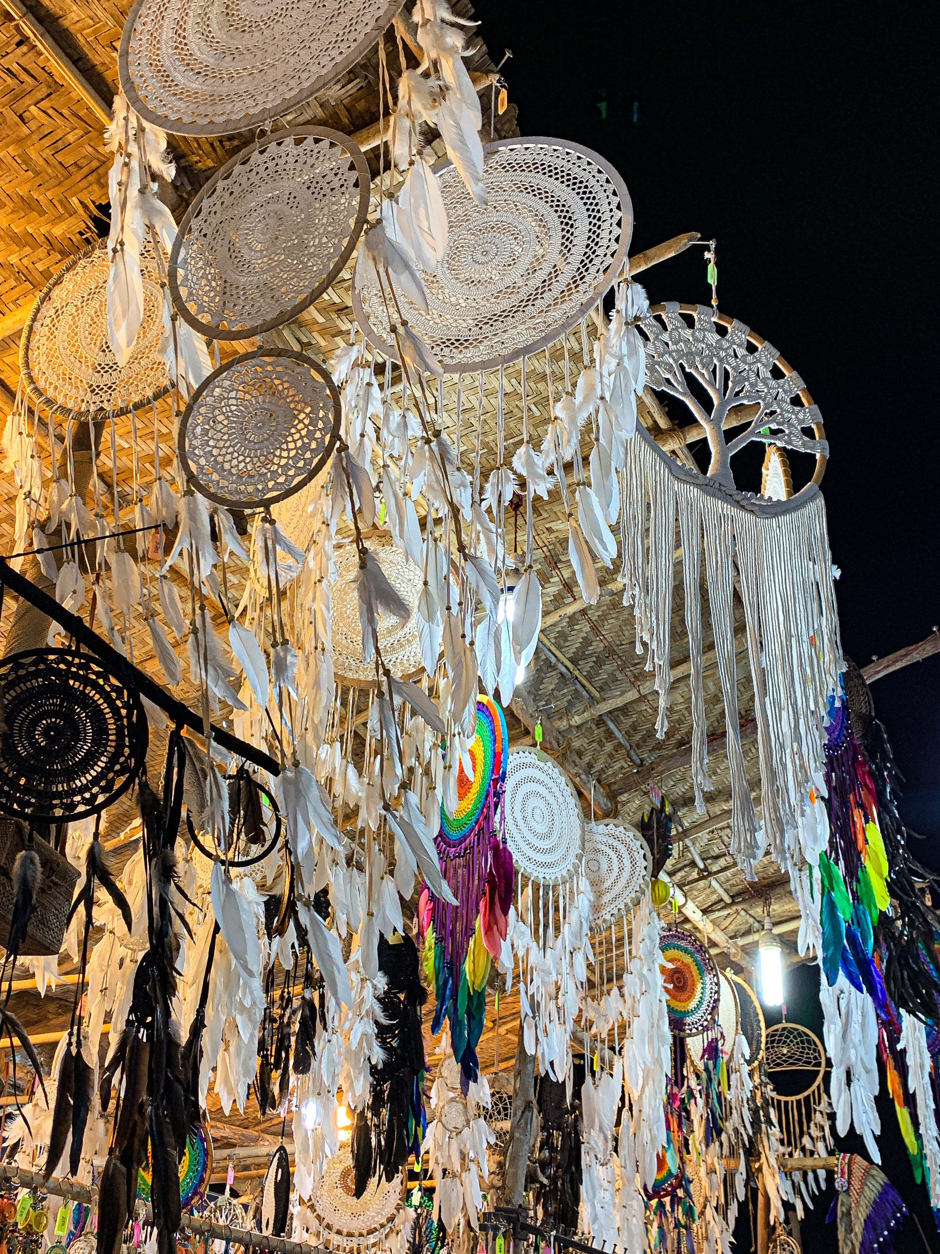 Nosso primeiro dia foi apenas de descanso. Fomos tomar um café longo no Artjuna, um café super estiloso ali da região, e curtimos o resto do dia na praia (e sequer temos foto dessa tarde). À noite, fomos conhecer o Saturday Night Market (mercado noturno), passeamos pelos estandes e já jantamos por ali mesmo. Aliás, a Gabi não perdeu a oportunidade de estrear sua nova saia indiana adquirida em Hampi. 😍