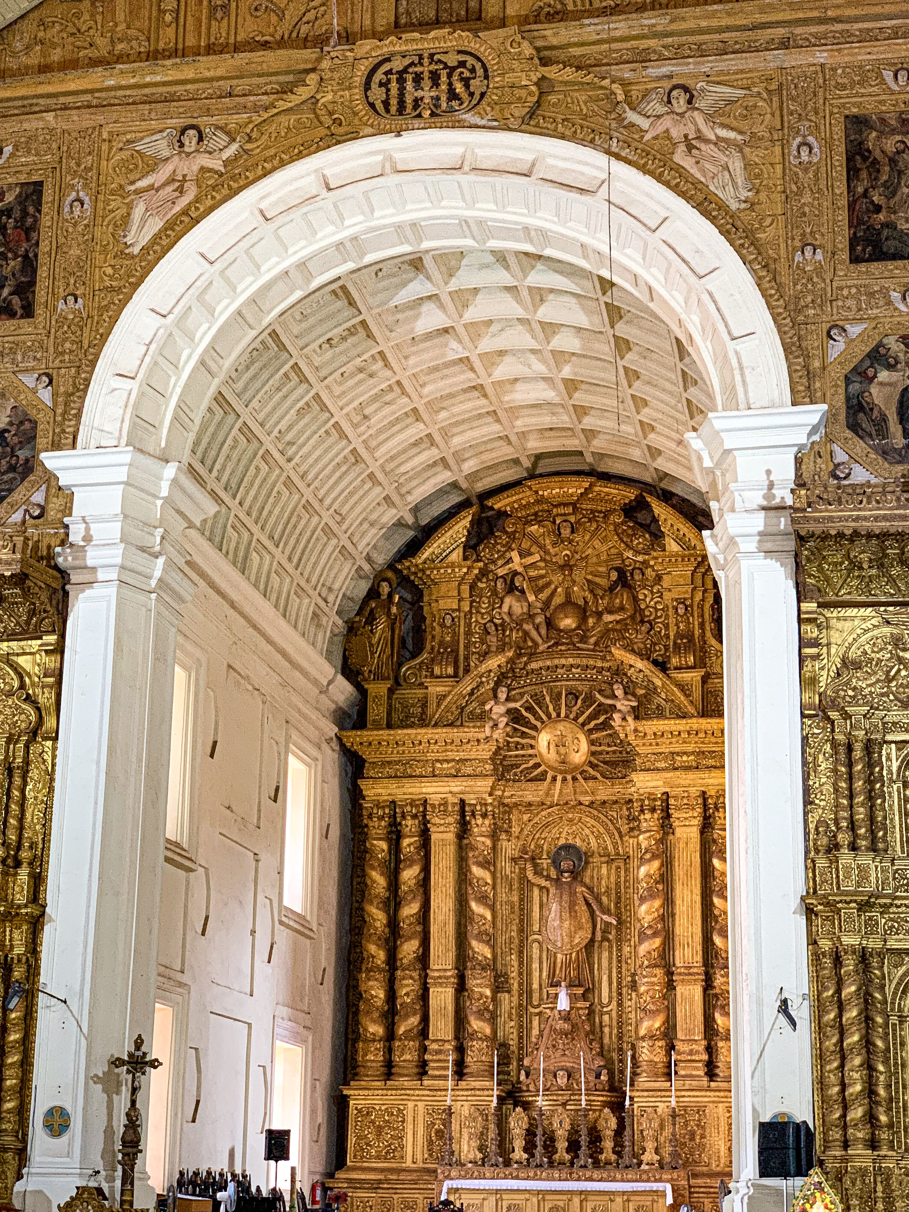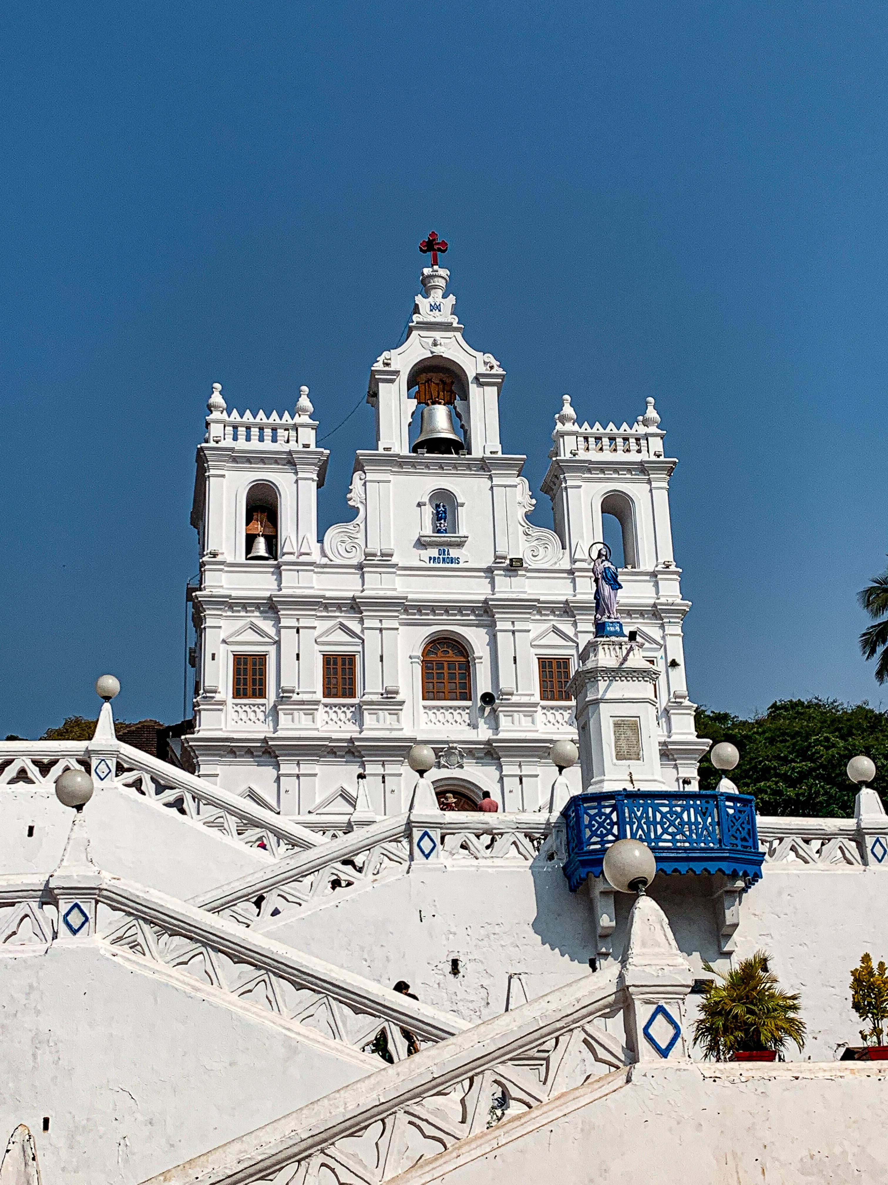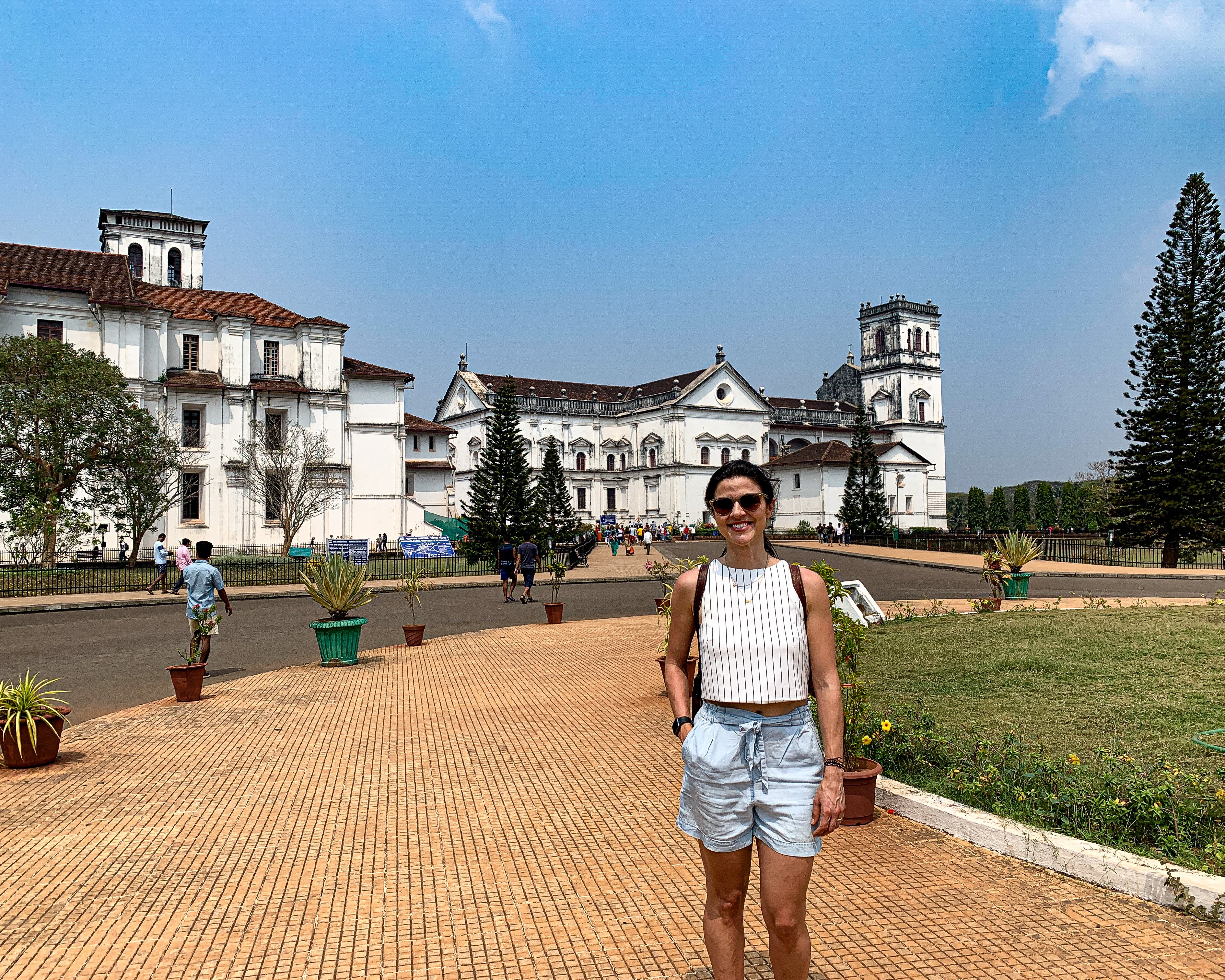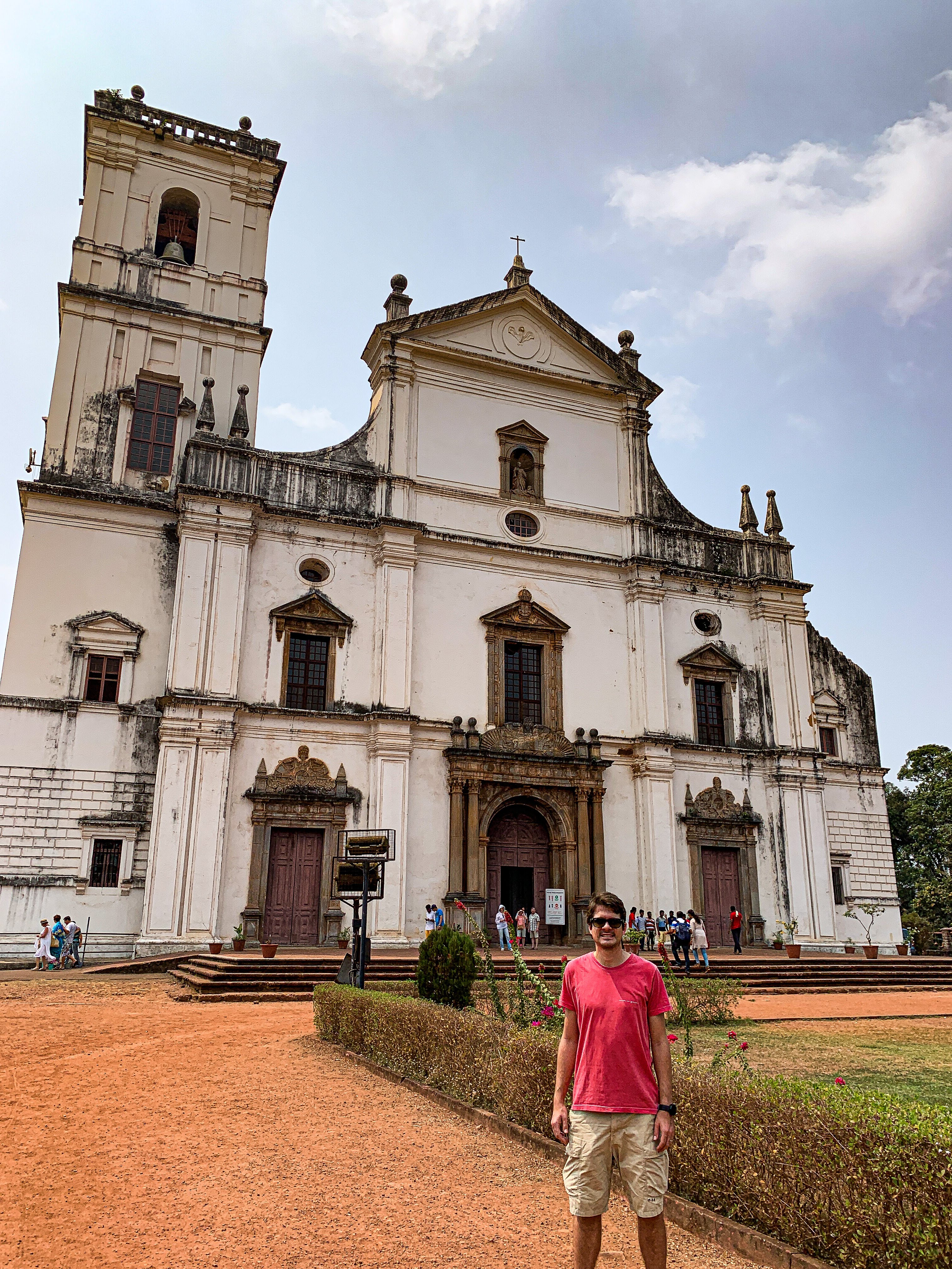 Nosso primeiro destino: Catedral da Sé de Goa. Os portugueses chegaram em Goa em 1510, atraídos pela variedade de especiarias e as oportunidades de comércio. Goa se tornou a principal colônia portuguesa nas “Índias”, a qual durou até 1961. Mas, diferentemente do que tínhamos em mente, apenas uma pequena fração de habitantes fala português por lá hoje em dia. Mesmo assim, Goa ainda preserva vários traços da colonização europeia.