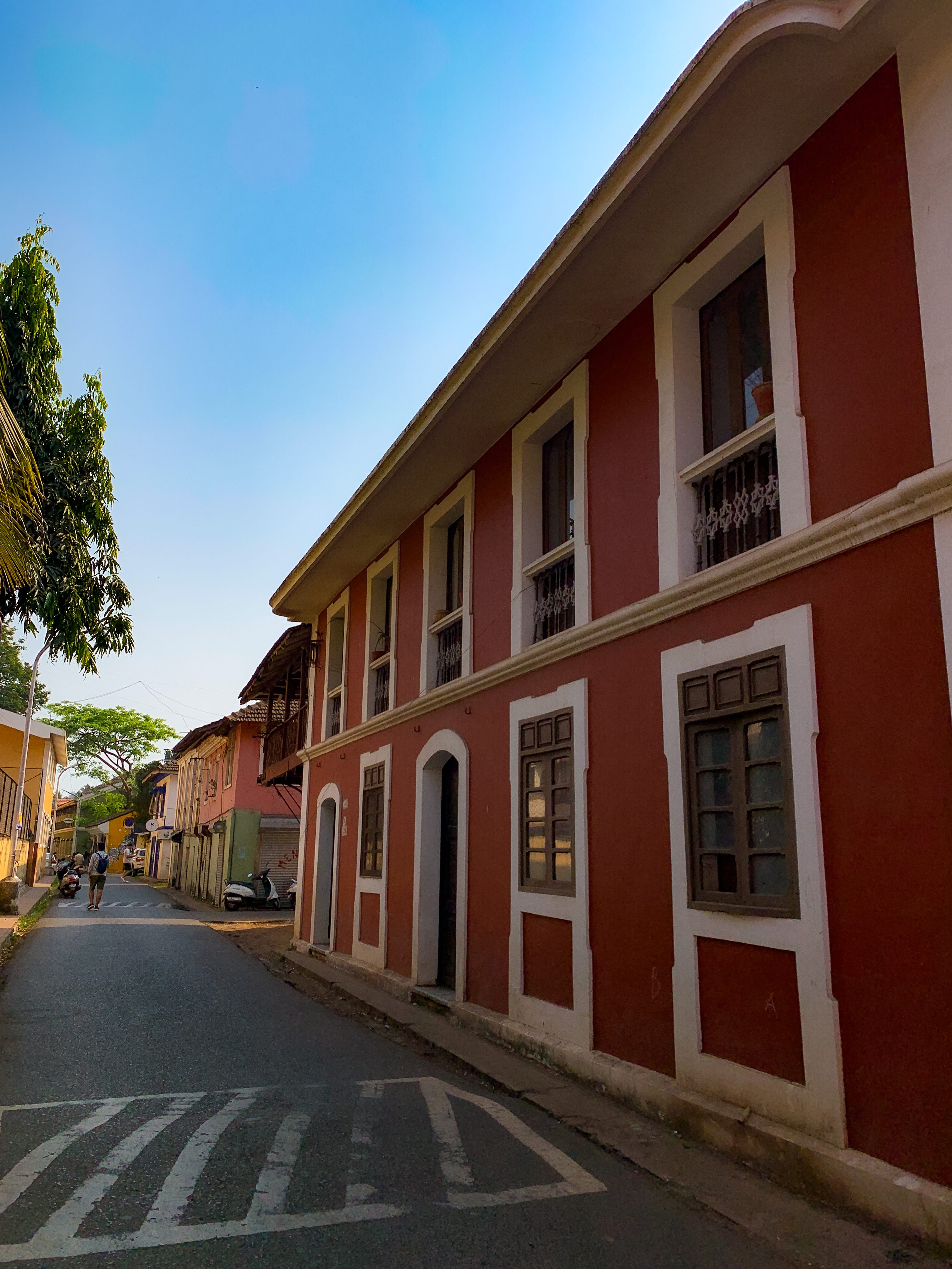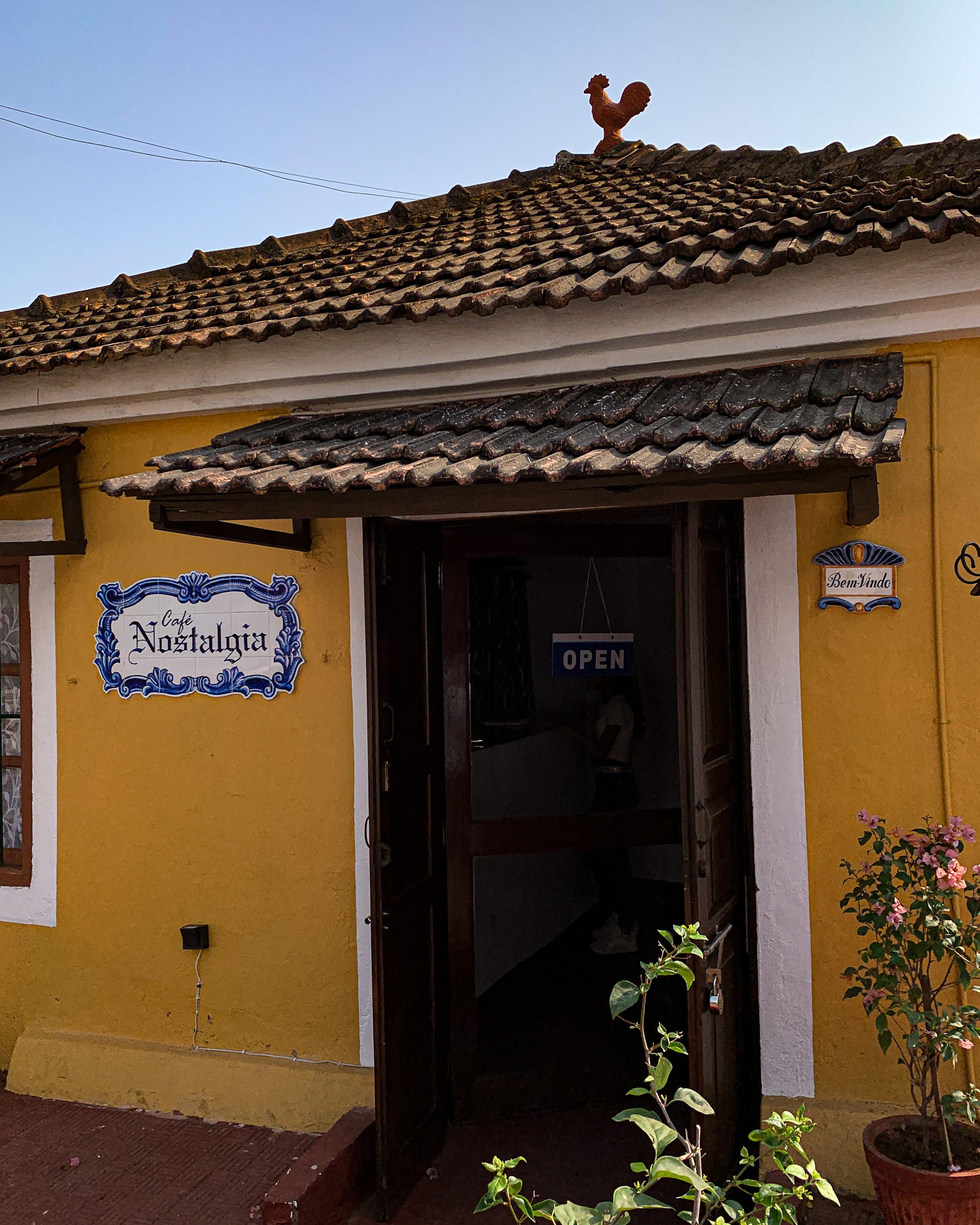 Após o almoço, fomos caminhar um pouco por Fontainhas e explorar suas ruelas e casas decoradas em estilo português, com seus azulejos clássicos enfeitando as placas de rua e os números das casas. Tomamos um espressinho no “Café Nostalgia” e de lá partimos de volta ao nosso hostil em Anjuna.