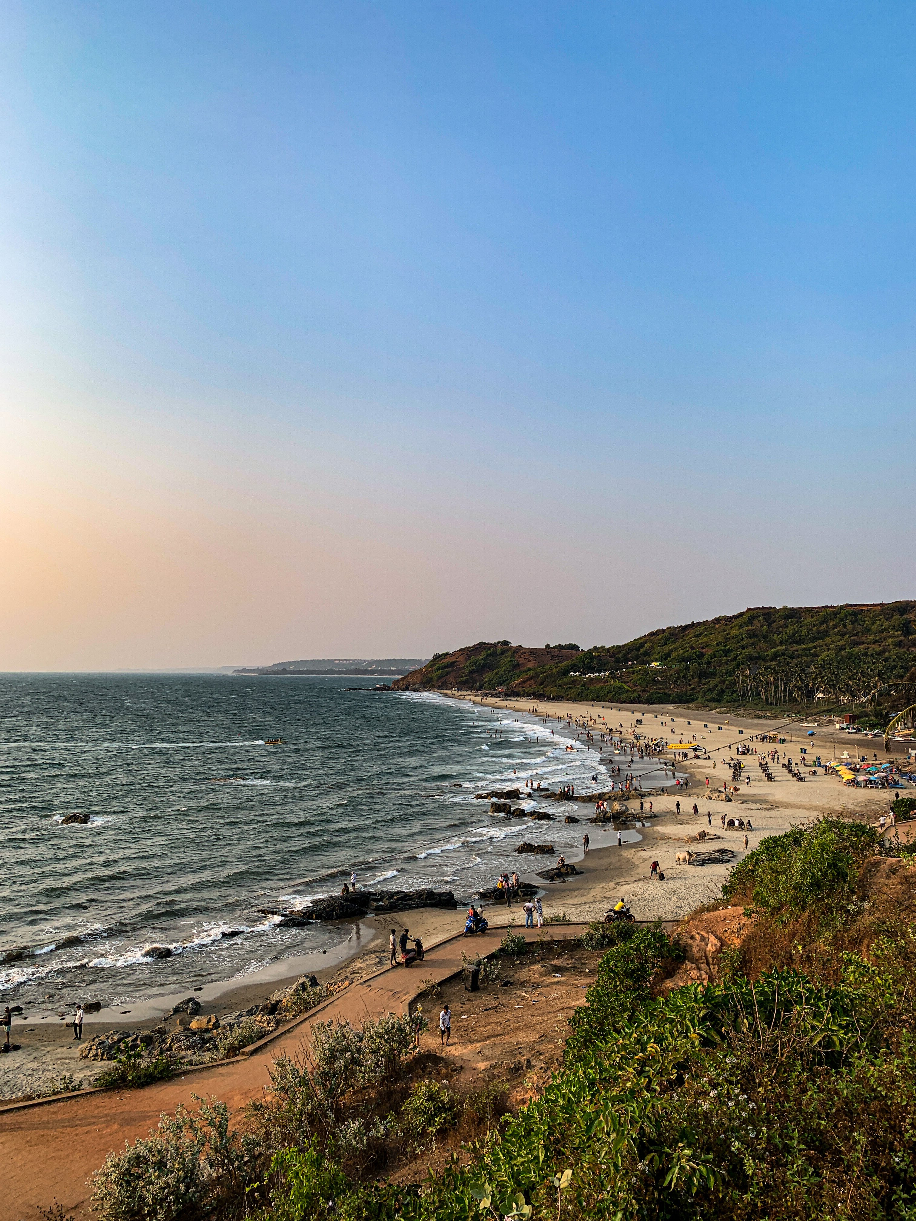 Para fechar o dia, fomos até o mirante de Vagator Beach, uma área mais alta de onde se tem uma vista incrível do Oceano Índico. O local é concorrido no fim da tarde, mas achamos um cantinho nosso e ficamos ali curtindo o momento, agradecidos por estar tendo essa oportunidade maravilhosa. 😊🌅