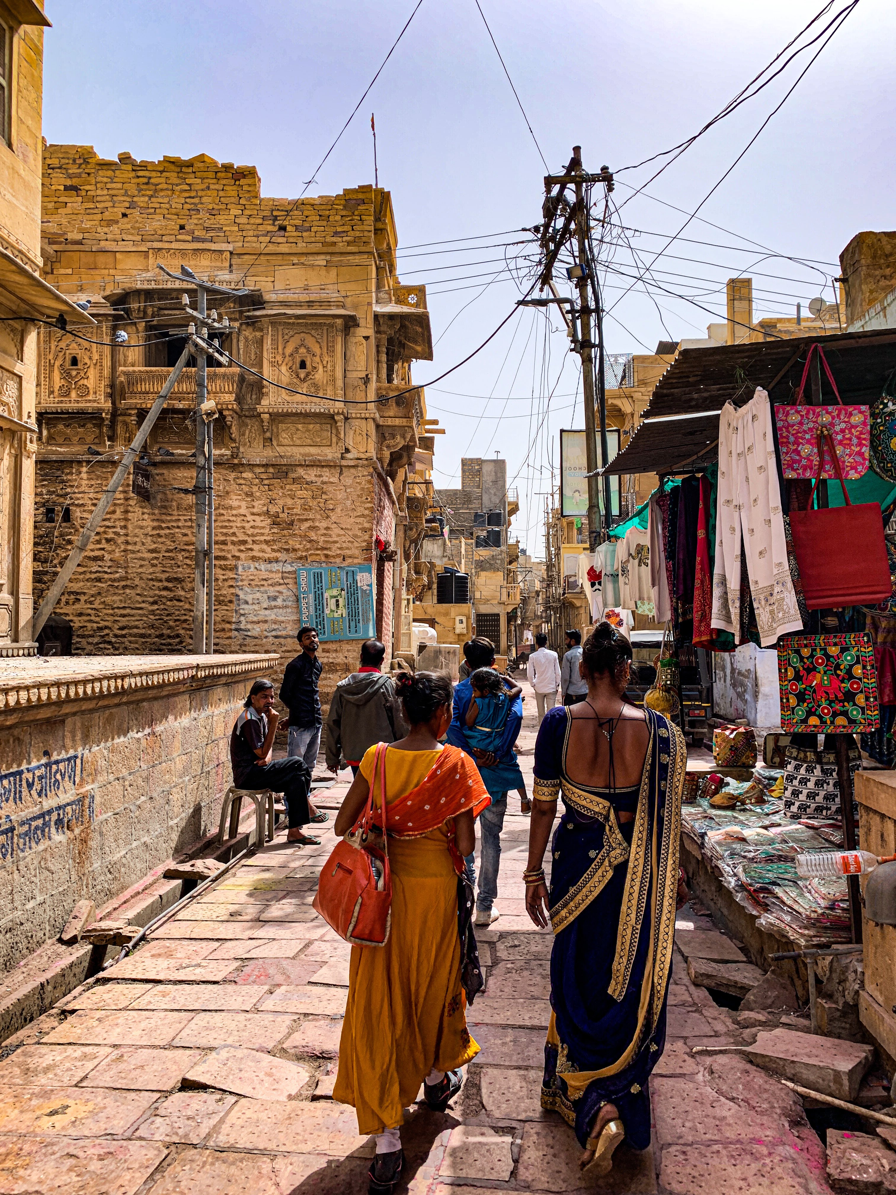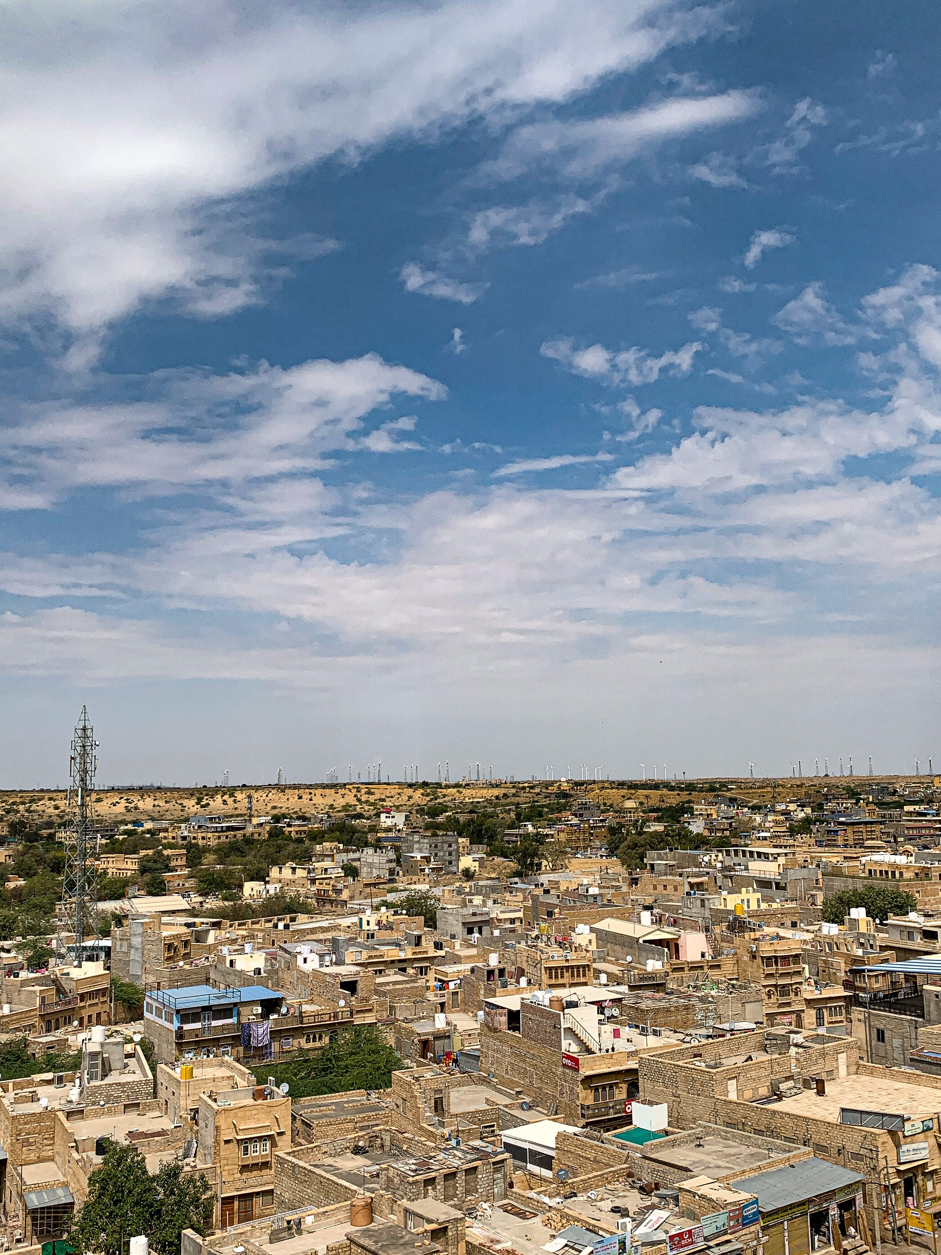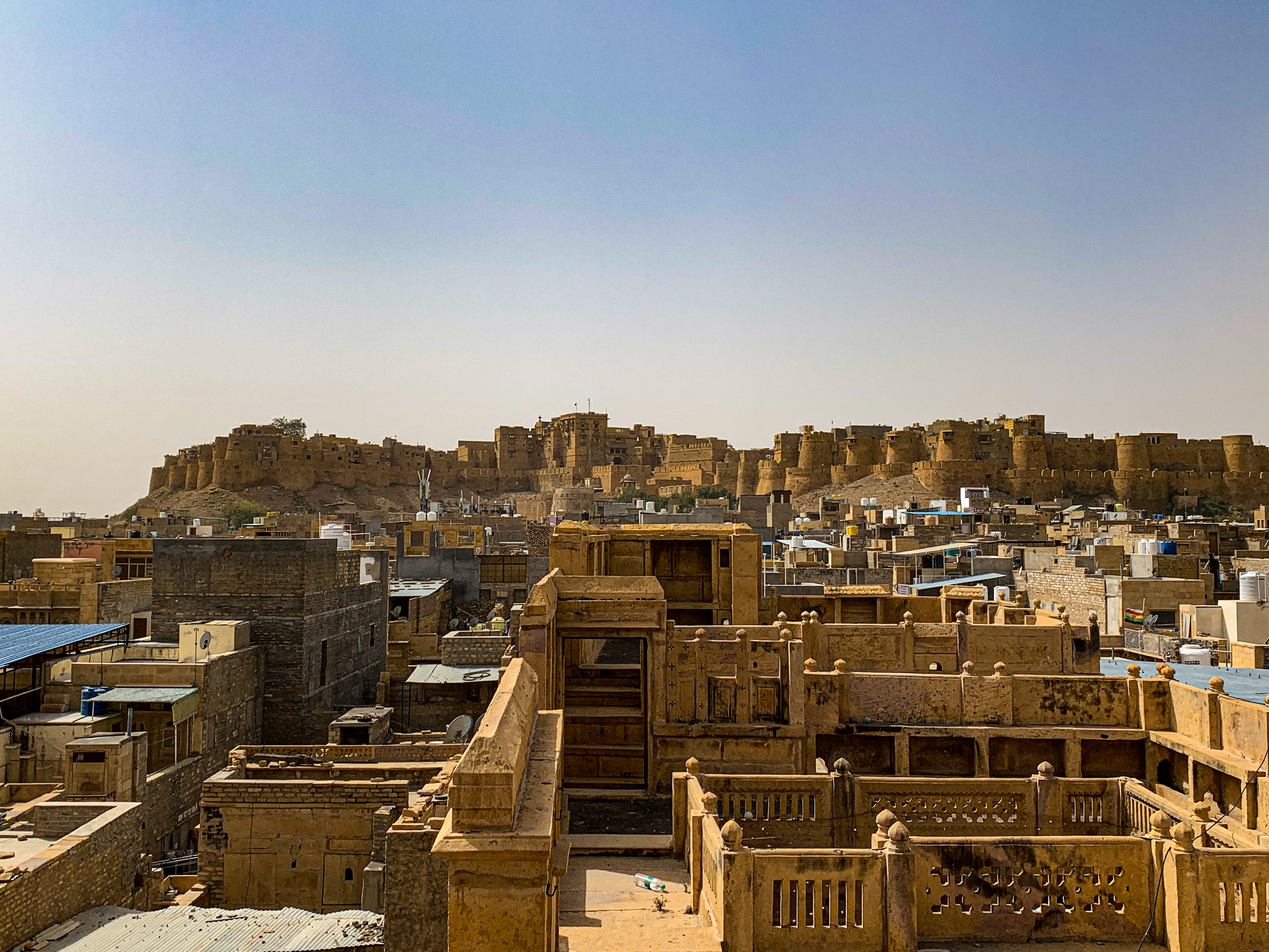 Jaisalmer é um antigo centro de comércio fundado no século 12 em torno de uma edificação conhecida como o Forte de Jaisalmer. Outra carcterística marcante daqui são as edificações, feitas substâncialmente de arenito. A rocha de tons amarelado / douradado predomina na paisagem da cidade e, junto com o deserto, fazem com que Jaisalmer seja conhecida como a cidade dourada. 🤩
