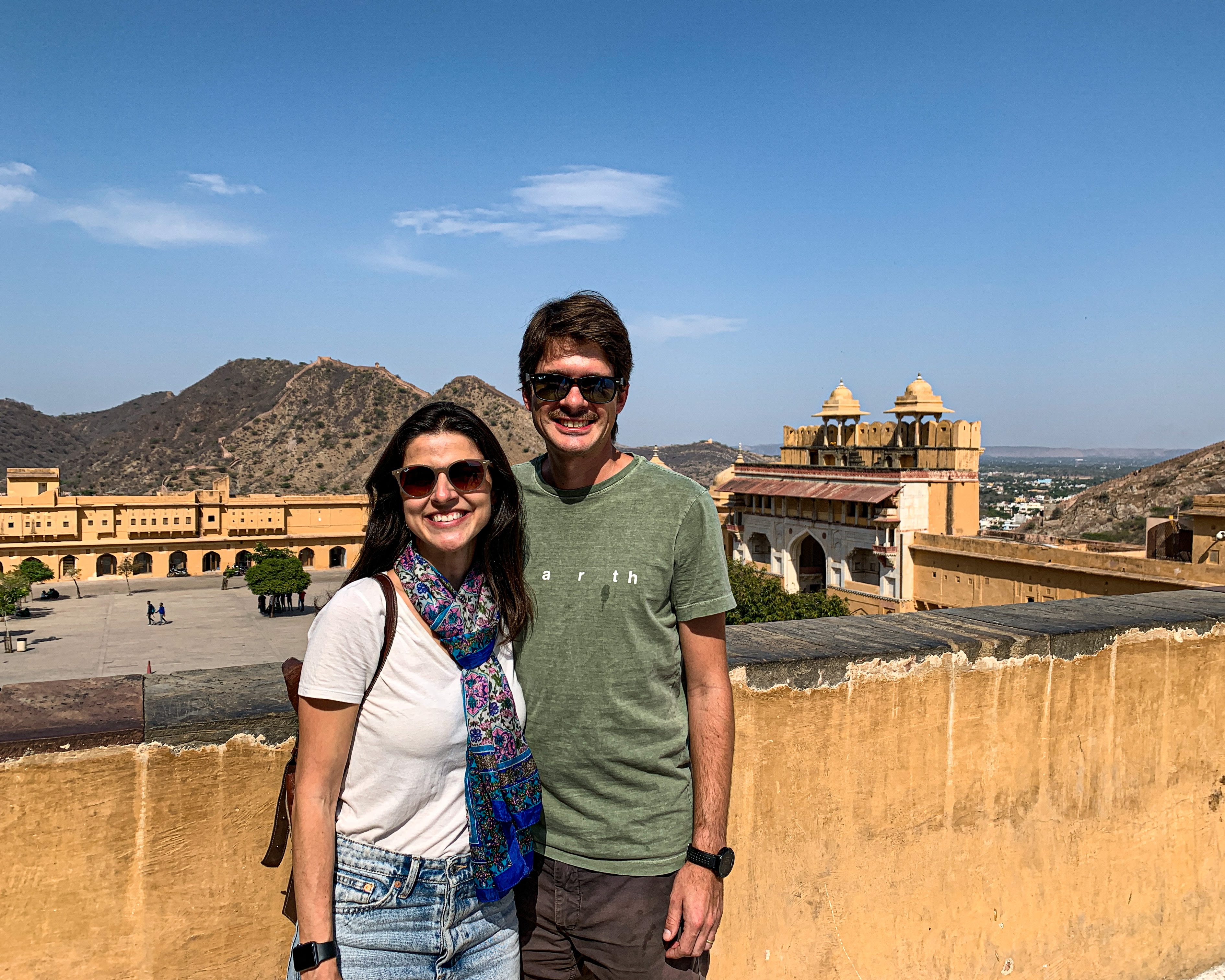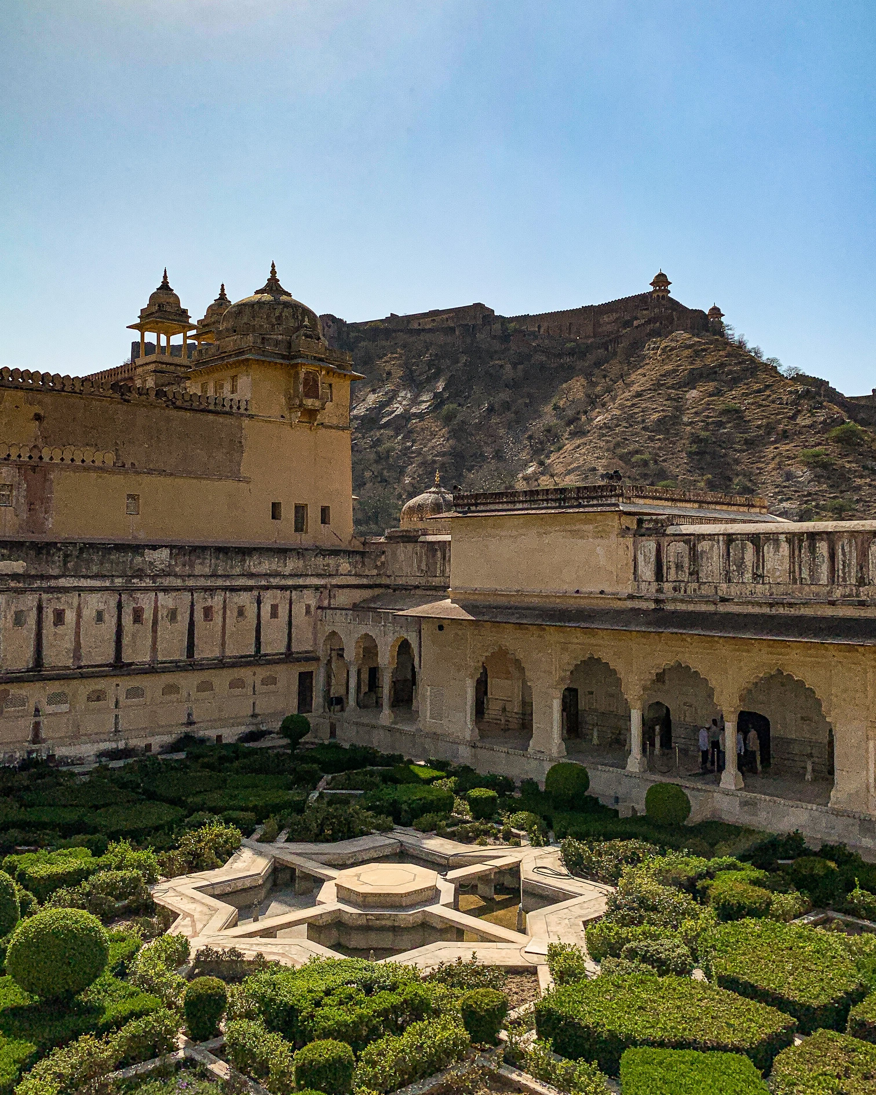 Nosso primeiro destino foi o Amber Fort. Patrimônio histórico da UNESCO e um dos mais visitados da Índia, esse forte foi construído em 1592 e fica no topo de um monte nos arredores de Jaipur. O Forte mistura influências hindus e islâmicas (império mogol) e é decorado com muito mármore.