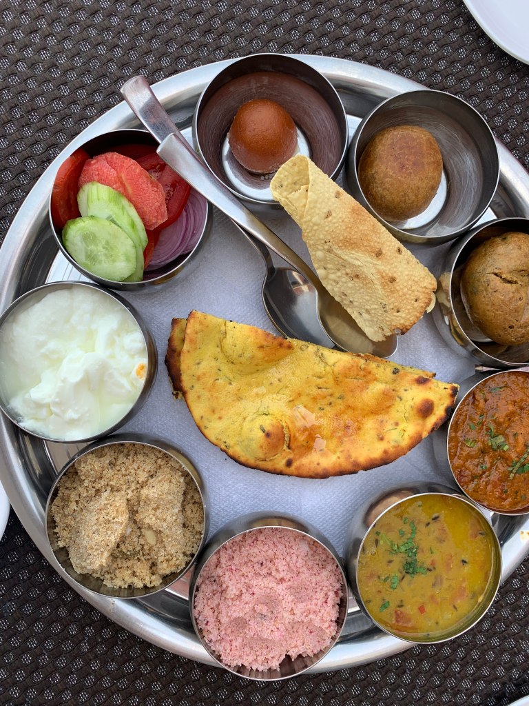 Perto do meio dia o calor já estava intenso e a fome começou a dar sinais. Fomos comer novamente no Hawk View e dessa vez pedimos um thali, prato típico indiano, para fechar nossa passagem pelo país. Voltamos para o hostel, fizemos as malas e no fim da tarde partimos para o aeroporto.