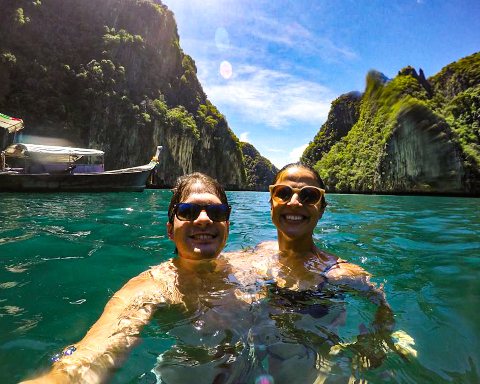 Em 2015, quando viemos em nossa lua de mel, o excesso de turistas tirou a graça do lugar. À época, era permitido atracar na praia e caminhar por ali, e a pequena baía chegava a receber em um único dia 200 barcos, que saíam de diversos lugares, principalmente Phuket e Krabi, e levavam cerca de 5 mil turistas para passear nessa pequena faixa de areia.