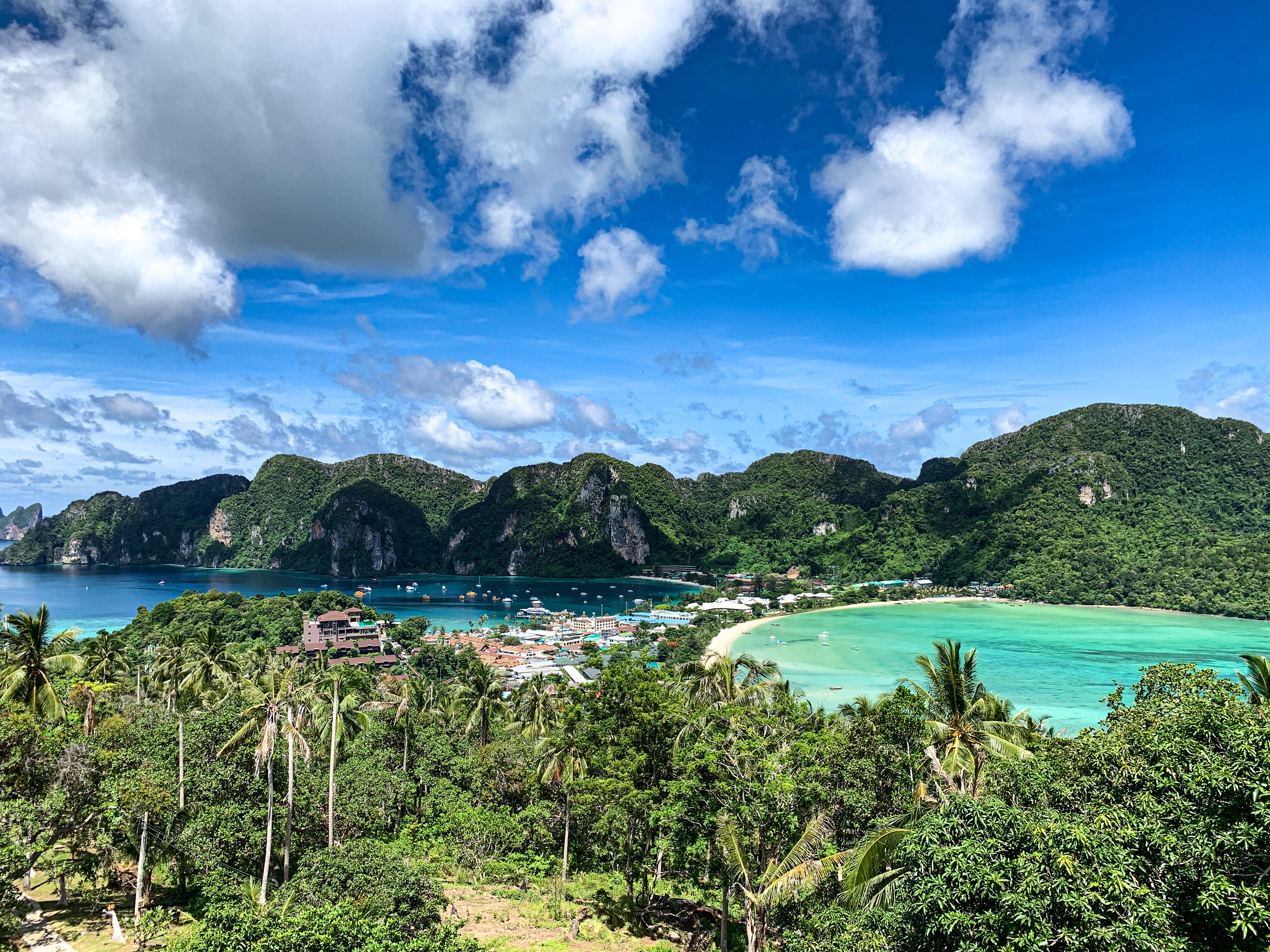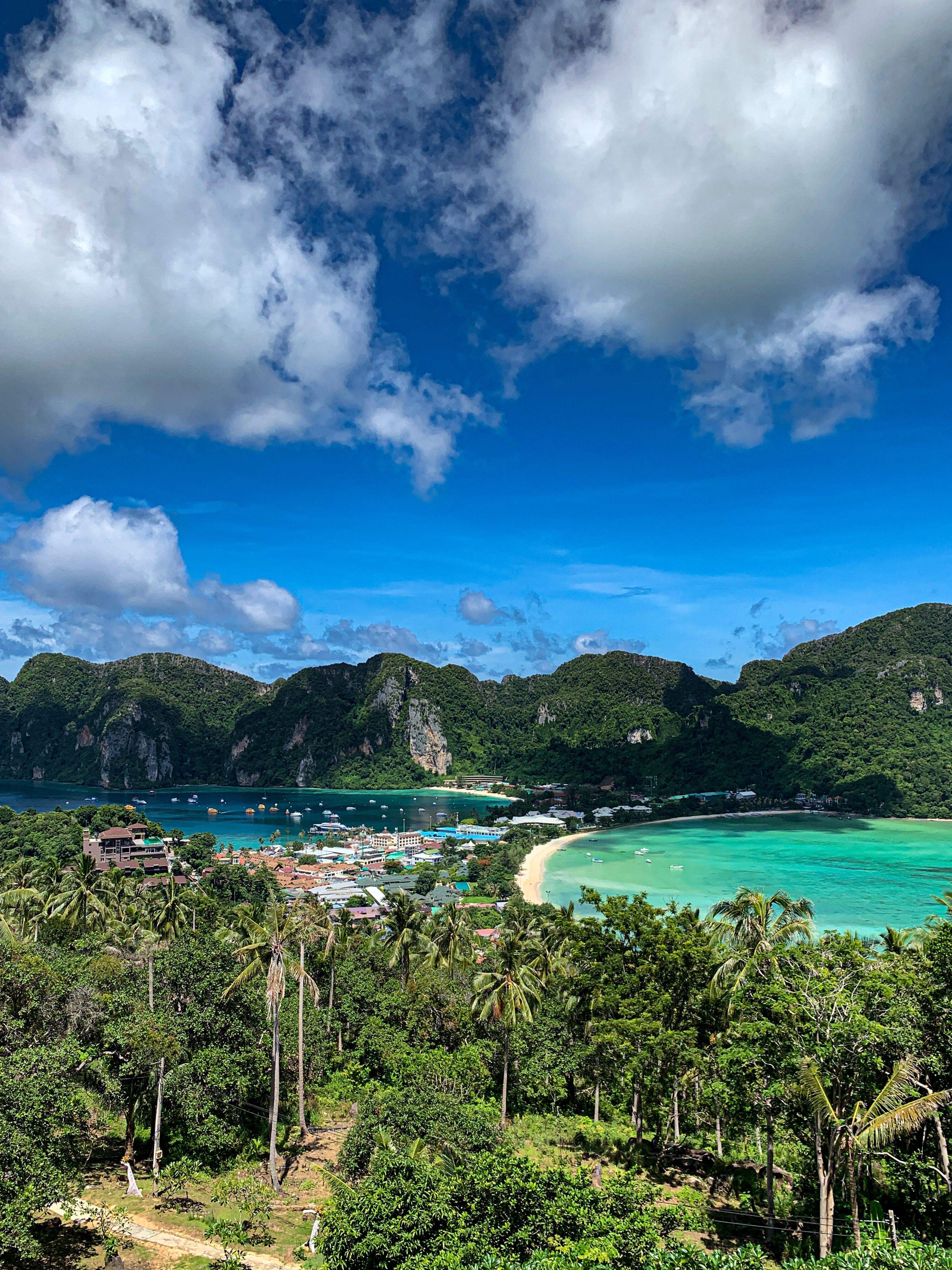 Depois do café, saímos em direção aos principais mirantes da ilha: Phi Phi Viewpoint 1 e Phi Phi Viewpoint 2. Da pousada até o mirante eram cerca de 3km de caminhada, mas o calor deixou a subida um pouco mais dura. Todo o esforço foi recompensado pela vista incrível dessa ilha que provou ser mesmo paradisíaca. A cor da água, como provam as fotos, é impressionante. 🤩