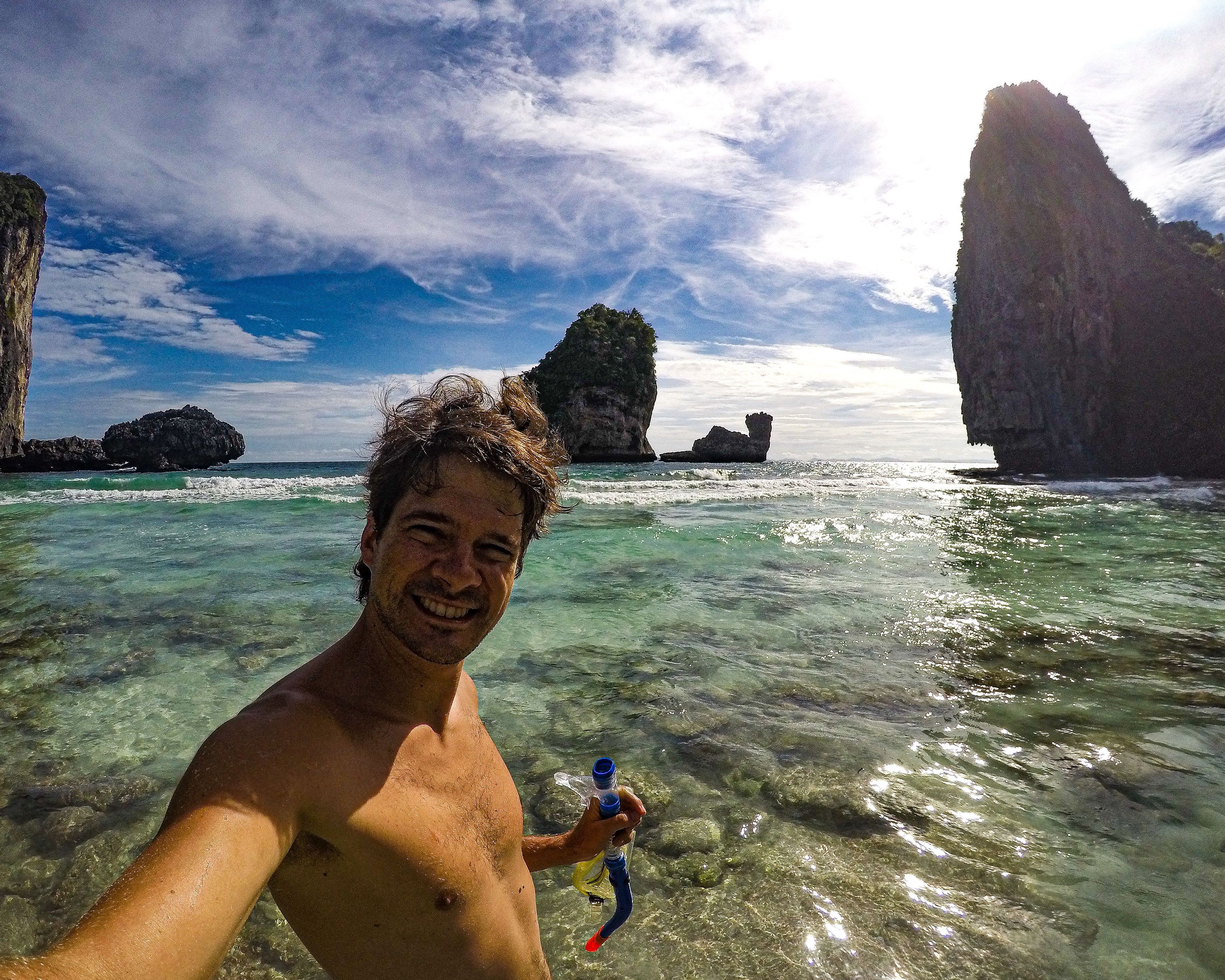 Na nossa primeira manhã em Phi Phi acordamos com um lindo dia de sol. Entre os meses de maio e novembro, a incidência de chuva é frequente na costa leste do país. Assim, apesar da vontade de passar o primeiro dia em Phi Phi relaxando, não pudemos perder a oportunidade de aproveitar o lindo dia.