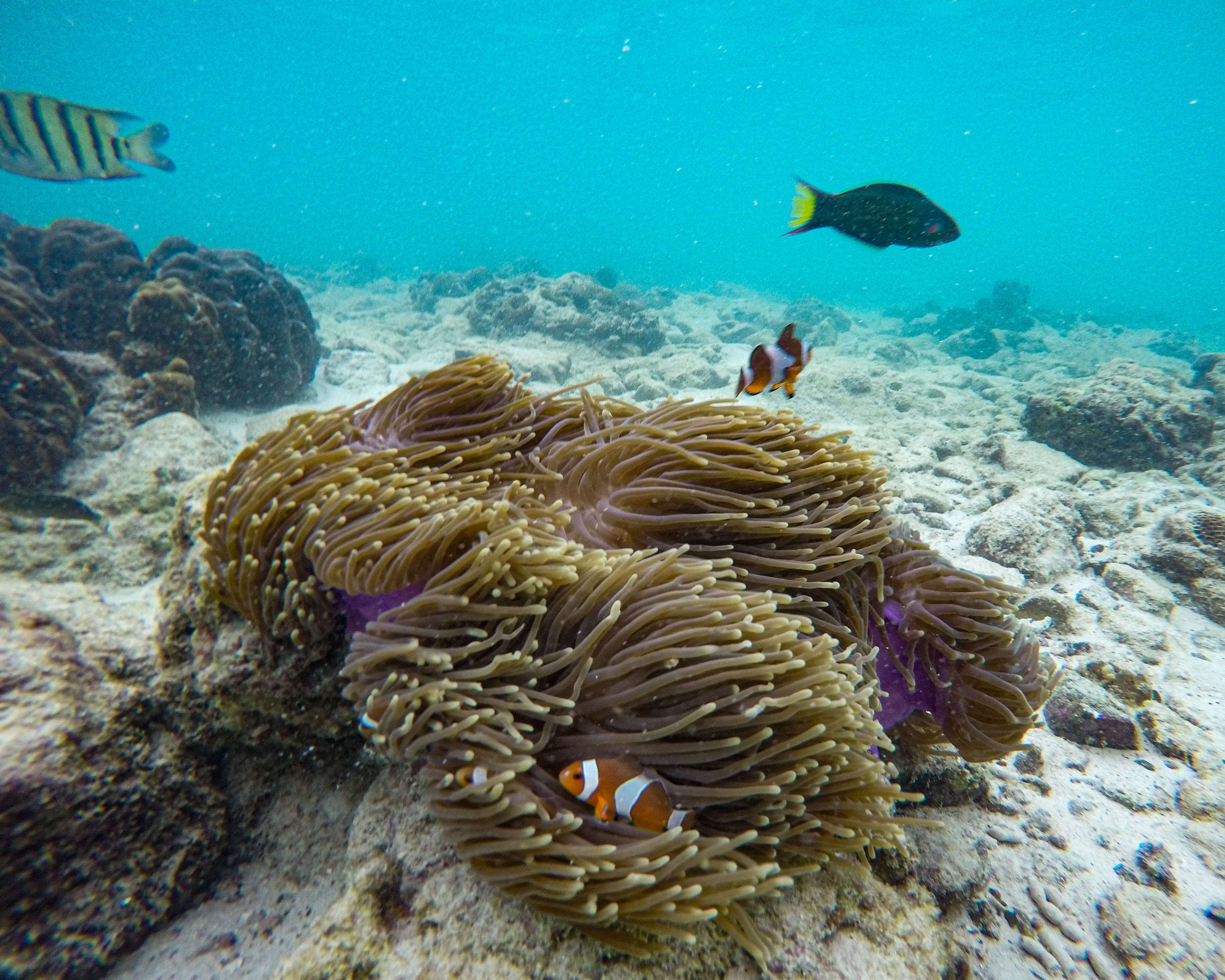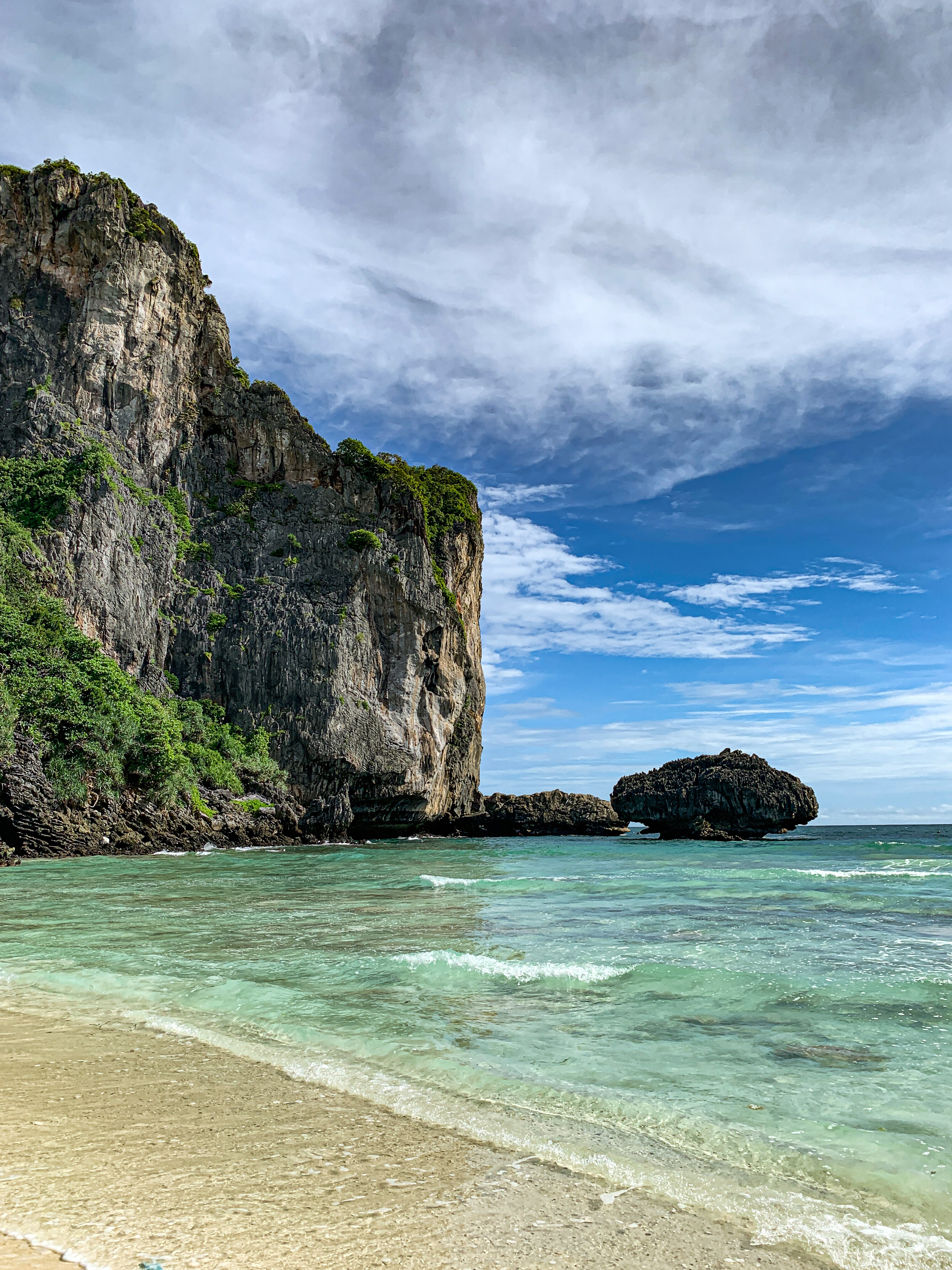 O segundo dia em Phi Phi amanheceu nublado – ainda bem que não perdemos a oportunidade de visitar as pricipais atrações no dia anterior. Sem pressa, tomamos mais um delicioso café (dessa vez com ovos ao invés de sopa de arroz 😅) e fizemos uma caminhada pela ilha com destino ao Shark Point. O lugar é um ótimo ponto para fazer snorkel e, como o próprio nome sugere, lá se tem muita chance de ver turbarões. Mas eles preferem aparecer de manhã cedinho e nós chegamos por lá já no início da tarde hehehe. Ainda assim, vimos fários cardumes, muitos corais e encontramos o Nemo. 😁