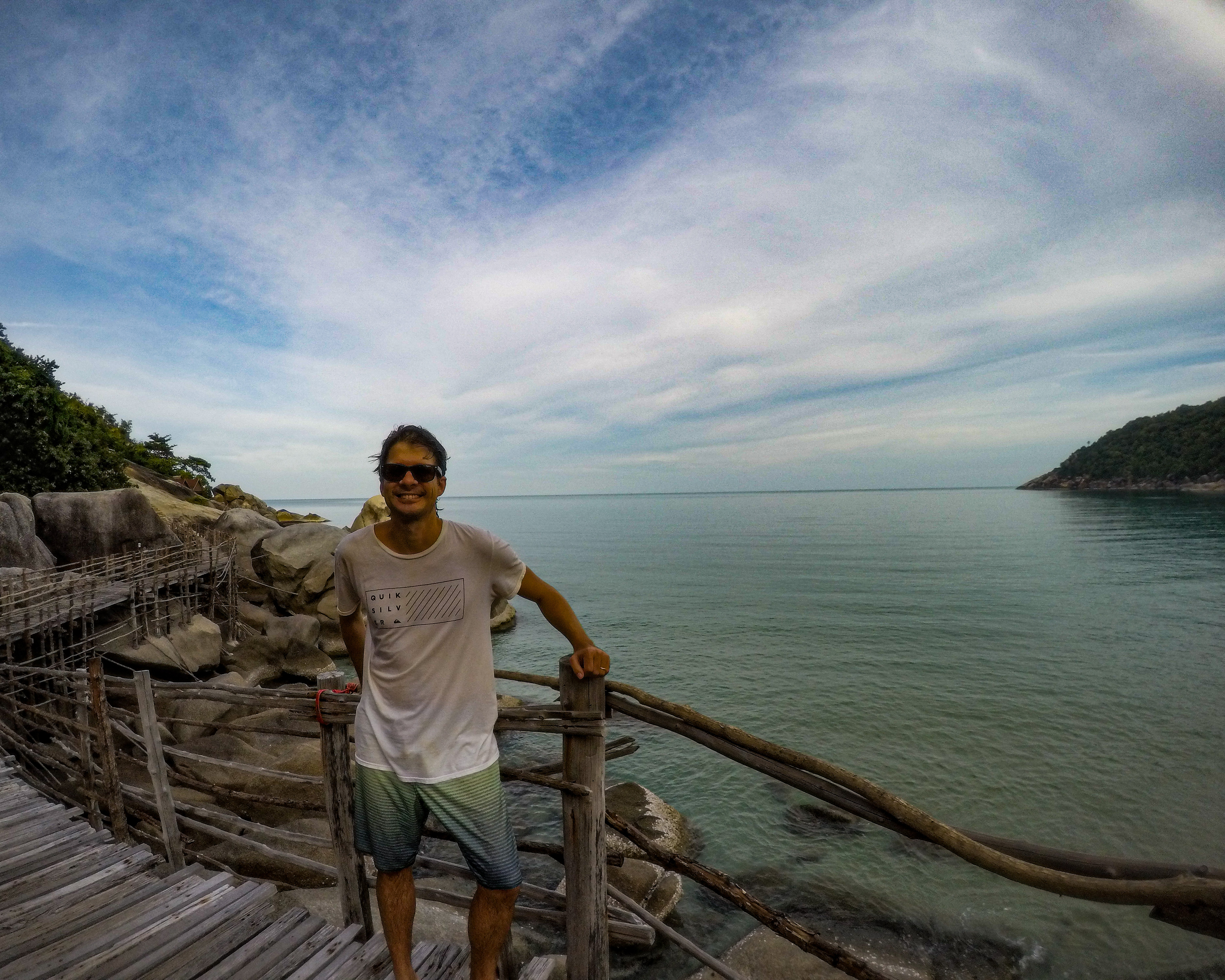 A quinta seria nosso último dia inteiro em Koh Phangan, então começamos com nosso programa favorito na ilha: curtir a manhã no café da pousada. Durante a tarde, fomos nos aventurar de moto pelas ladeiras do Parque Nacional, uma área bem verde com algumas praias bem tranquilas. Depois de pagar a entrada do parque seguimos em direção a Hat Sadet Beach, uma praia bem tranquila de água cristalina. Para o último jantar em Koh Phangan escolhemos um restaurante português, o Bite Delight, onde matamos o desejo da comida e de falar a nossa língua com desconhecidos, muito bom! 😊🍷