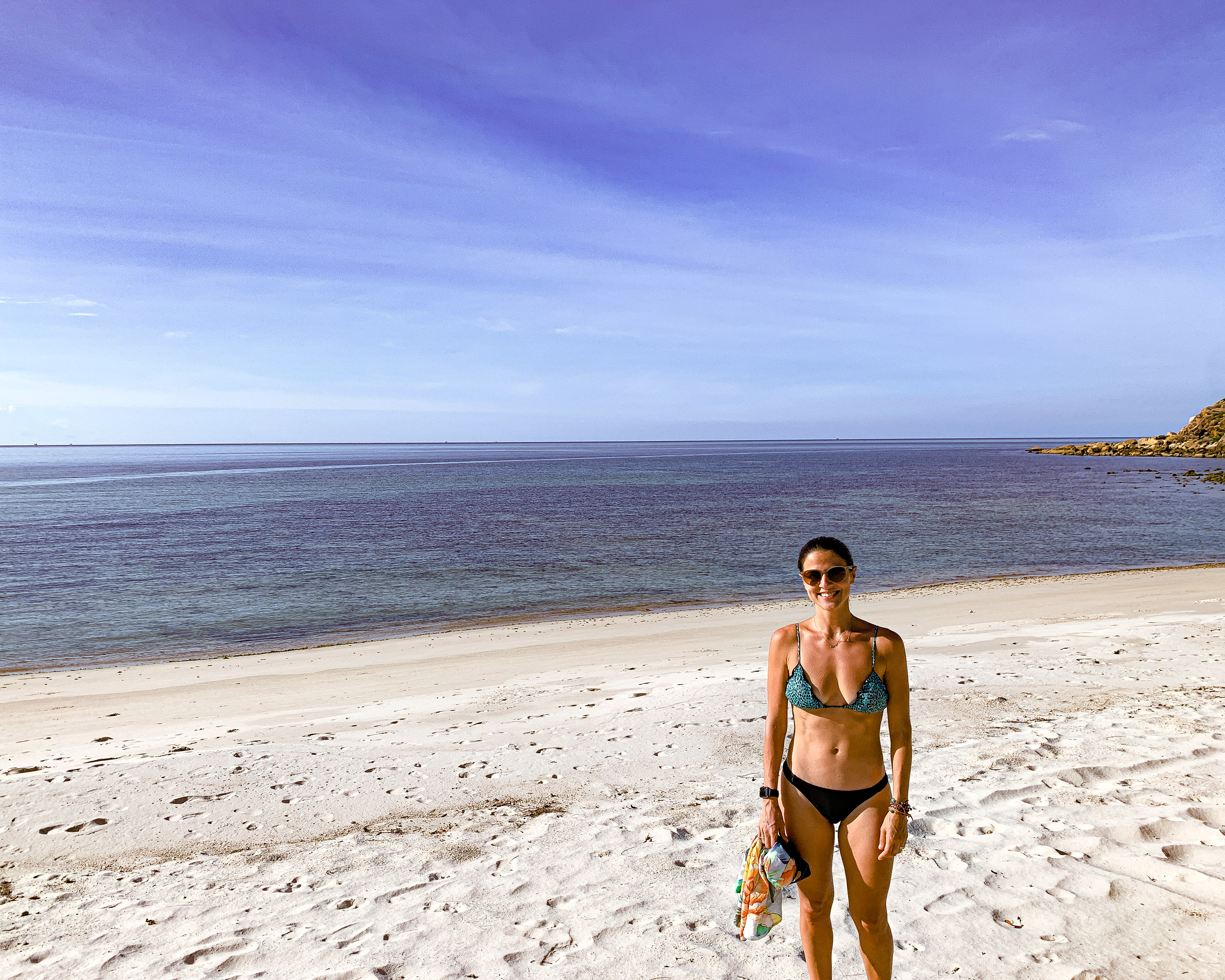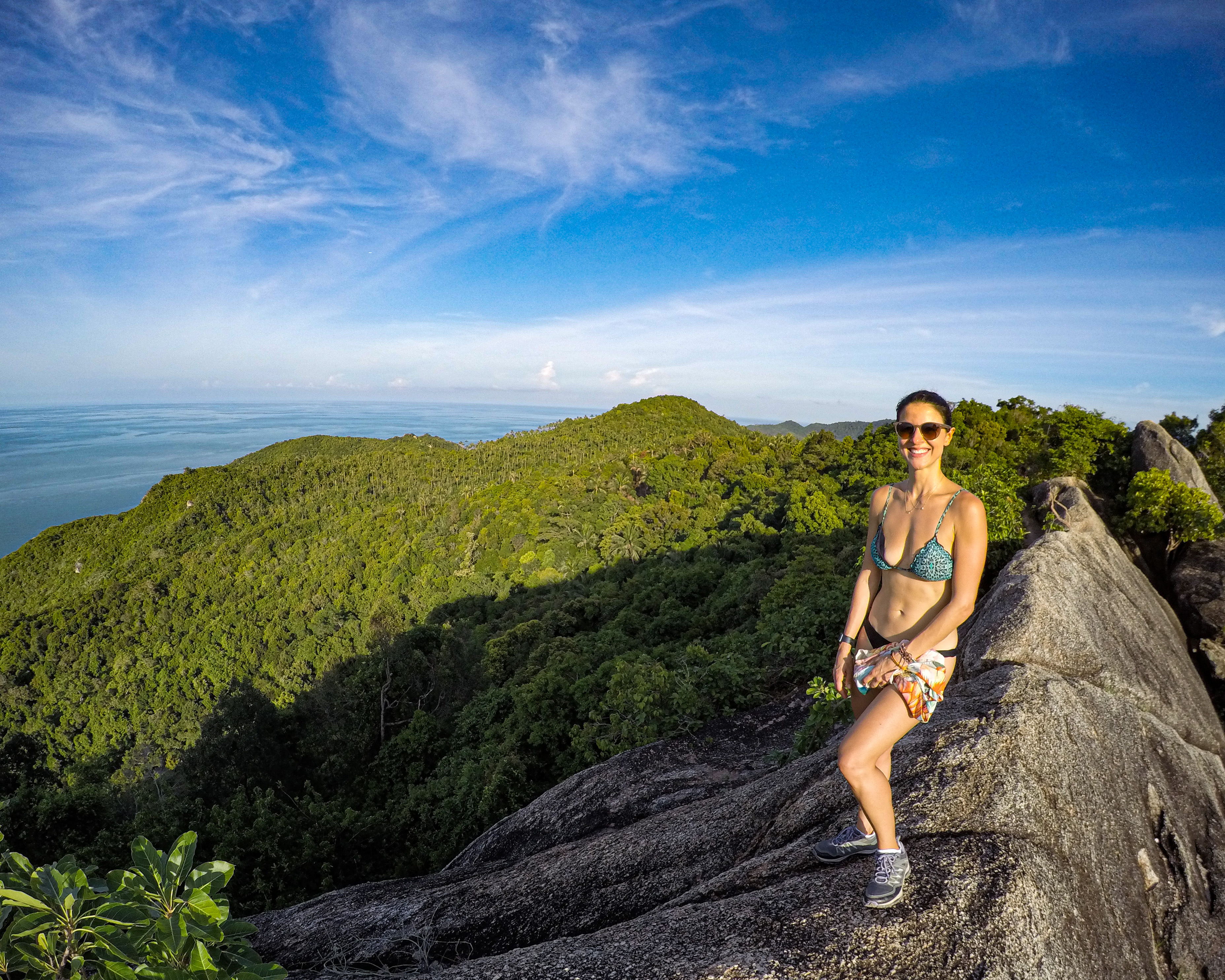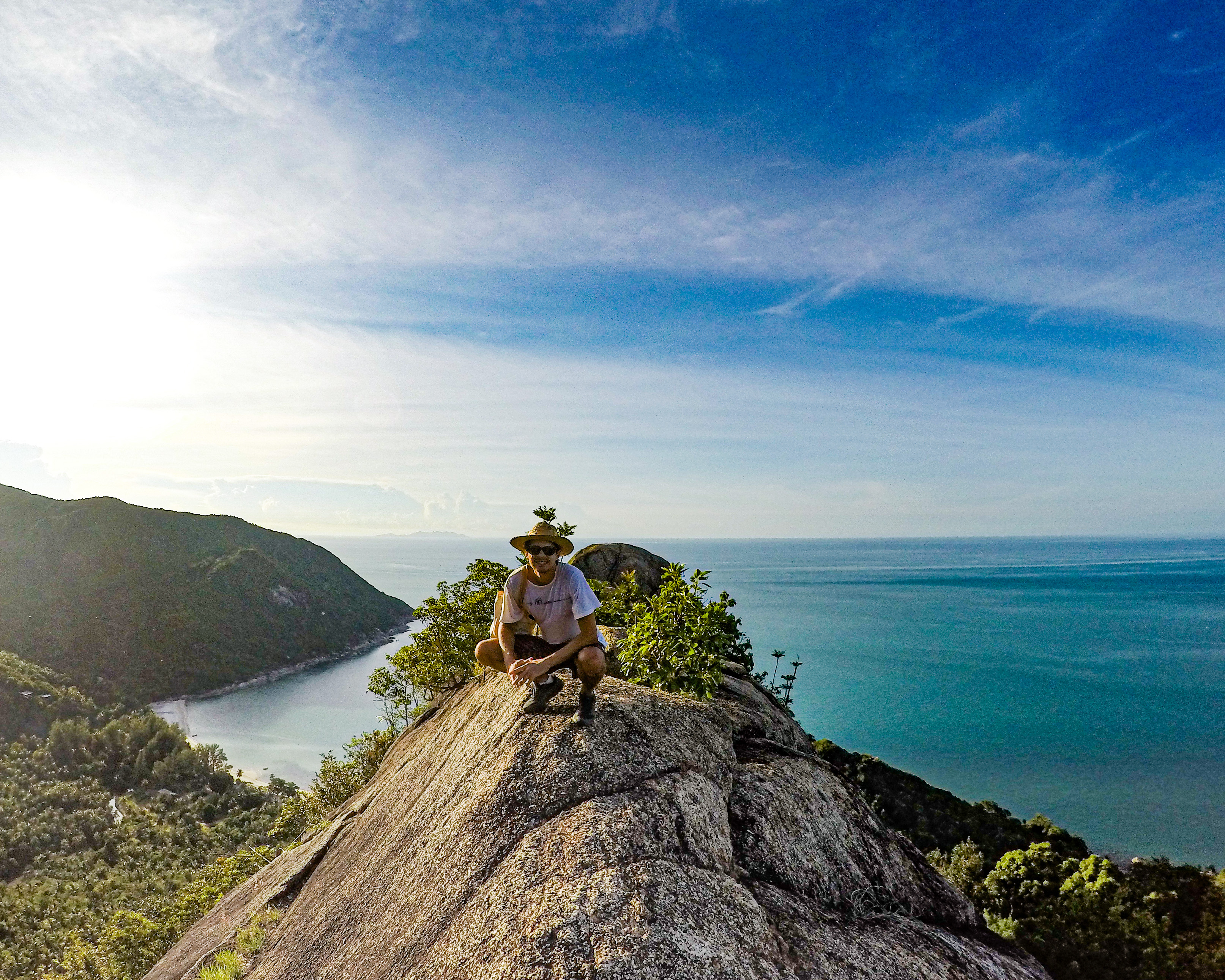 Ficamos curtindo a praia por um tempo, nos refrescamos no mar e também relaxando sob a sombra dos coqueiros. Com as energias recarregadas e o sol um pouco mais fraco, encaramos a trilha até o mirante da praia. A trilha até o Bottle Beach Viewpoint tem cerca de 2,3km (ida e volta) e a vista lá do alto é bem incrível! Caminhar pela pedra gigante no alto da montanha é uma aventura, deu um medinho, hehehe 😬😅