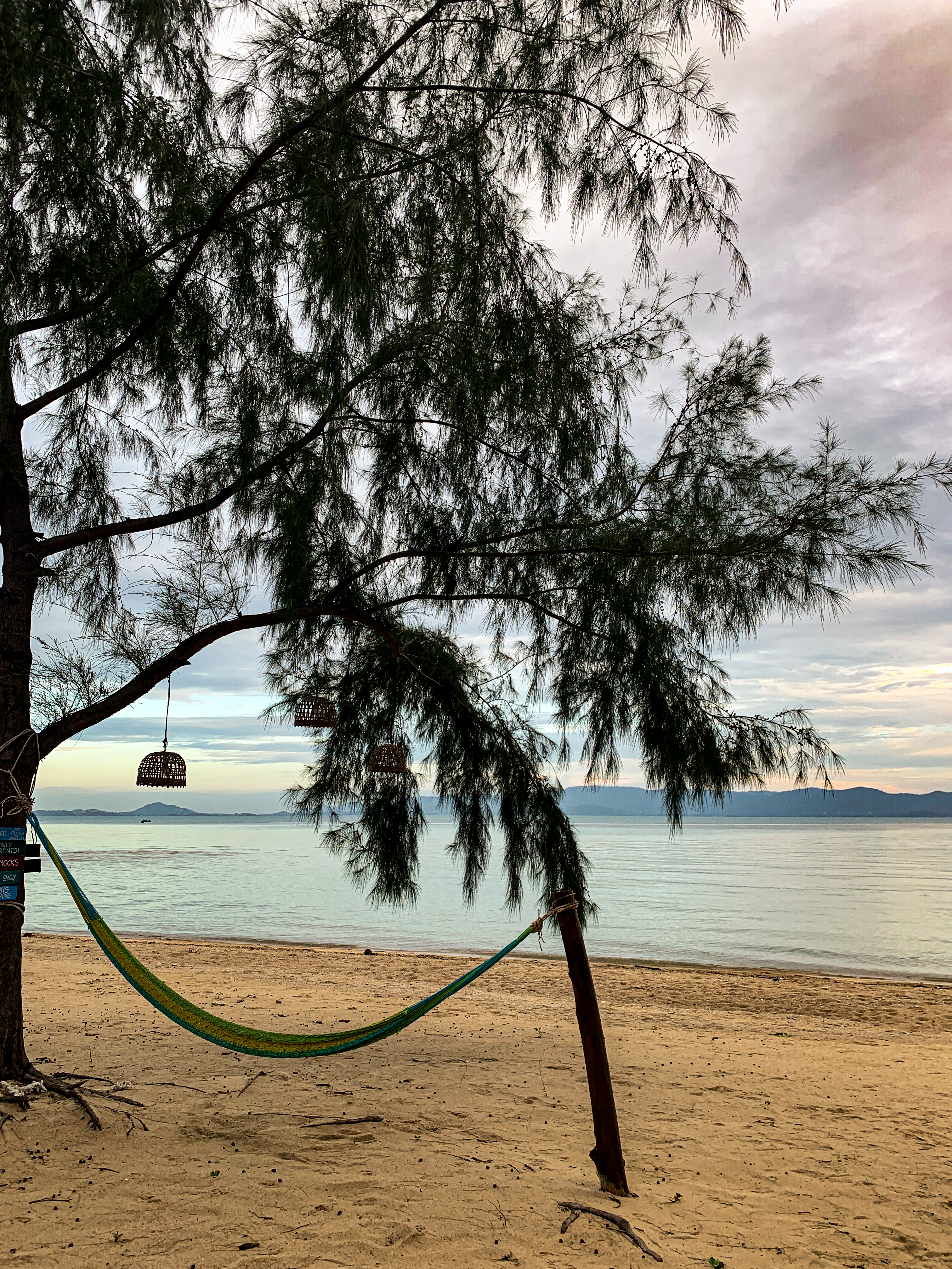 A viagem de lancha entre as ilhas é rápida e meia hora depois de sair de Koh Samui já estávamos desembarcando em um pequeno píer de madeira em Koh Phangan. Dali pegamos um taxi – daqueles bem tailandeses, com banquinhos na caçamba coberta de uma picape – e fomos direto para nossa pousada, a Seaesta. Localizada ao sul da ilha, na região de Baan Tai, a pousada foi recomendação da Marina, outra francesa que fez quarentena em Koh Lanta, e quando chegamos lá nem acreditamos que estávamos pagando cerca de 12 USD por noite pra ficar num lugar tão gostoso (além da pandemia, o preço estava ainda melhor pelo fato de eles estarem reformando uma área da pousada na época). 😎