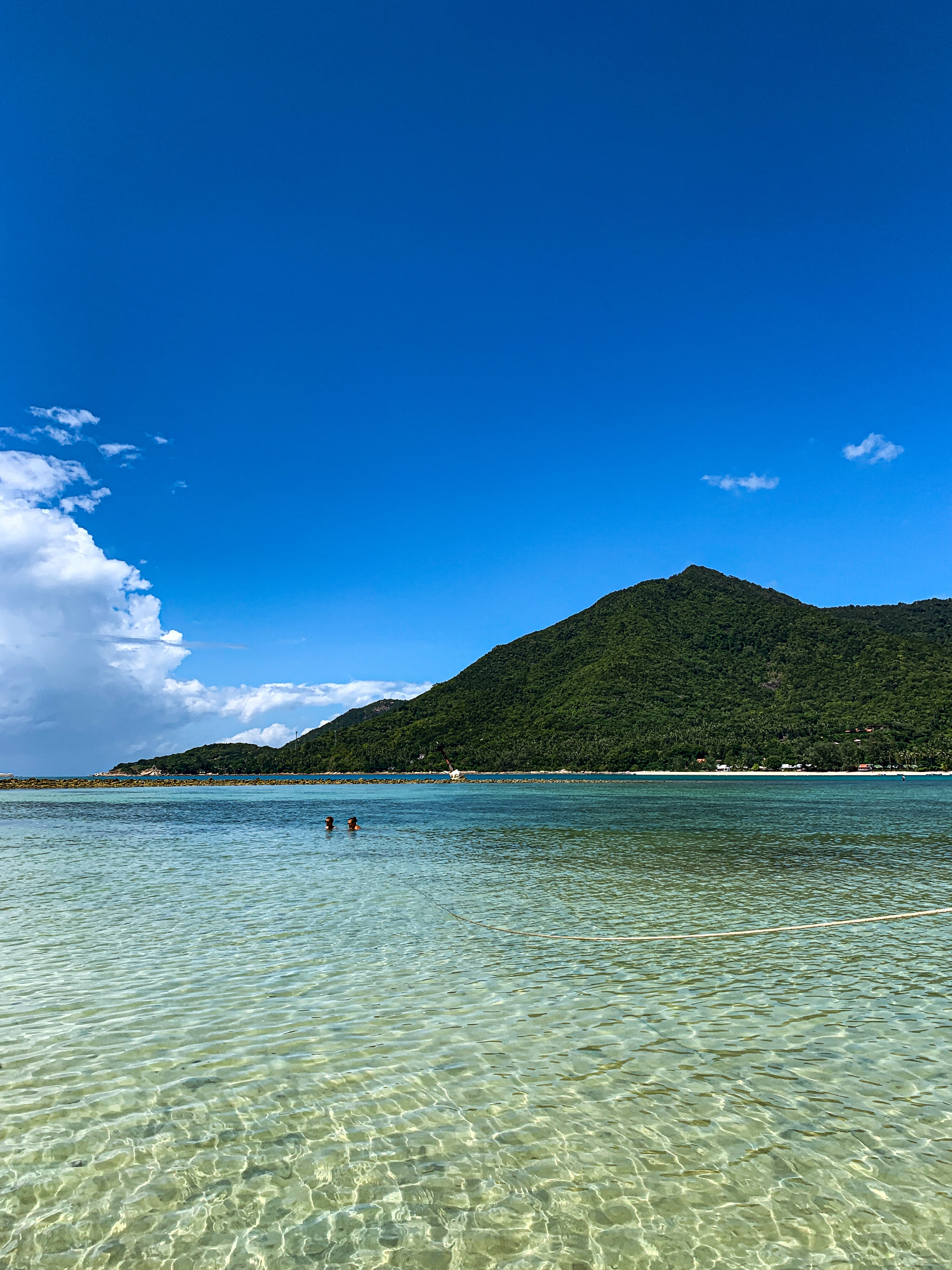 Também no norte da ilha está a praia de Mae Haad, conhecida por ser um bom ponto de snorkel e também por sua pequena faixa de areia que liga a praia a pequena ilha de Koh Ma nos períodos de maré baixa. Infelizmente estávamos sem máscara, então não podemos afirmar se o ponto de snorkel é bom mesmo. Mas aproveitamos para caminhar até Koh Ma e na volta fizemos um lanche e tomamos uma água de coco no bar de um pequeno hotel dali. De volta à pousada, ainda teve corridinha e SUP pra curtir o fim do dia. 😎