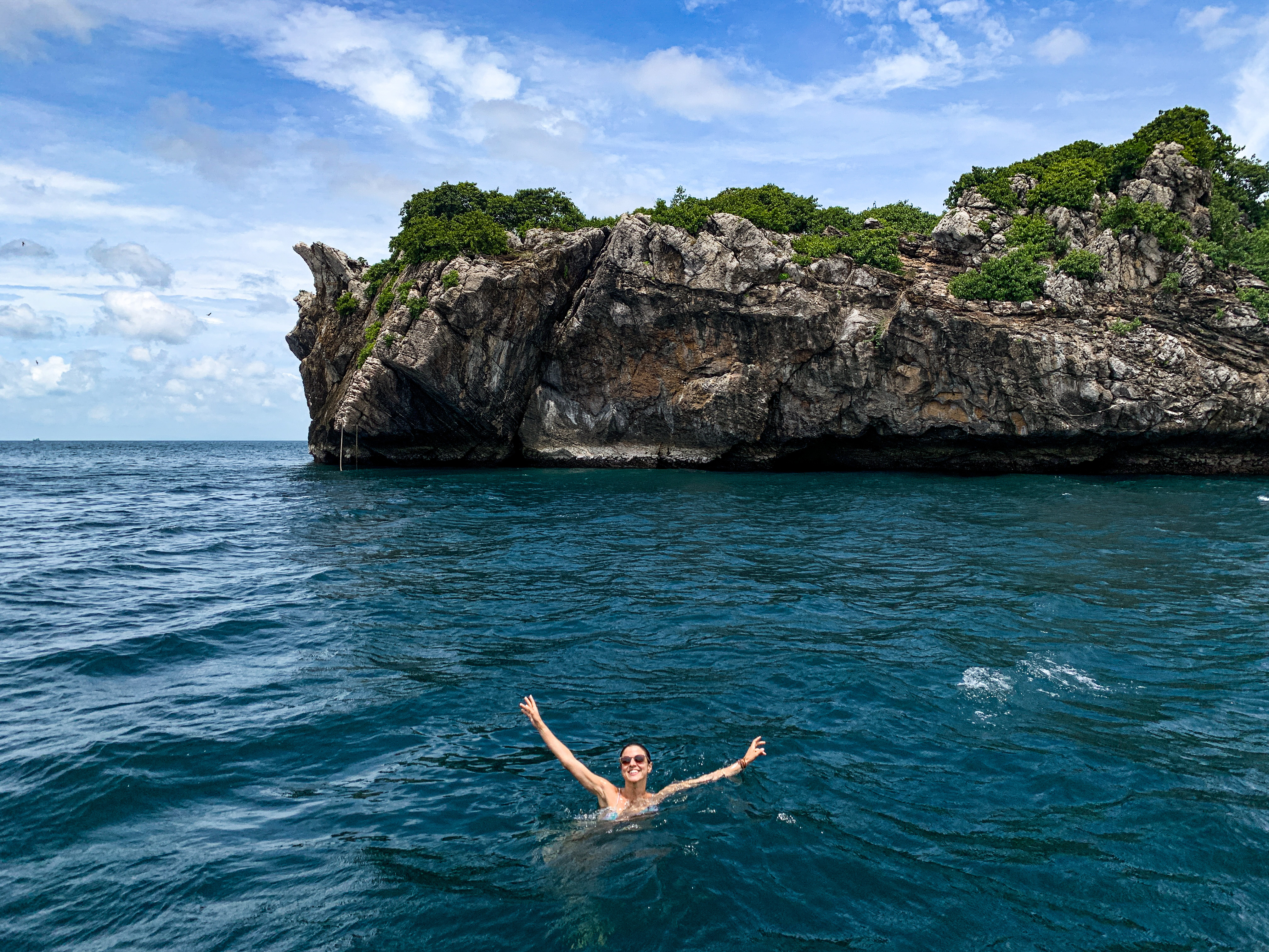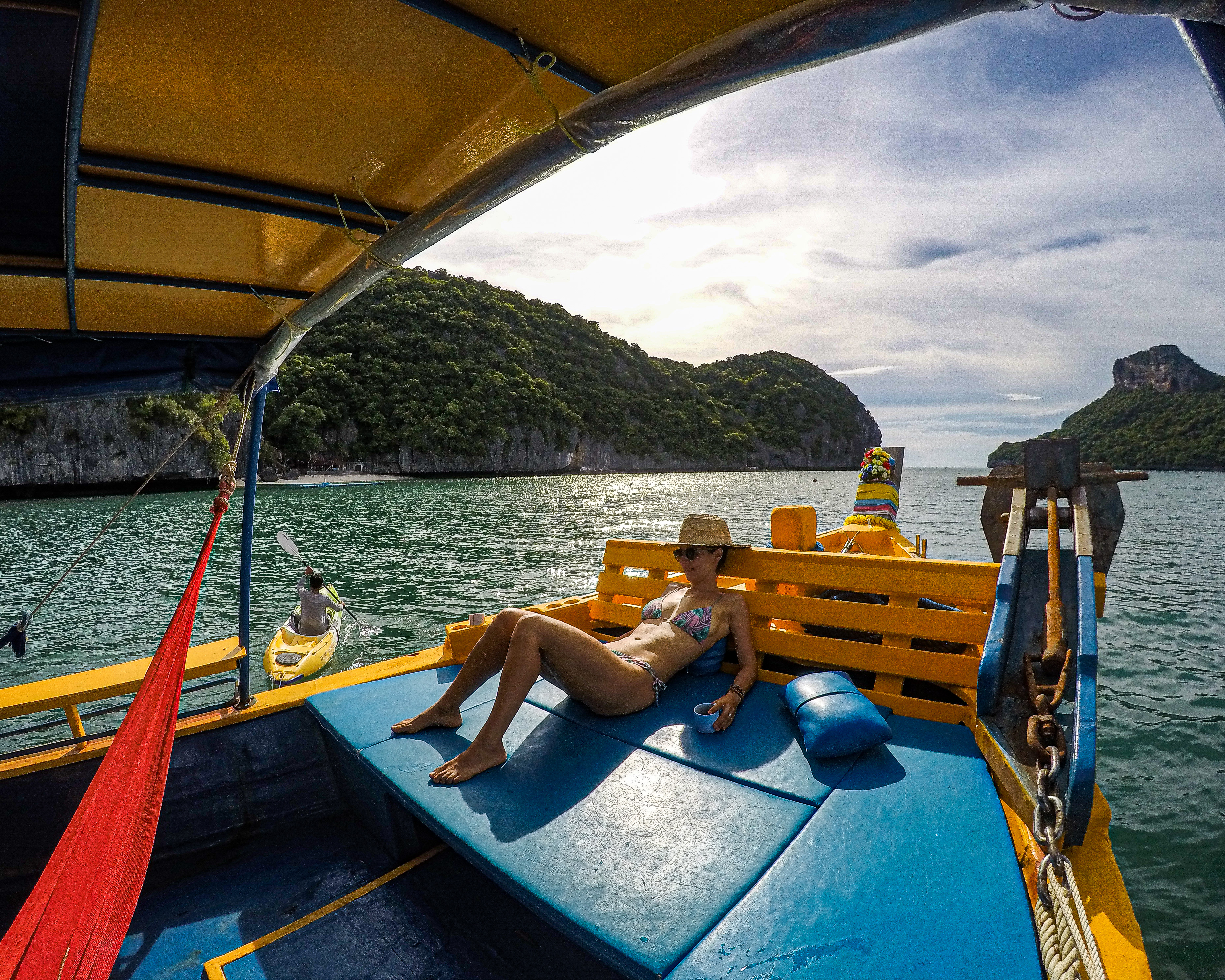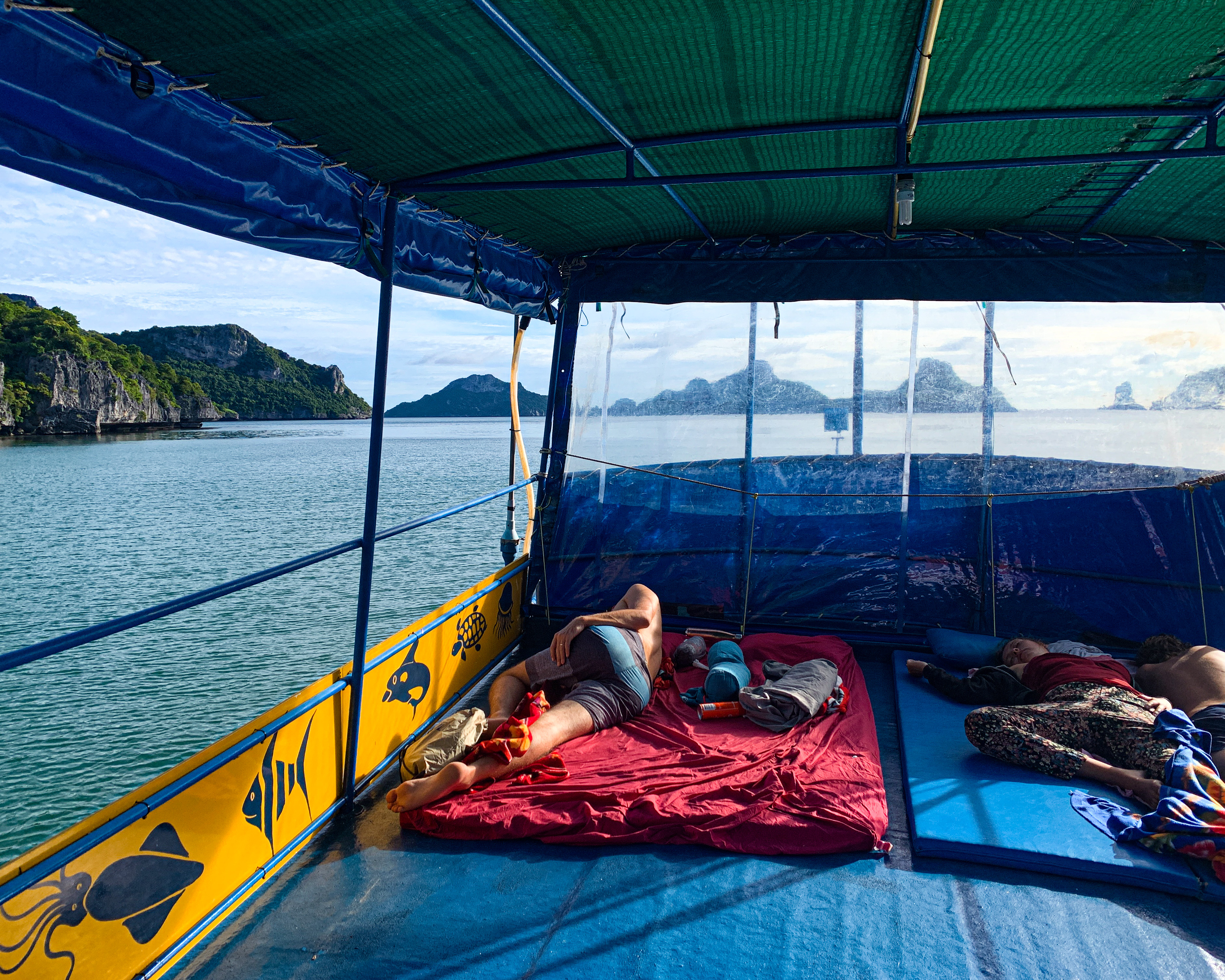 15.07.2020 | Ao pesquisar sobre os principais passeios do Golfo da Tailândia, o Ang Thong National Marine Park logo entrou para a lista de desejos. É possível fazer o passeio de um dia a partir de Koh Samui, Koh Phangan e Koh Tao, mas por conta da pandemia as saídas estavam escassas. Até que a Manon e o Louis (nossos amigos franceses) entraram em contato com um francês que mora há anos na Tailândia e faz o passeio pelo Ang Thong de uma forma diferente. Ao invés do tradicional bate e volta de barco, ele oferece um pacote com duas noites à bordo, para conhecer com bastante calma mais esse paraíso tailandês. 😄