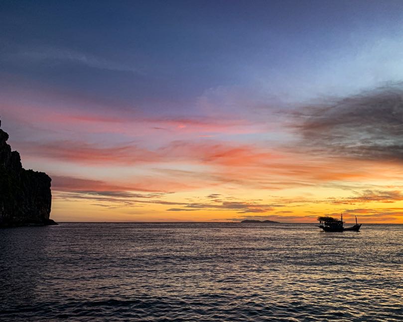 Depois da remada, atracamos em uma pequena praia e descansamos um pouco antes de retornar ao barco. Já à bordo, curtimos o fim de tarde, tomamos banho, jantamos e nos preparamos pra dormir. O despertar em alto mar é cedo, afinal com a claridade e o calor fica difícil dormir depois que o sol nasce, algo que eu adoro na verdade. 😁 James, Manoon e Louis é que não gostaram muito 😅 (foto abaixo). Mas abrir os olhos ao acordar e dar de cara com essa paisagem é uma ótima forma de acabar com qualquer mau humor matinal. 😍